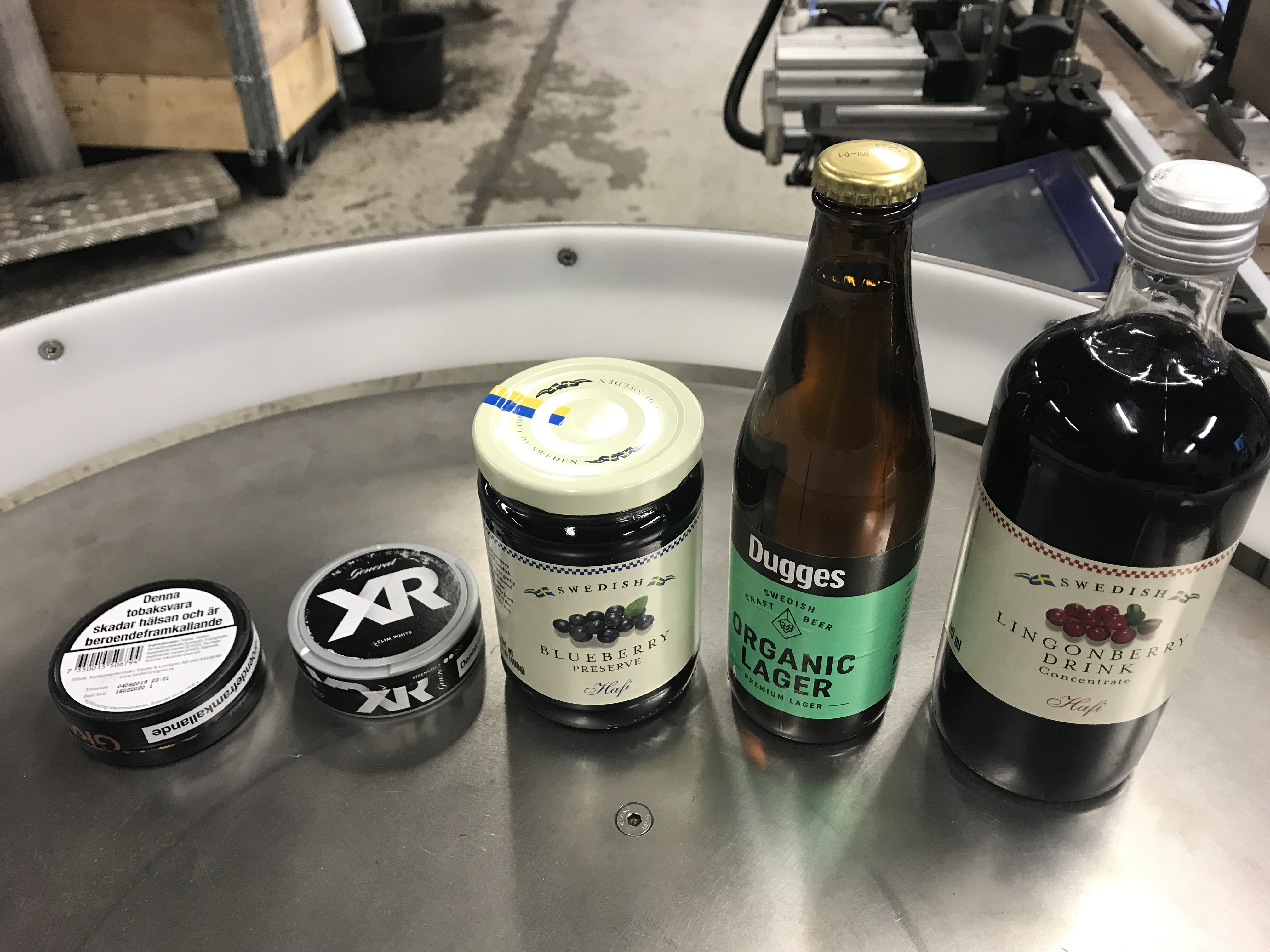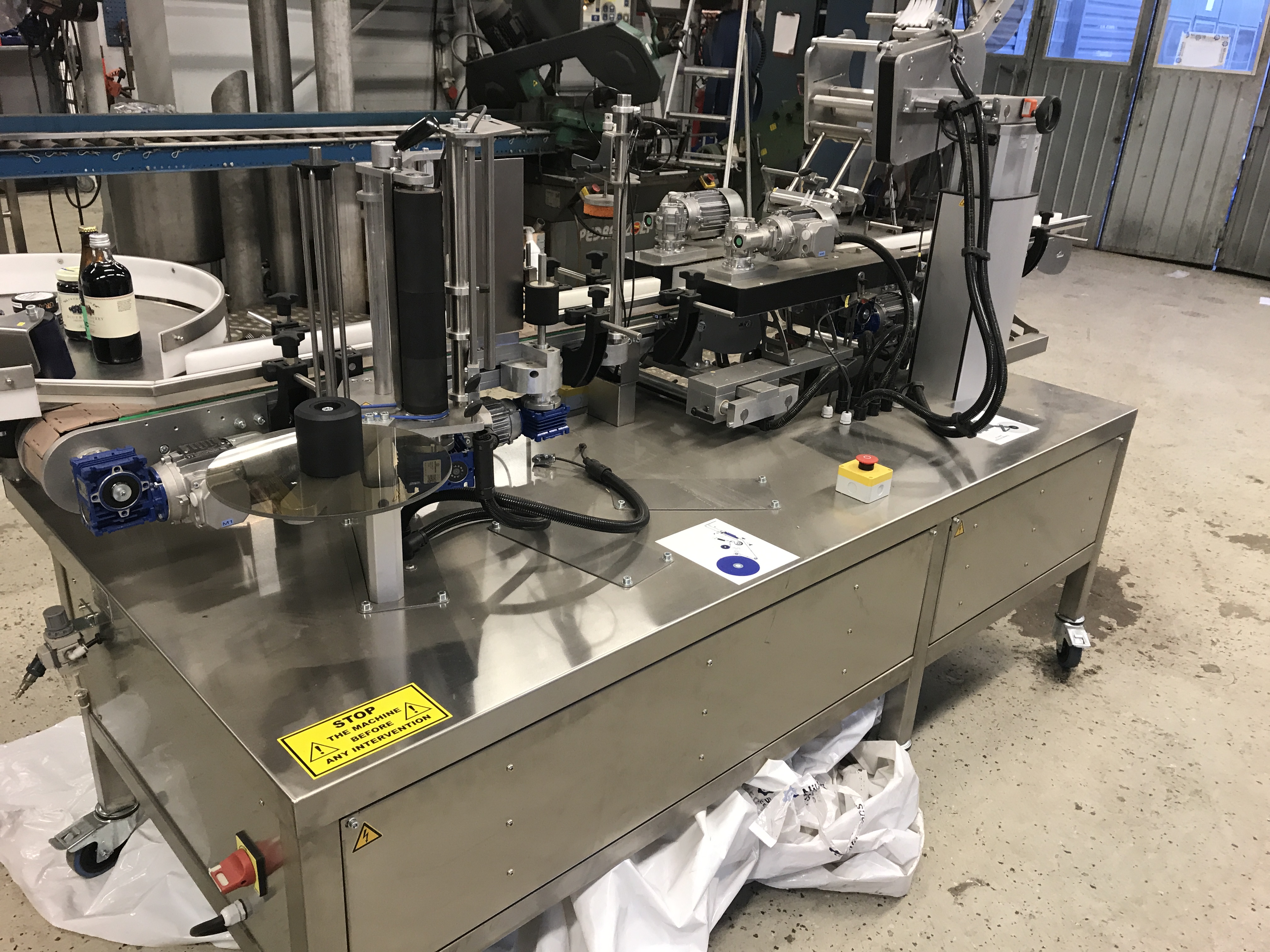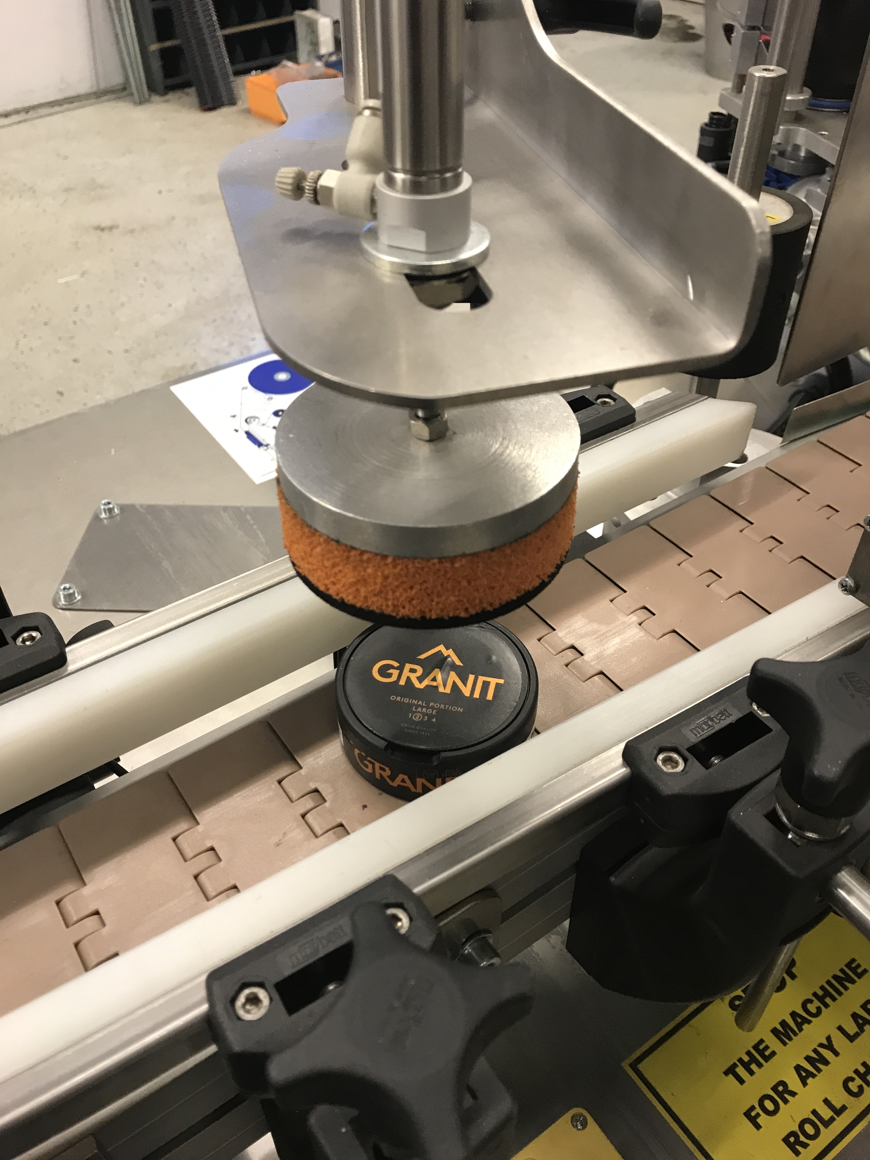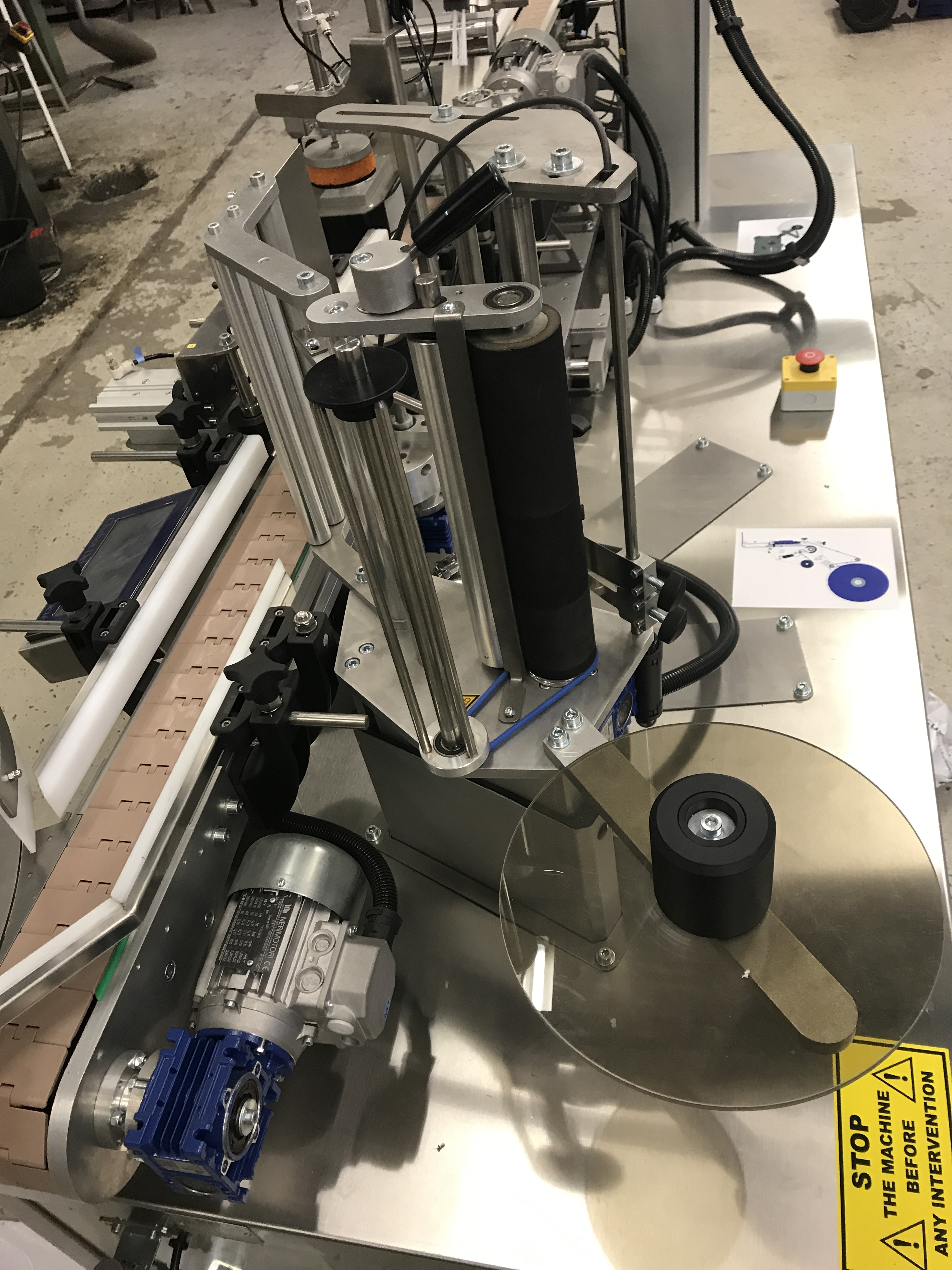 Label machine for round packaging.