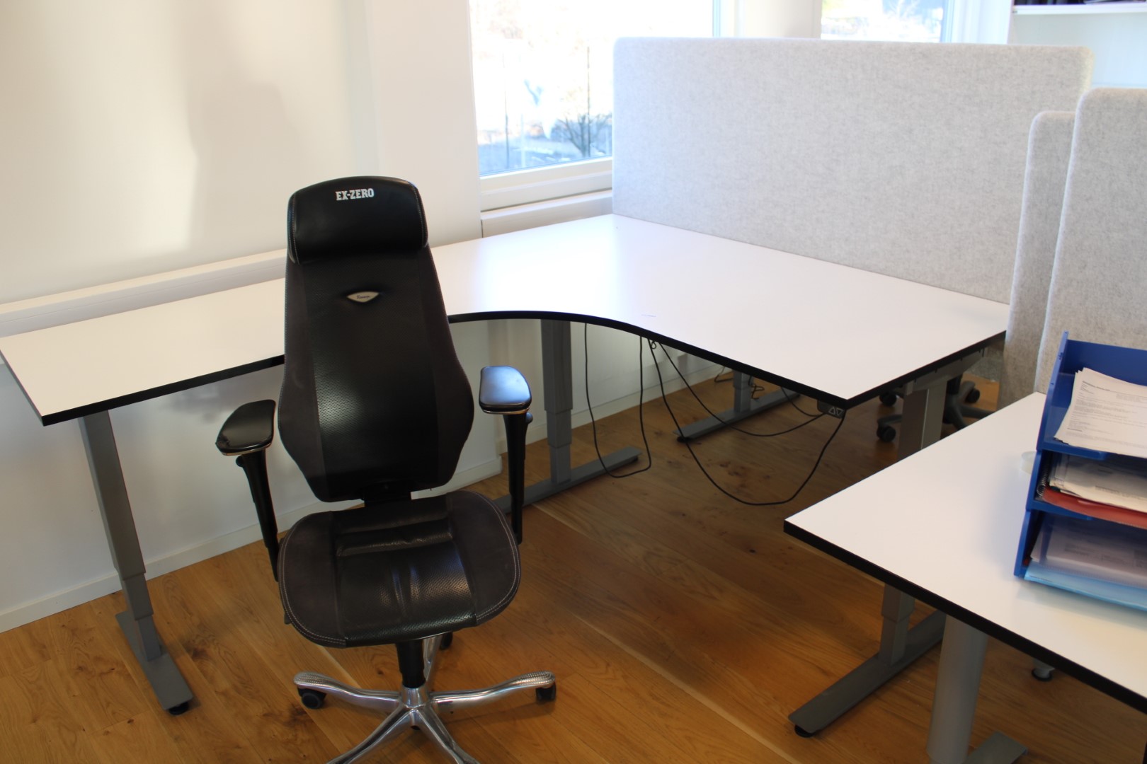 Elektriskt höj/sänkbart skrivbord i vinkel EFG, 200x160cm.