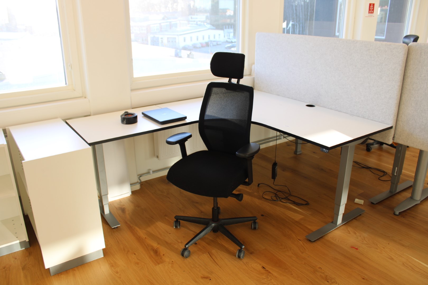 Elektriskt höj/sänkbart skrivbord i vinkel EFG, 200x160cm.