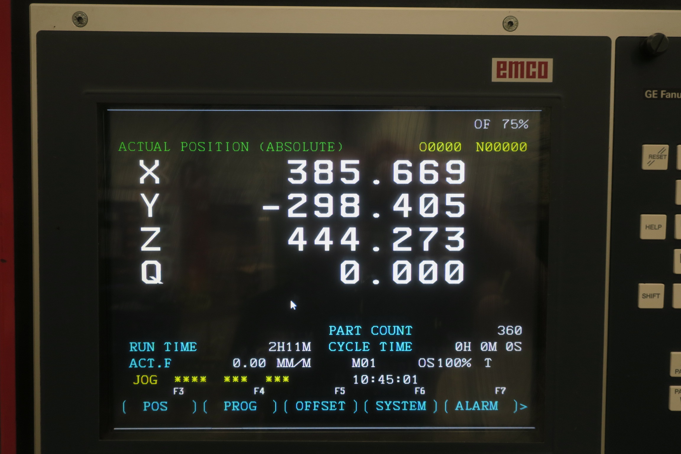 Referenskört axlar, spindelstart, växlat verktyg - ok