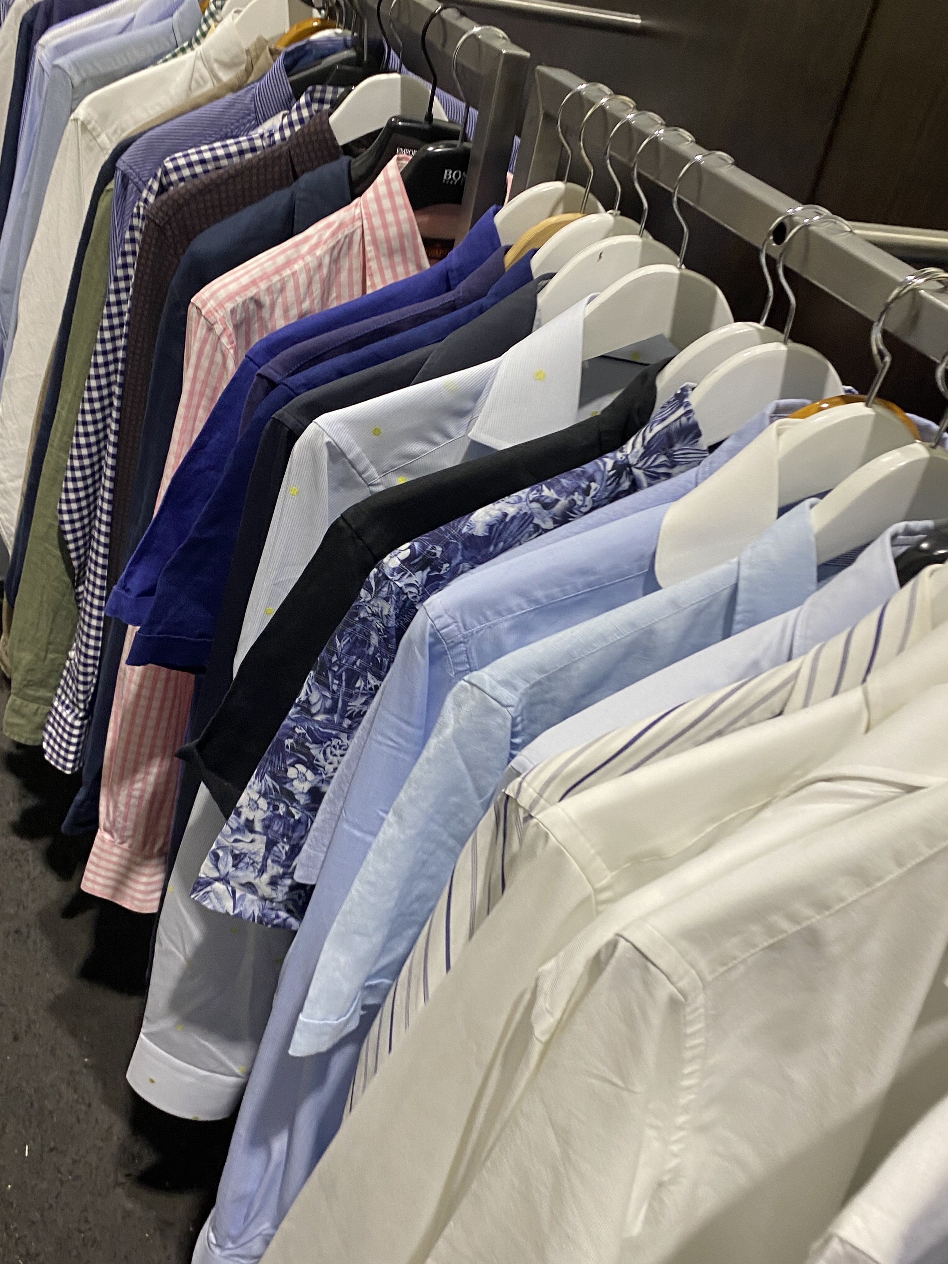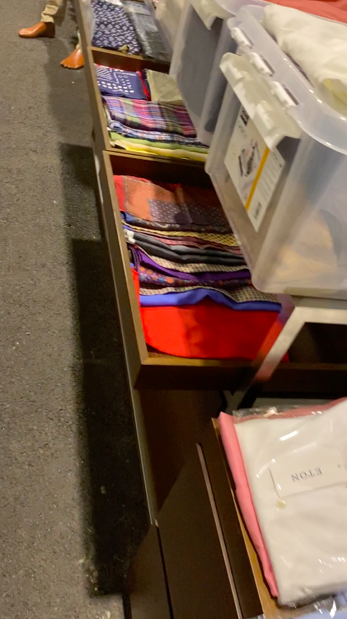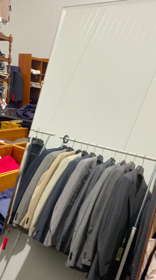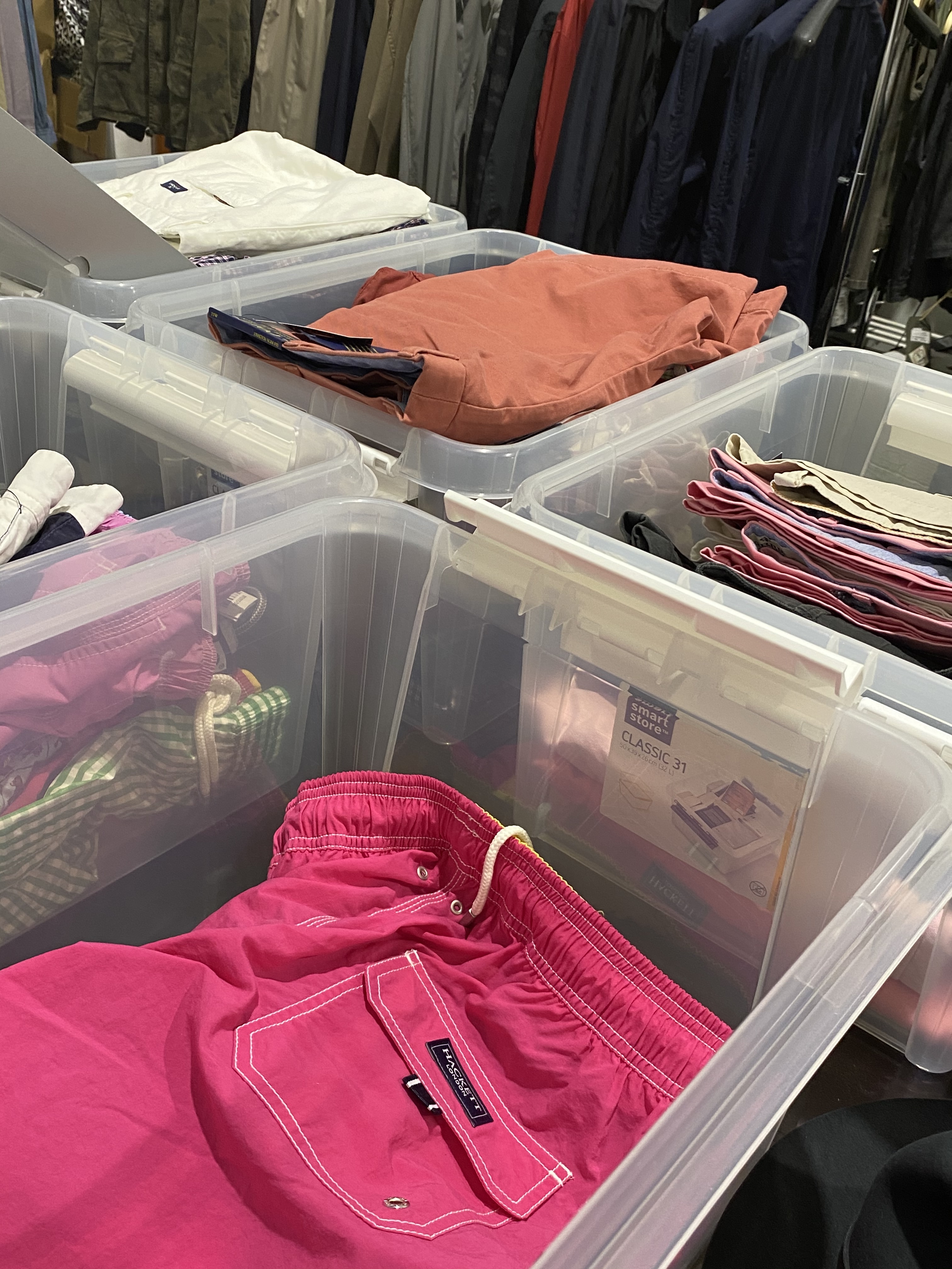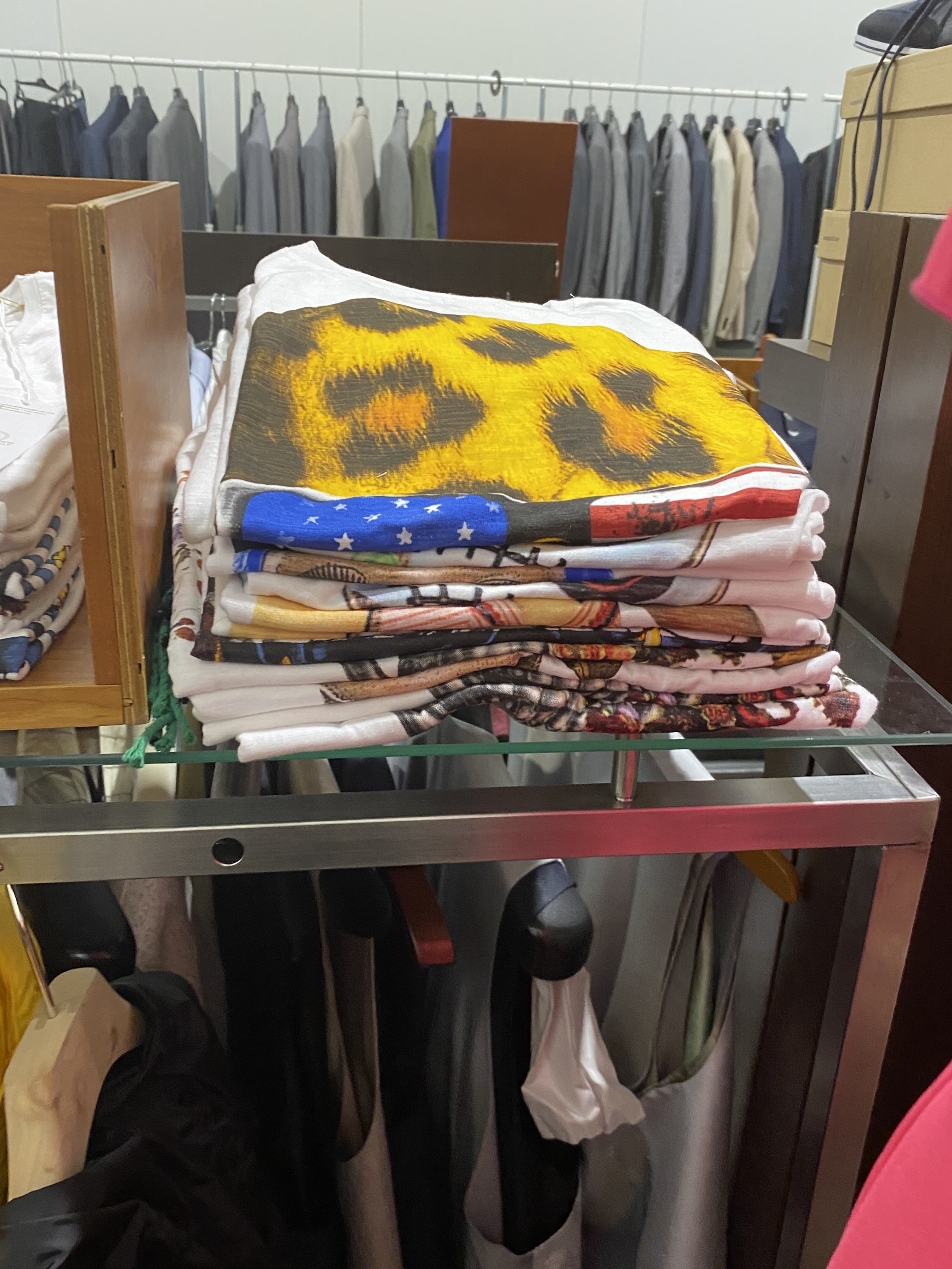 The objects also include some furniture such as glass display tables, benches with drawers and display on top, glass counters, clothes hanging furniture, and about 30-40 clothes racks of a simpler kind for IKEA.