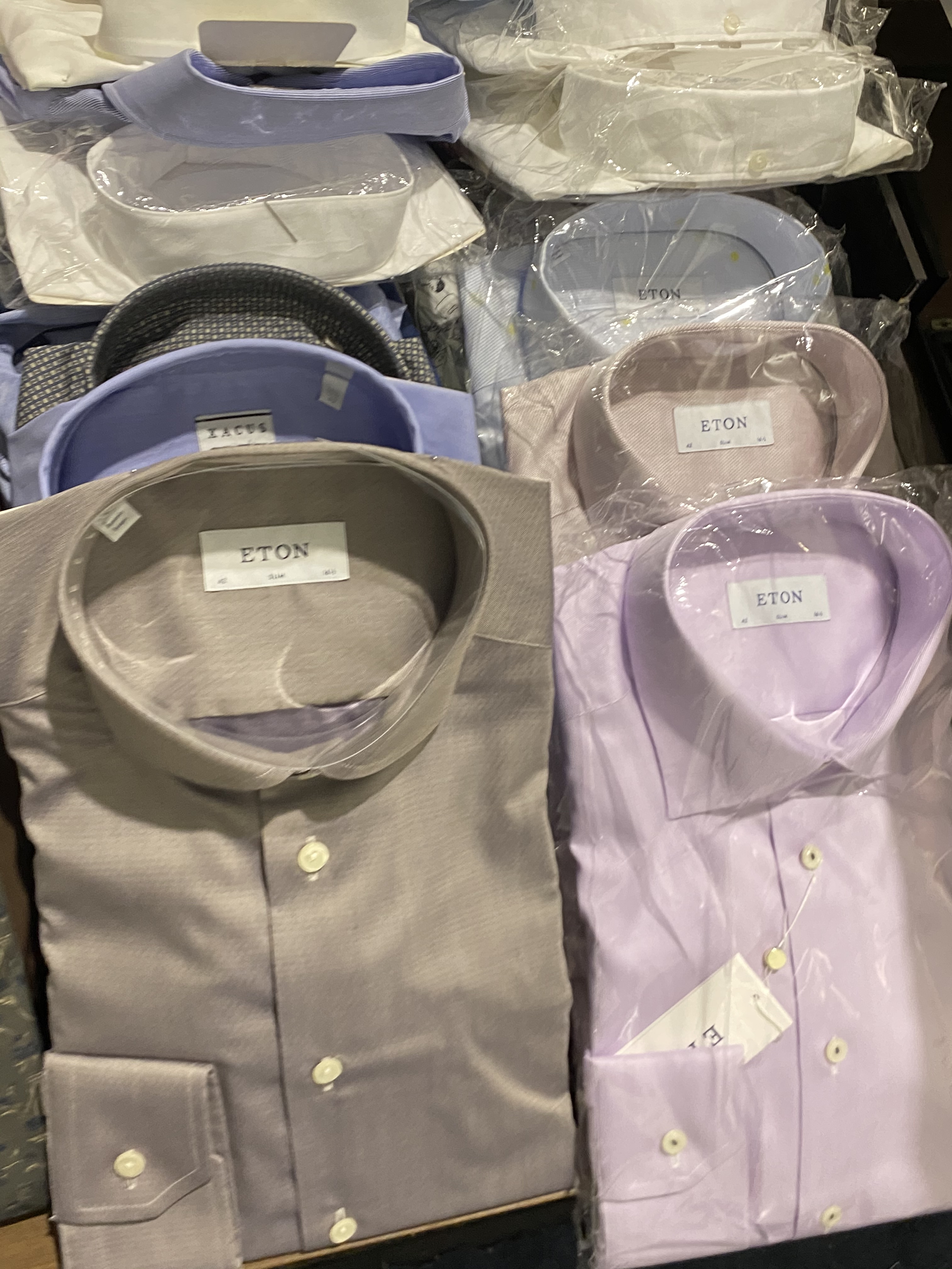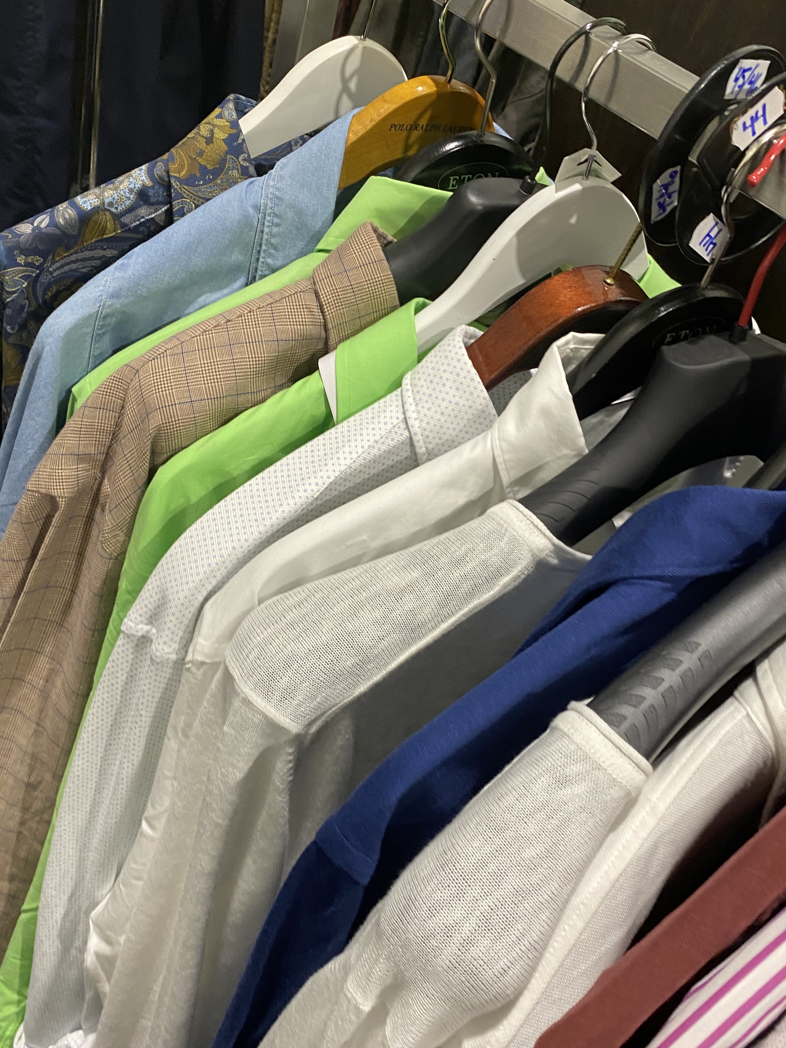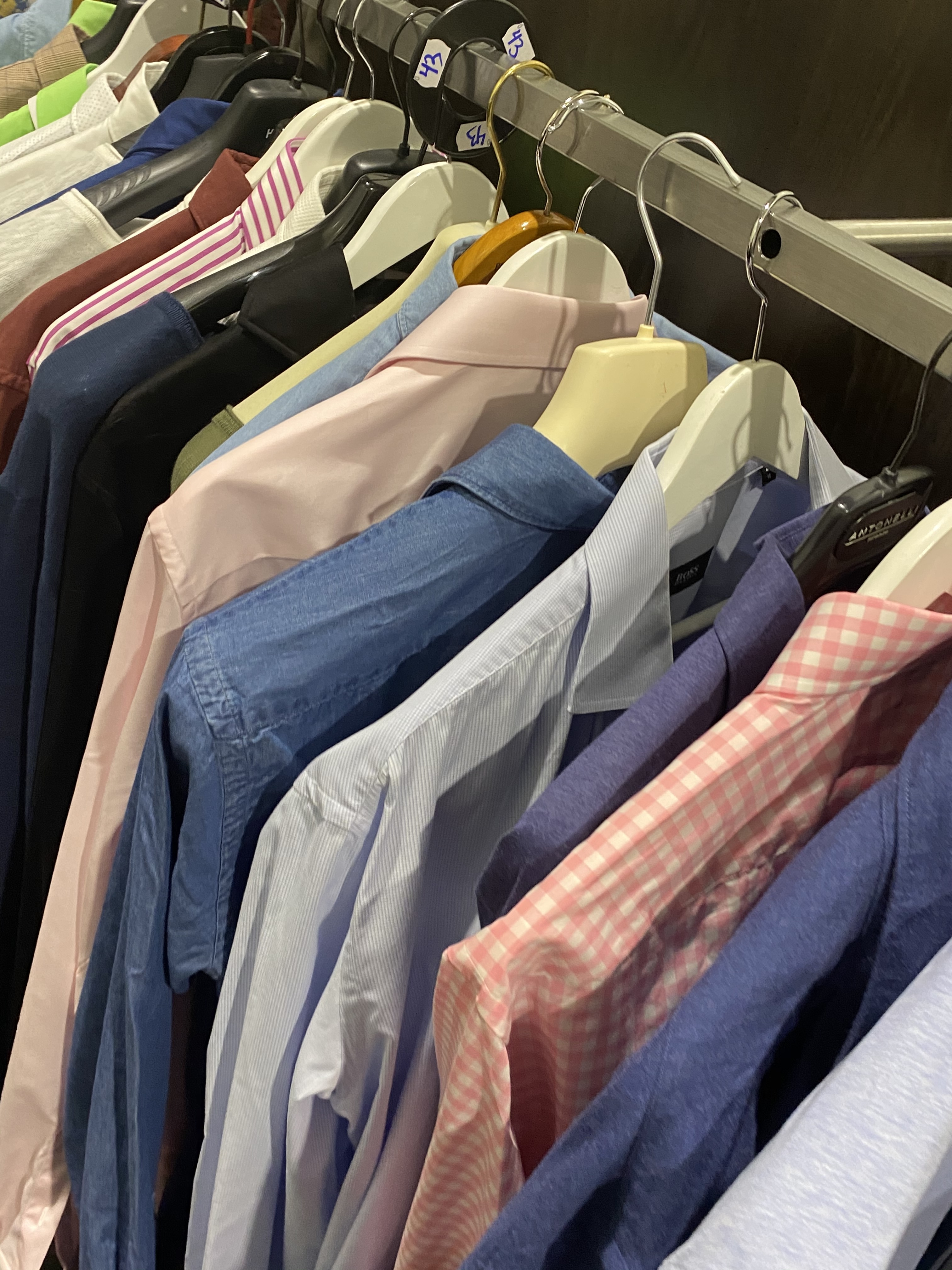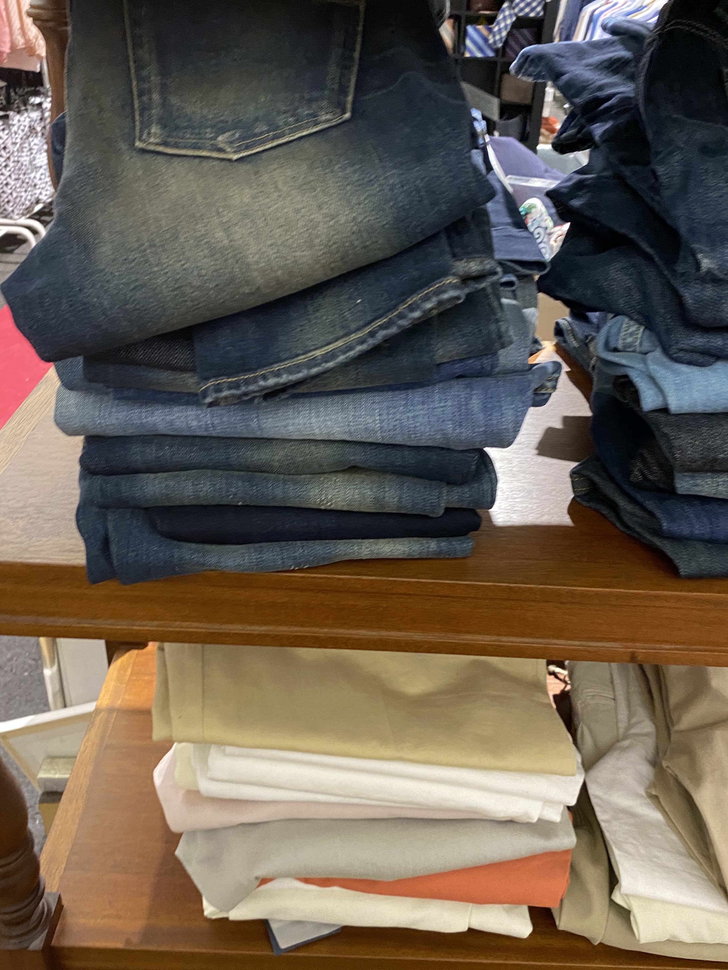 The objects also include some furniture such as glass display tables, benches with drawers and display on top, glass counters, clothes hanging furniture, and about 30-40 clothes racks of a simpler kind for IKEA.