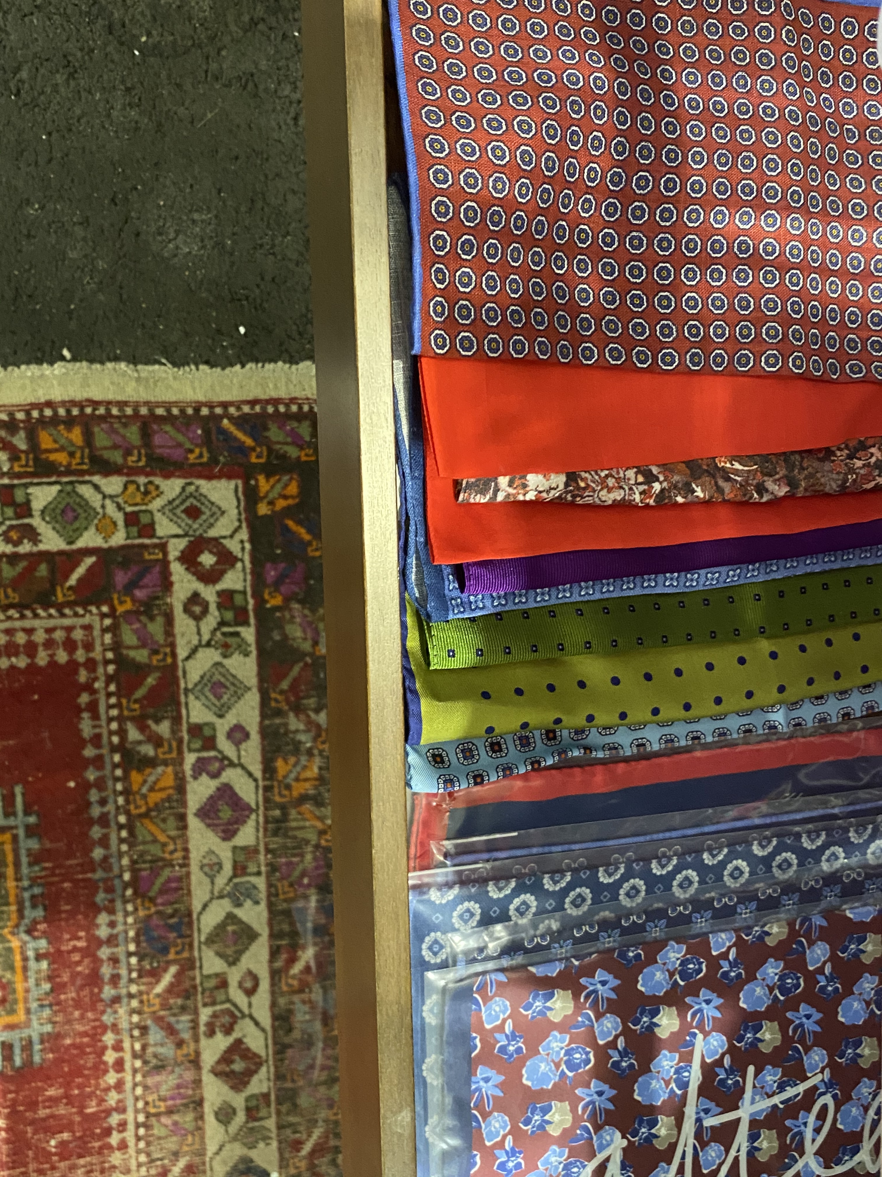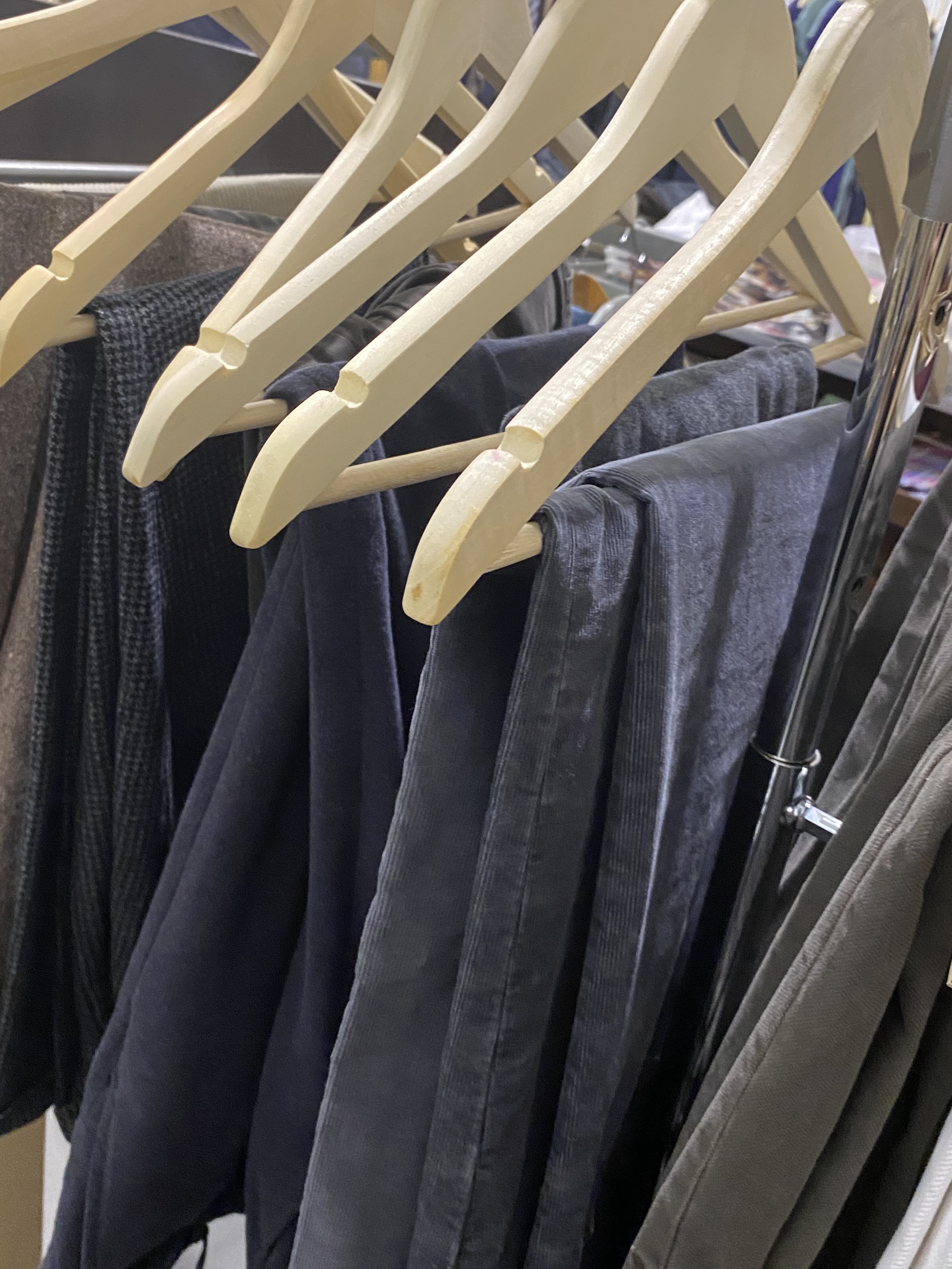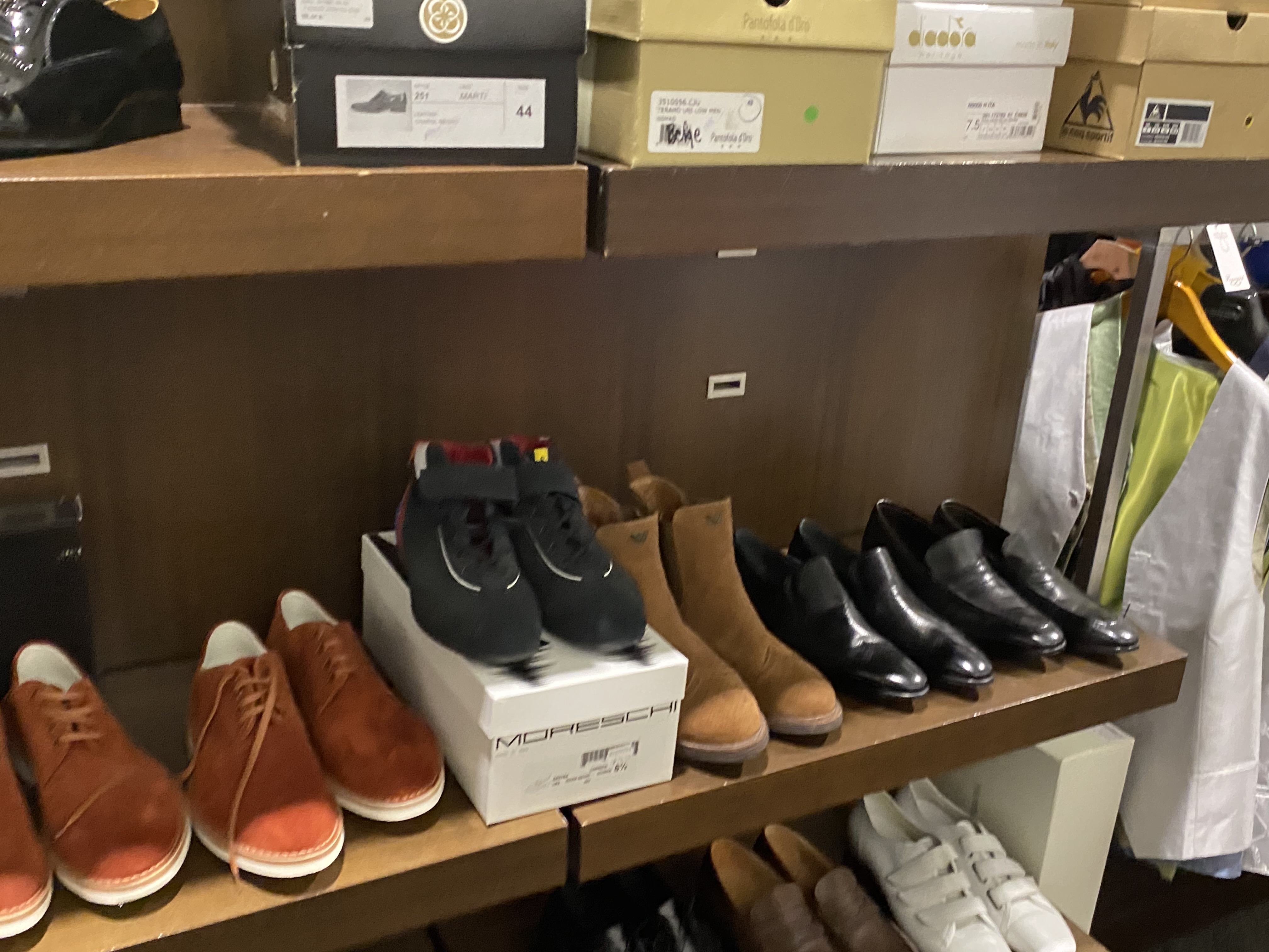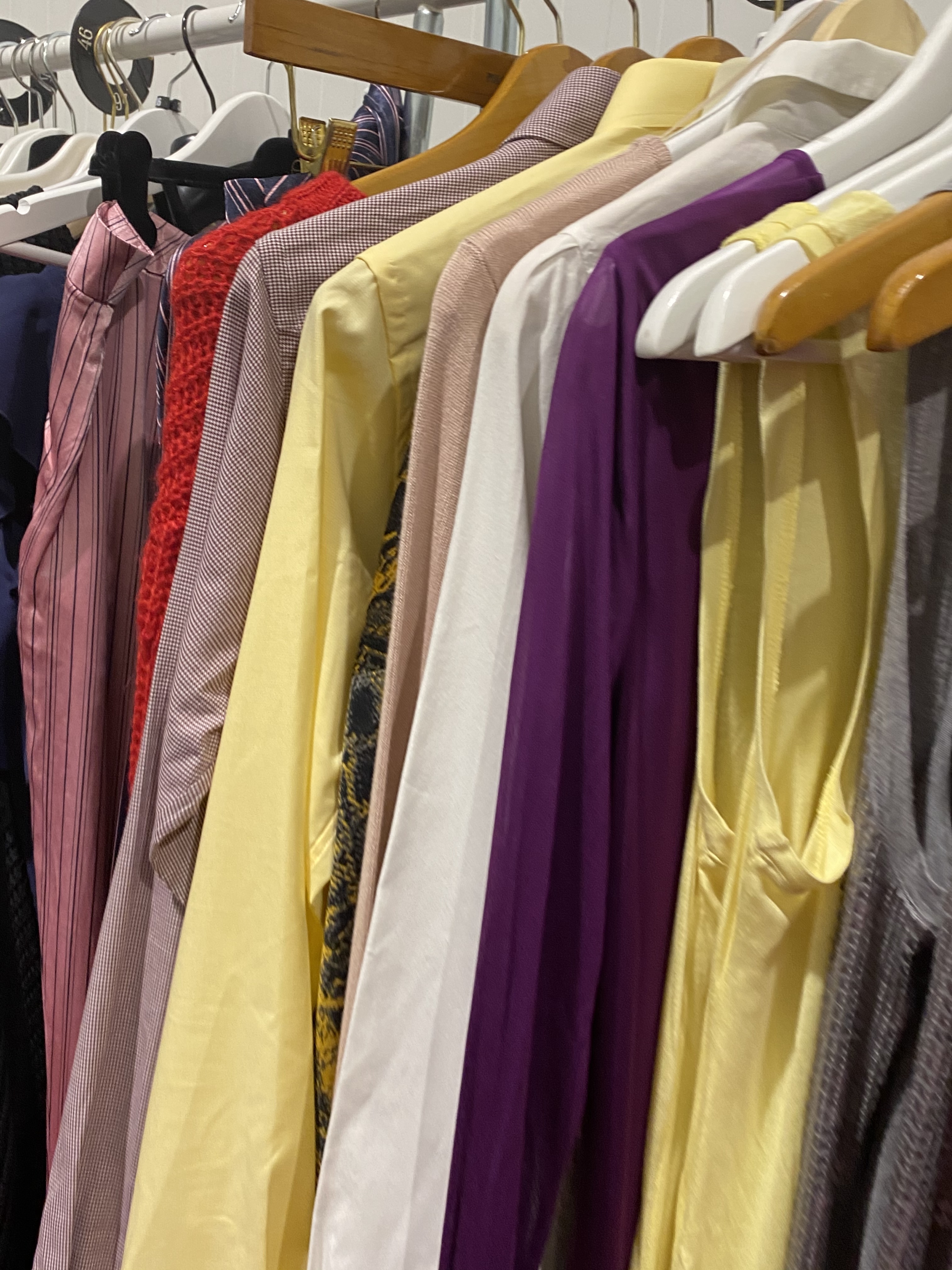 The objects also include some furniture such as glass display tables, benches with drawers and display on top, glass counters, clothes hanging furniture, and about 30-40 clothes racks of a simpler kind for IKEA.