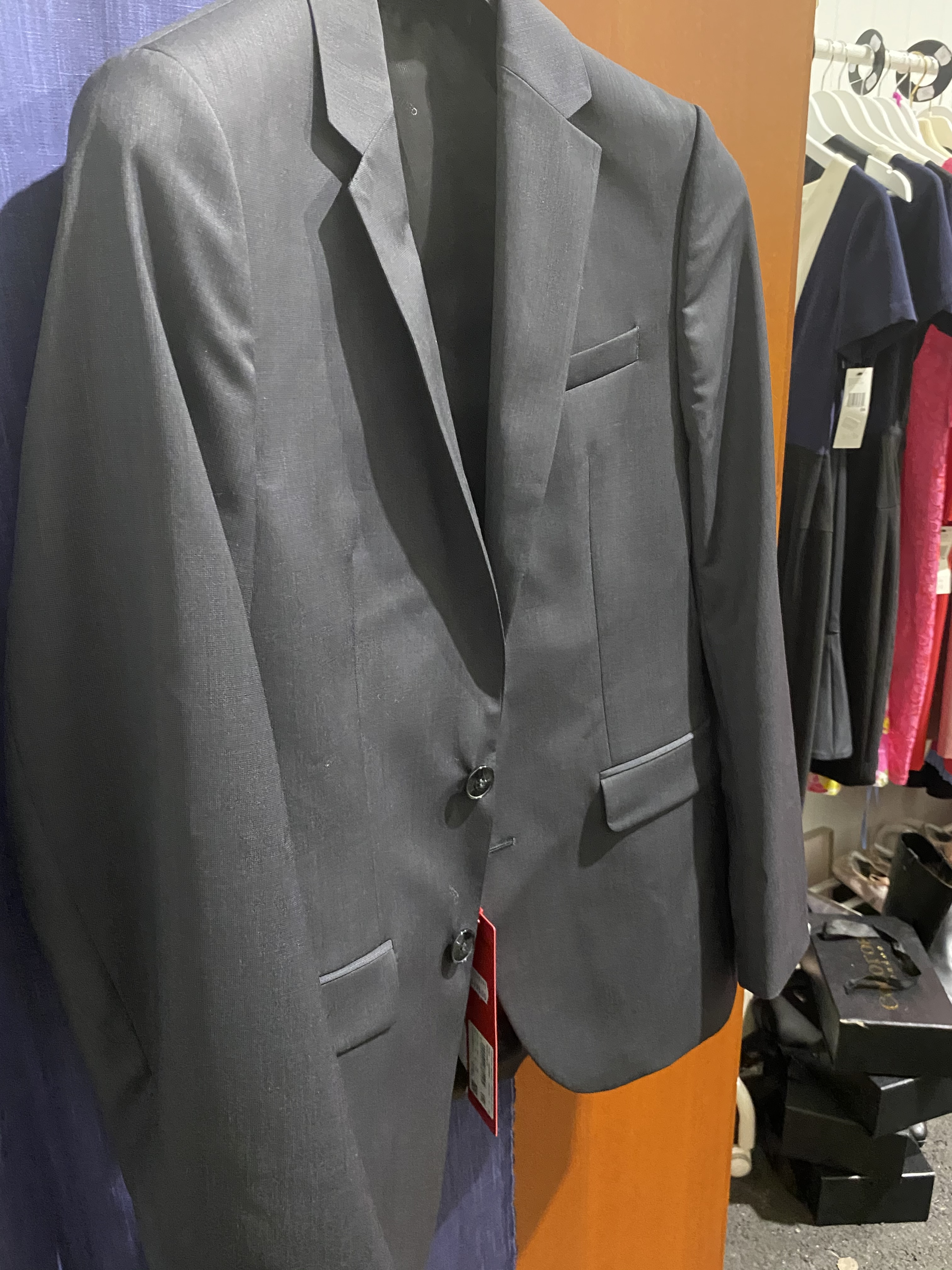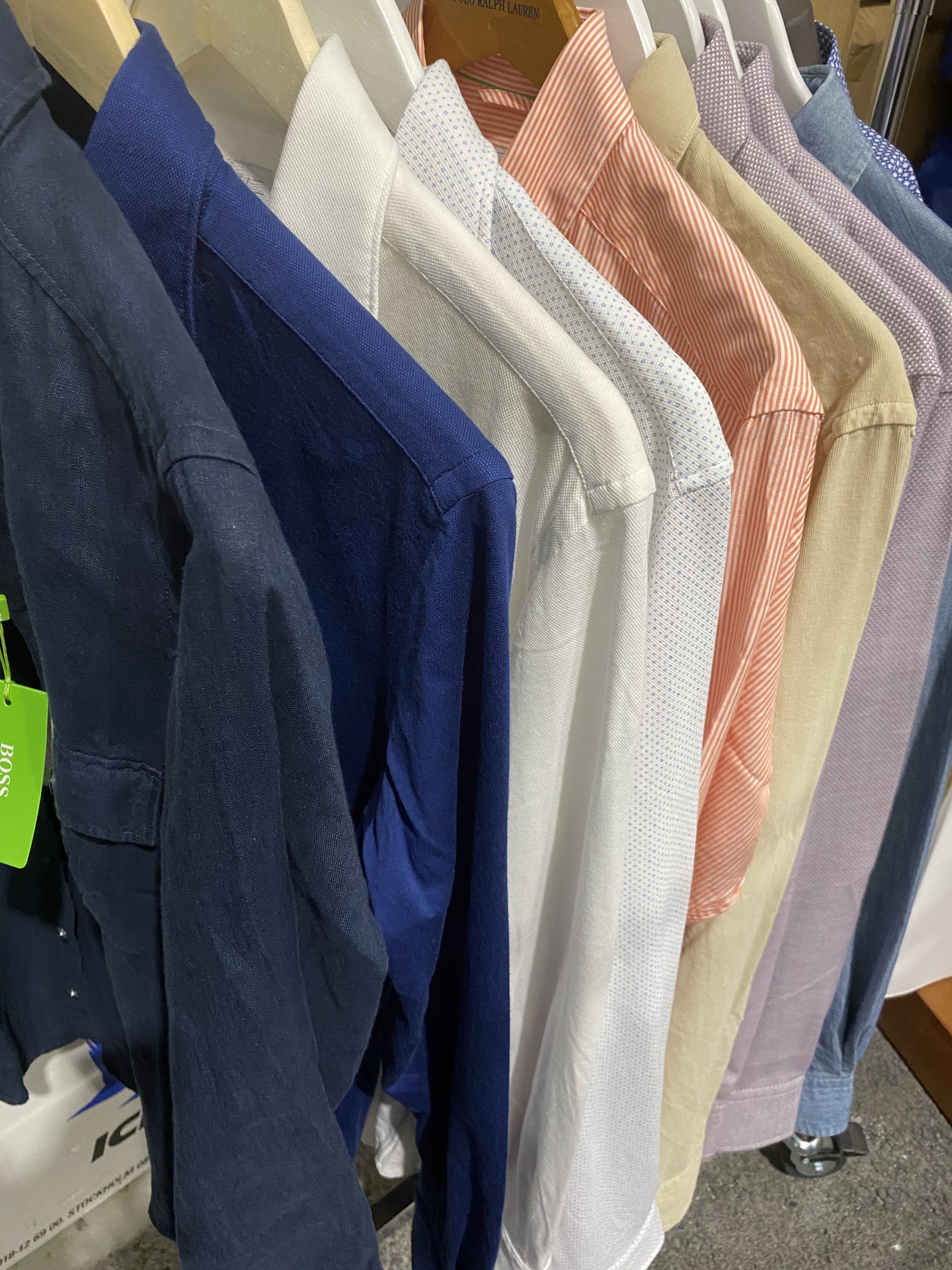 The party includes shirts, sweaters, polo shirts, pants, jackets, suits, tuxedos, coats, jackets, swim shorts, hats, caps and more.
