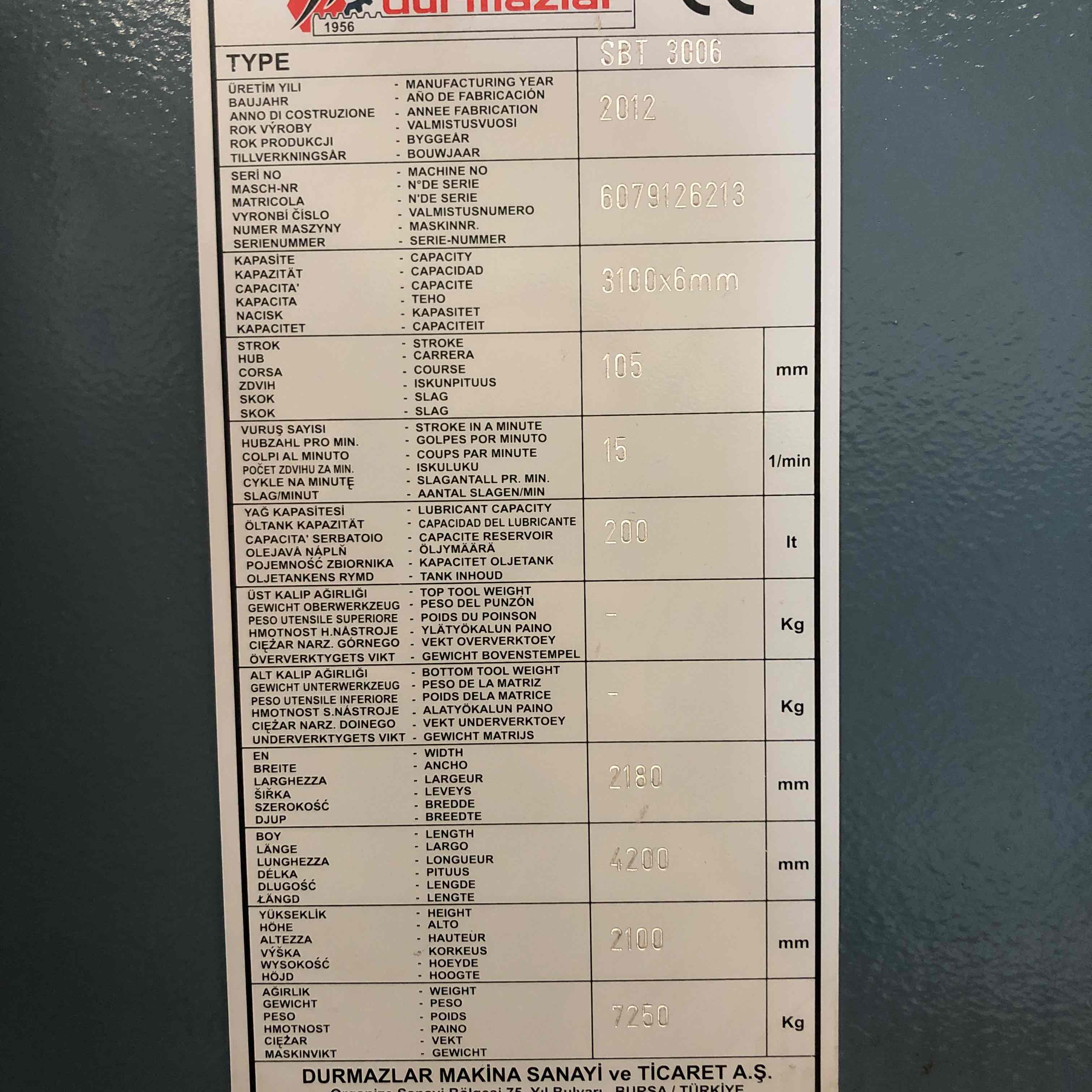 Shearing machine Durma SBT 3006