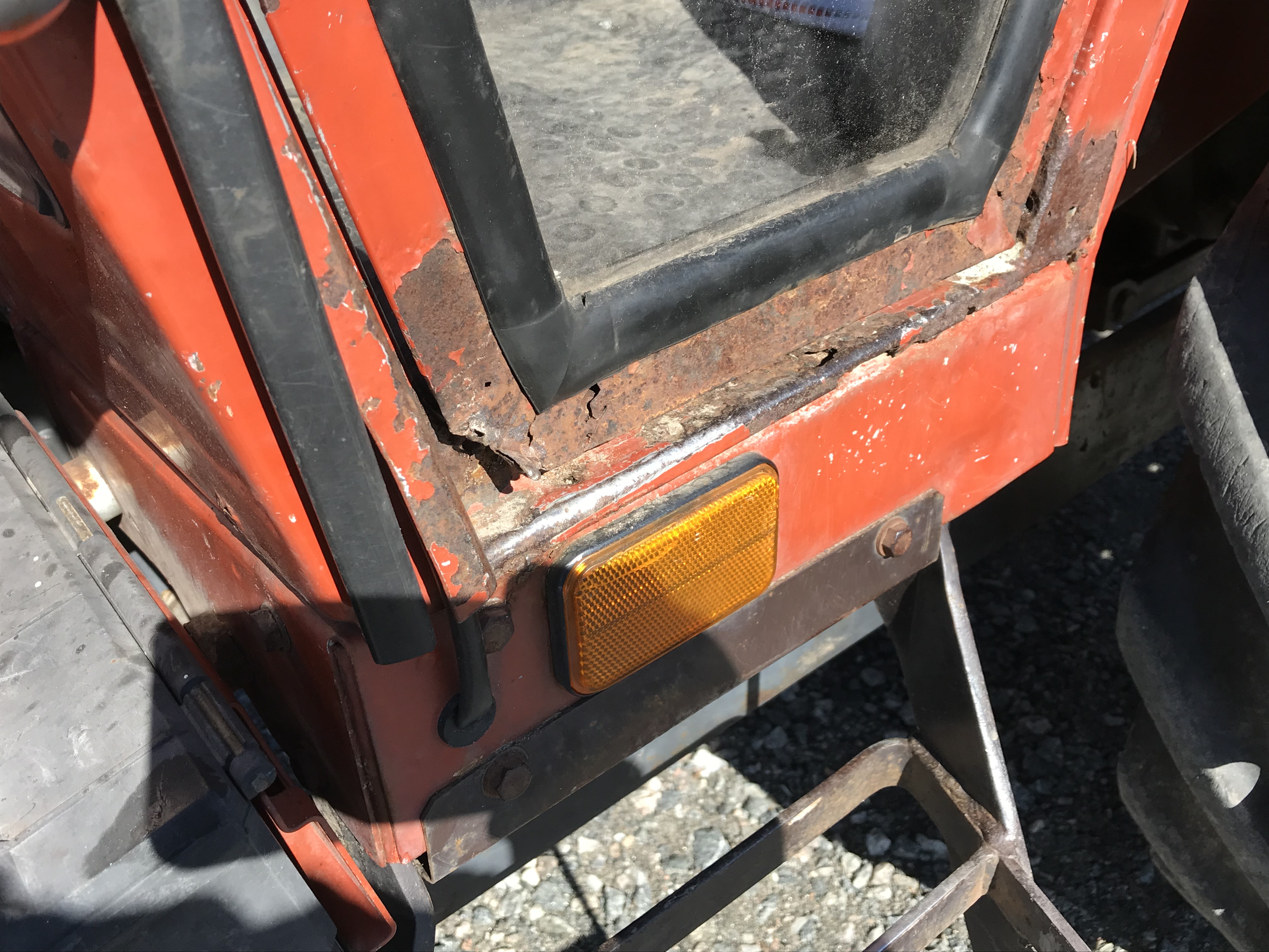 The tractor probably has the original paint. Of course, there are traces of 30 years of age. A little rust attack down the cabin and door. . Some glass panes replaced plexi. Traces of previous welding patches on the loader. Wear in the front wagon. Failure in the joints of the loader. Clutch takes up something high. Traces of diesel leakage below.