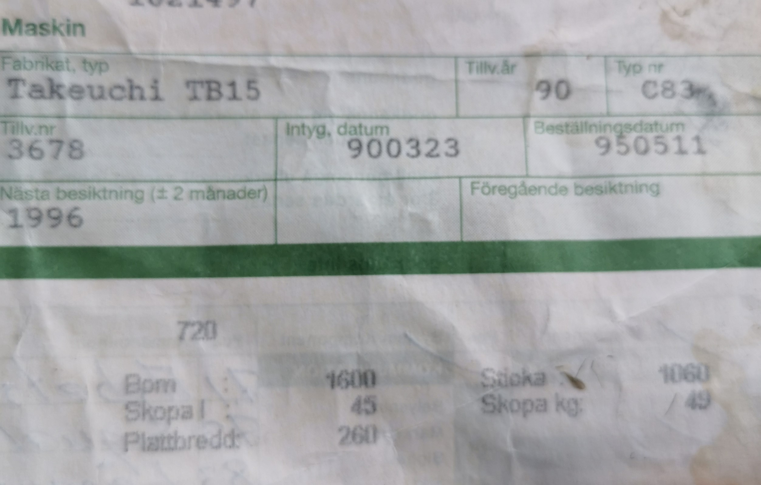 Excavator Takeuchi TB 15.