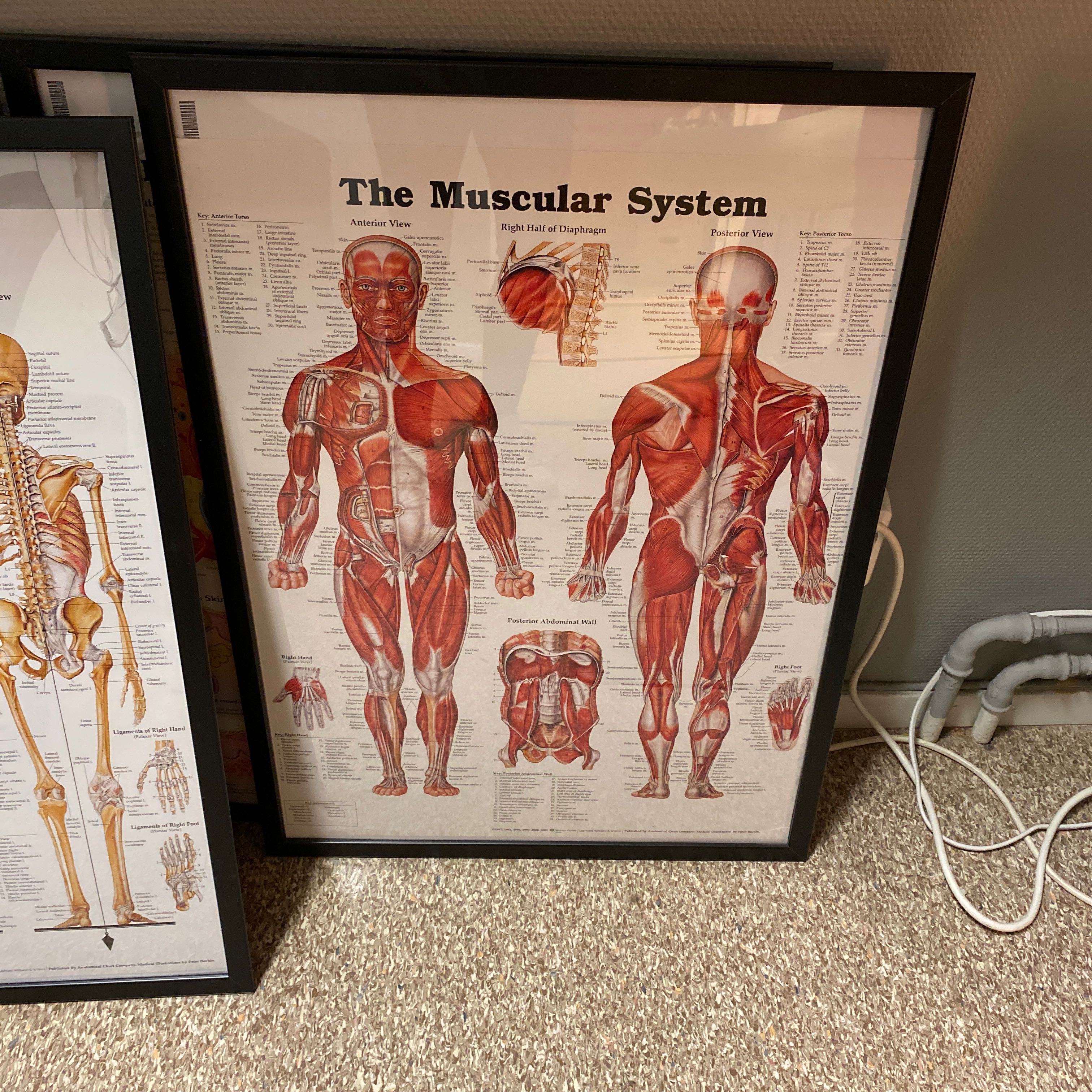 8 posters on the anatomy of the human body, nervous system, skeleton, muscular system etc.
