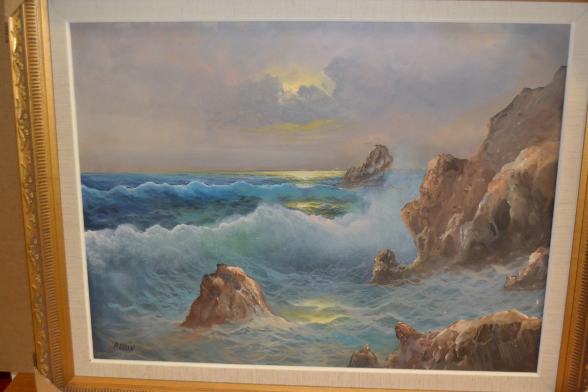 Oljemålning med havsmotiv av konstnären Mellin.