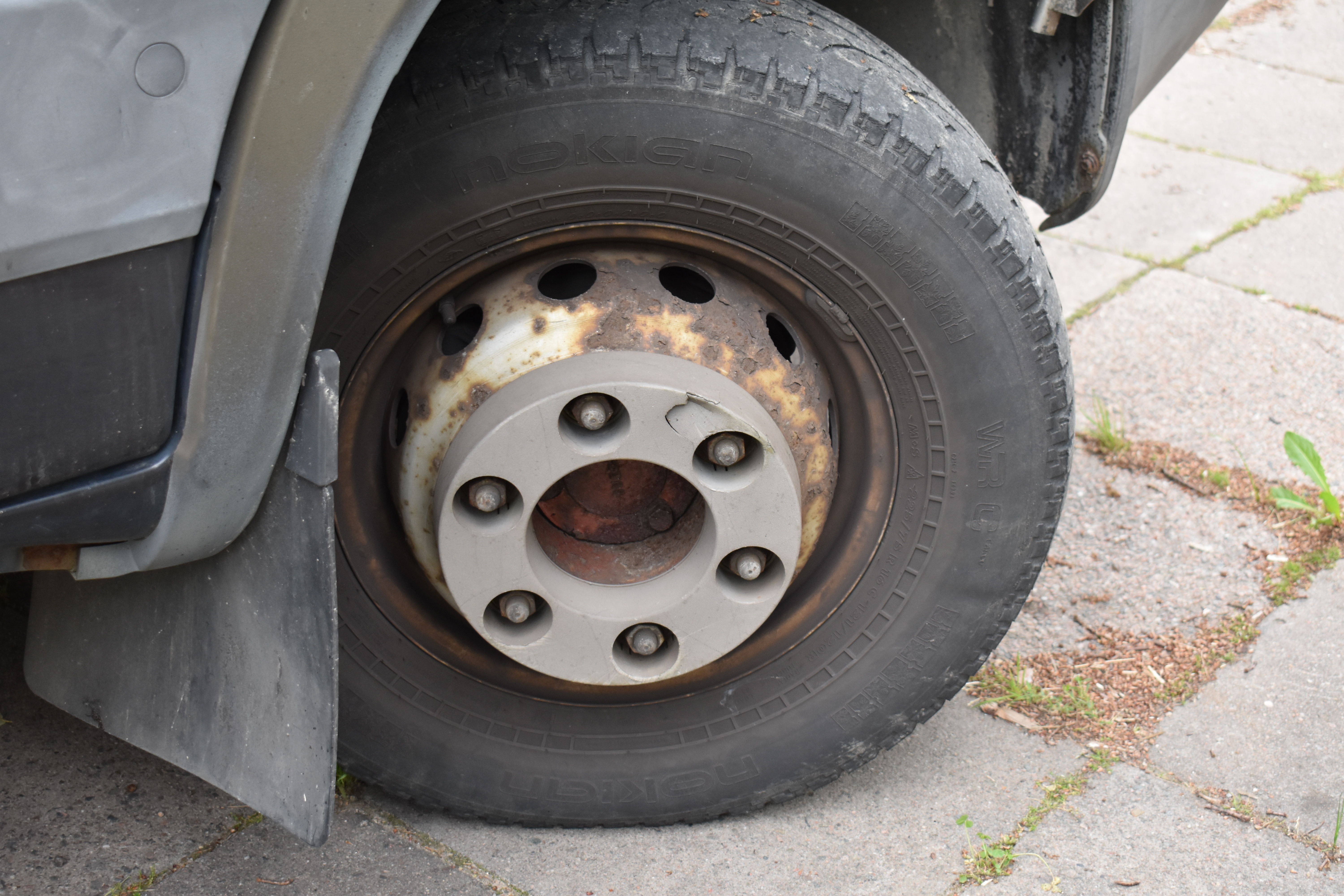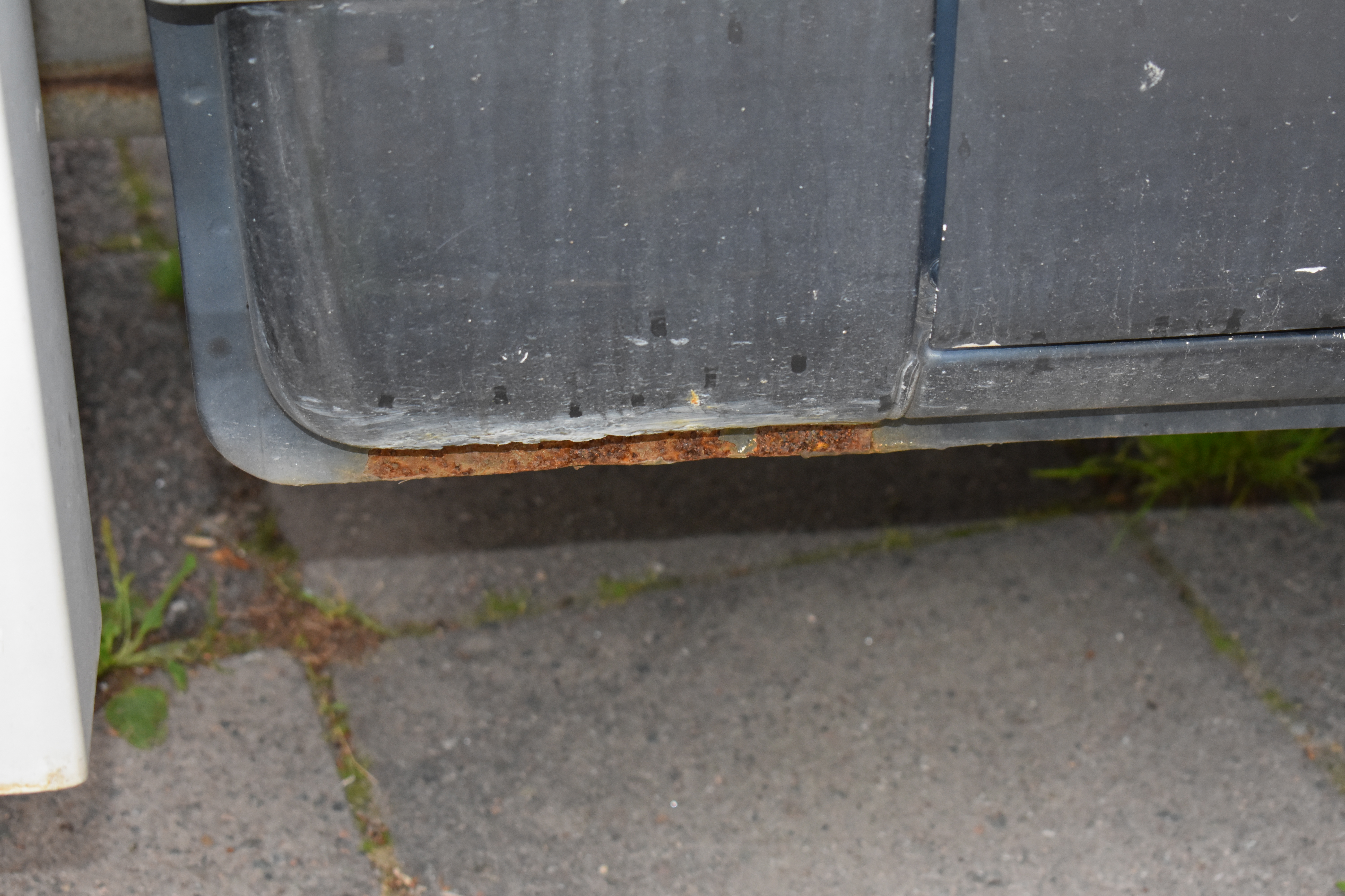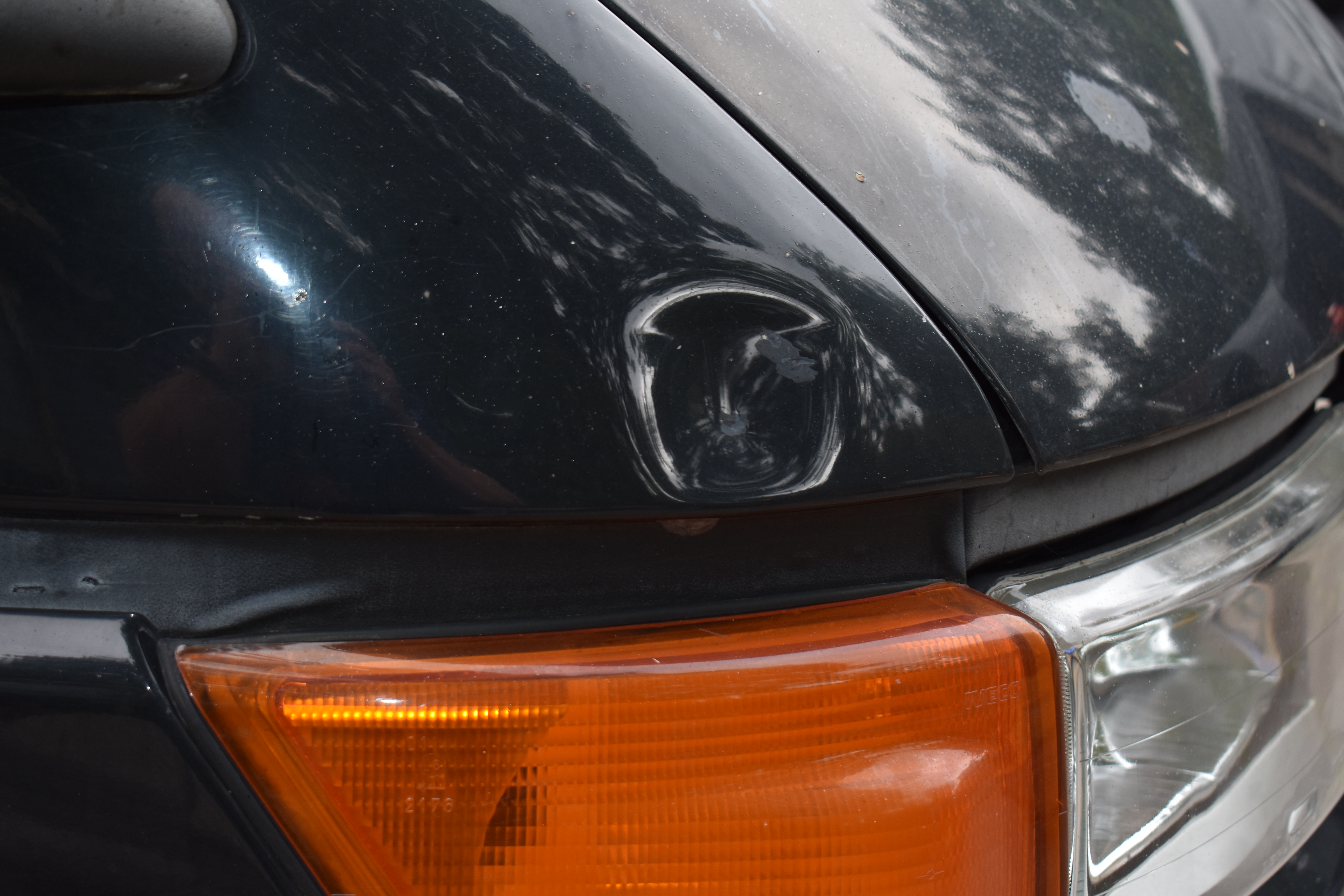 External condition: Antenna missing. Rust with paint release, scratches and chafing are found in several places around the body. Indentation is located above the right turn signal.