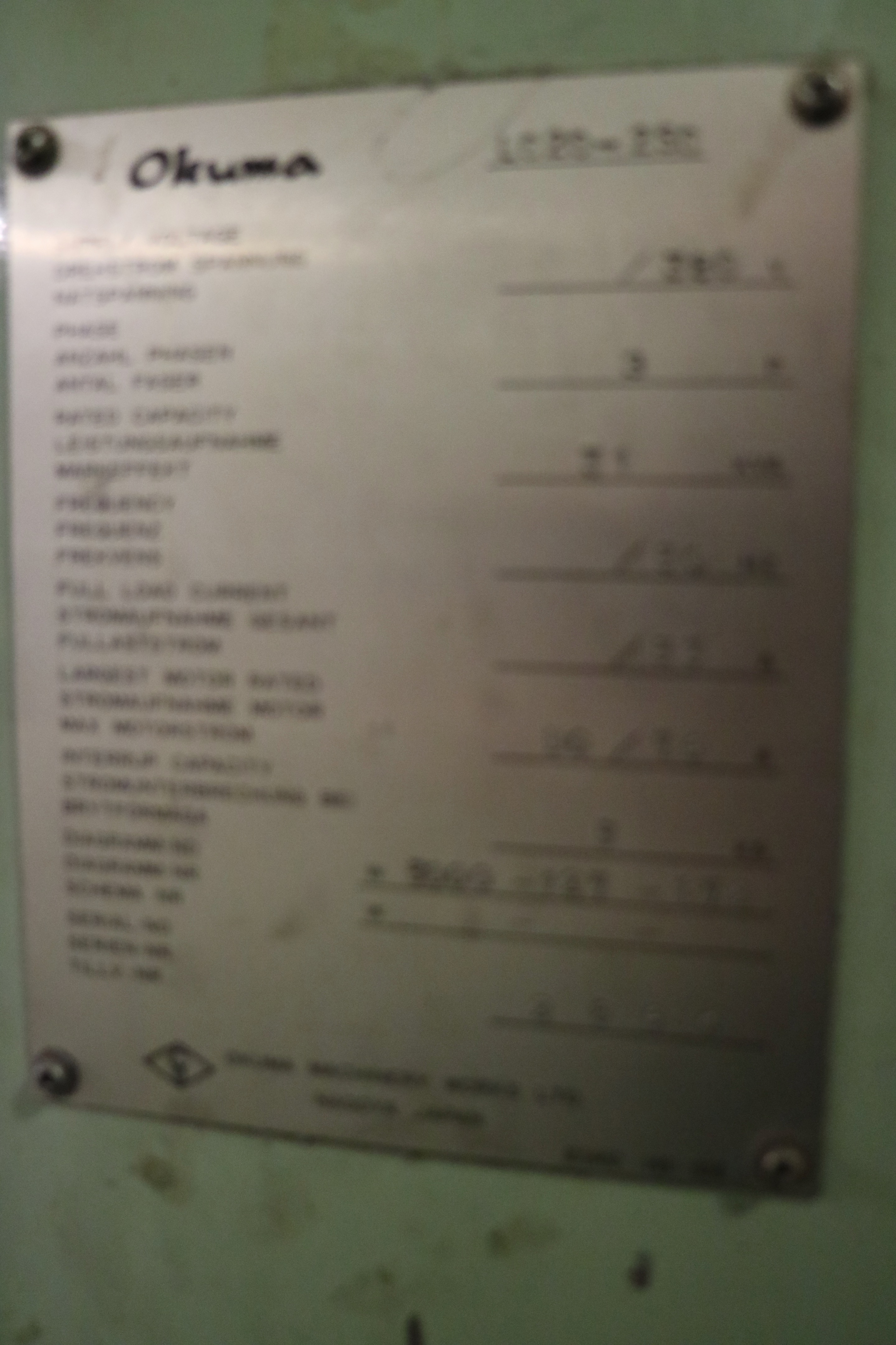 CNC lathe uses marked Okuma LC 20 of 1985 model.