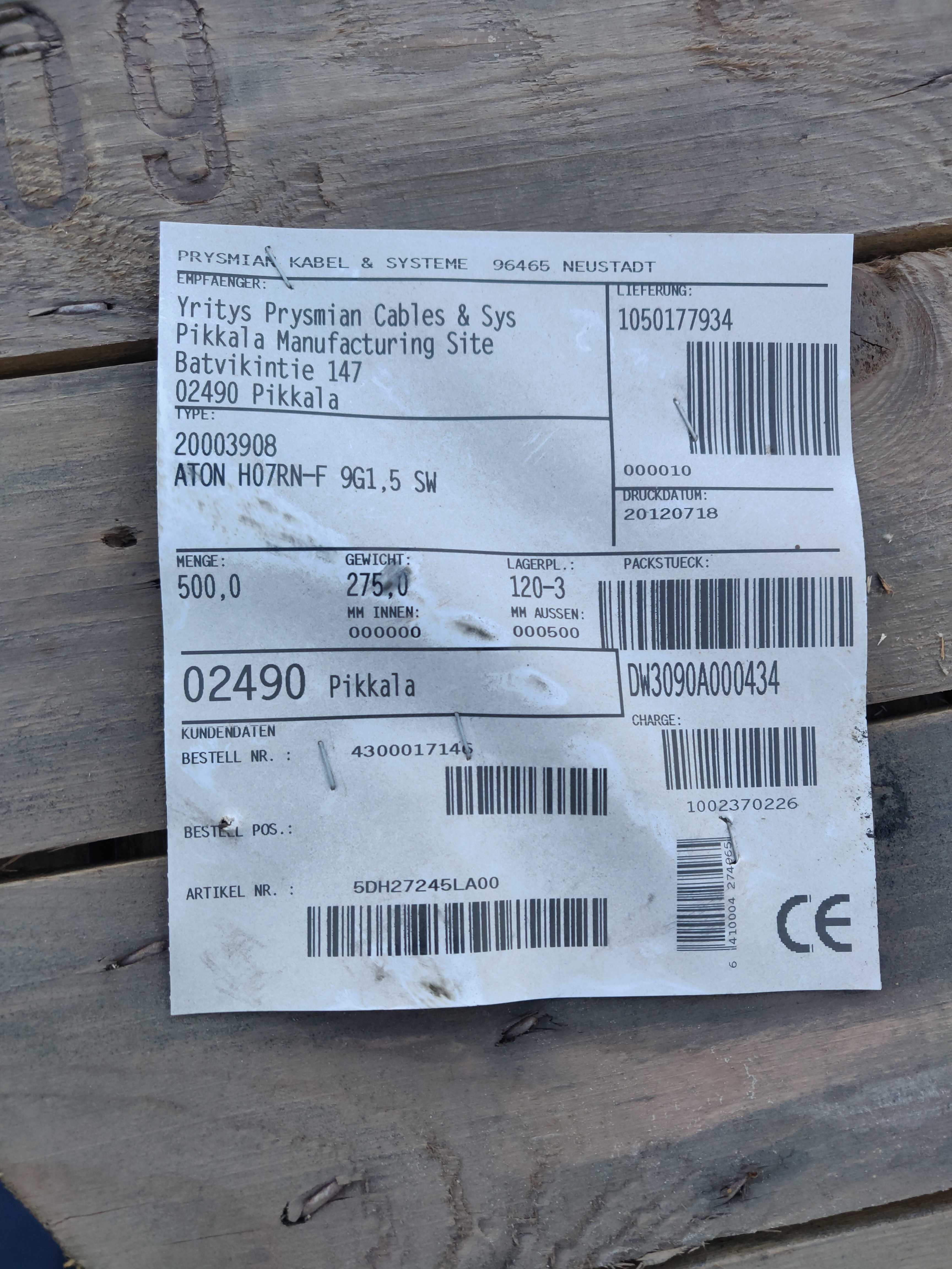 VSB ATON 9G1.5 H07RN-F, 500m