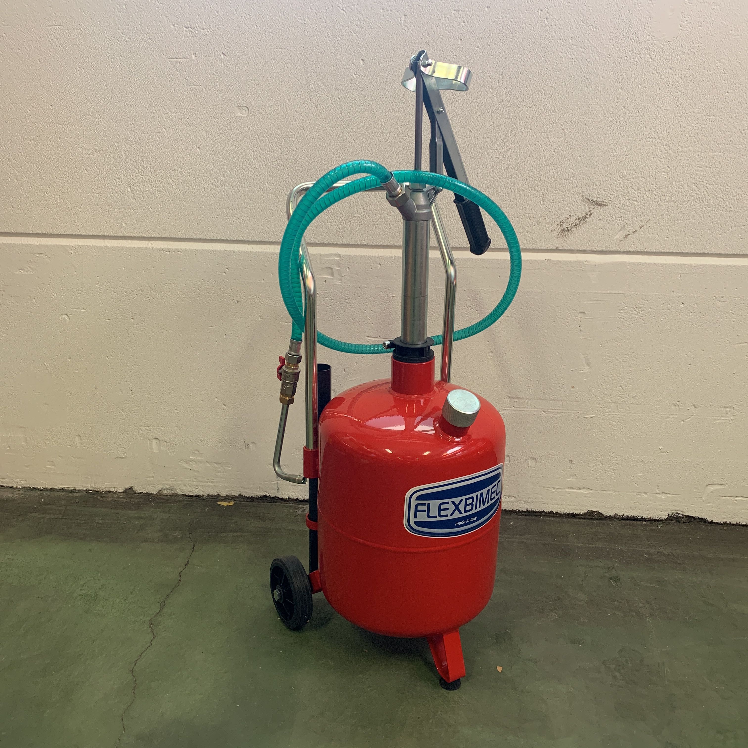 Mobile hand pump driven oil distributor from Flexbimec.