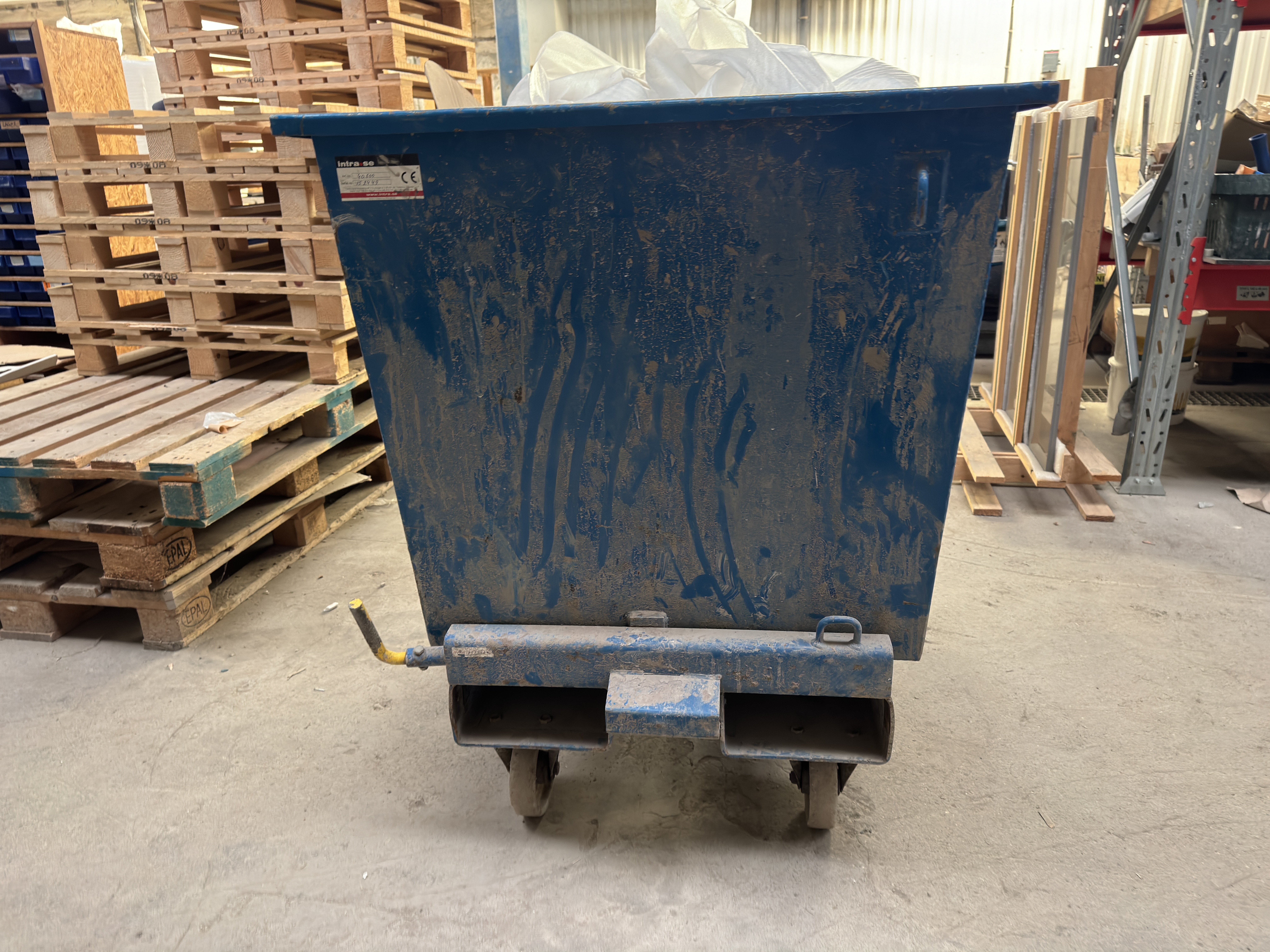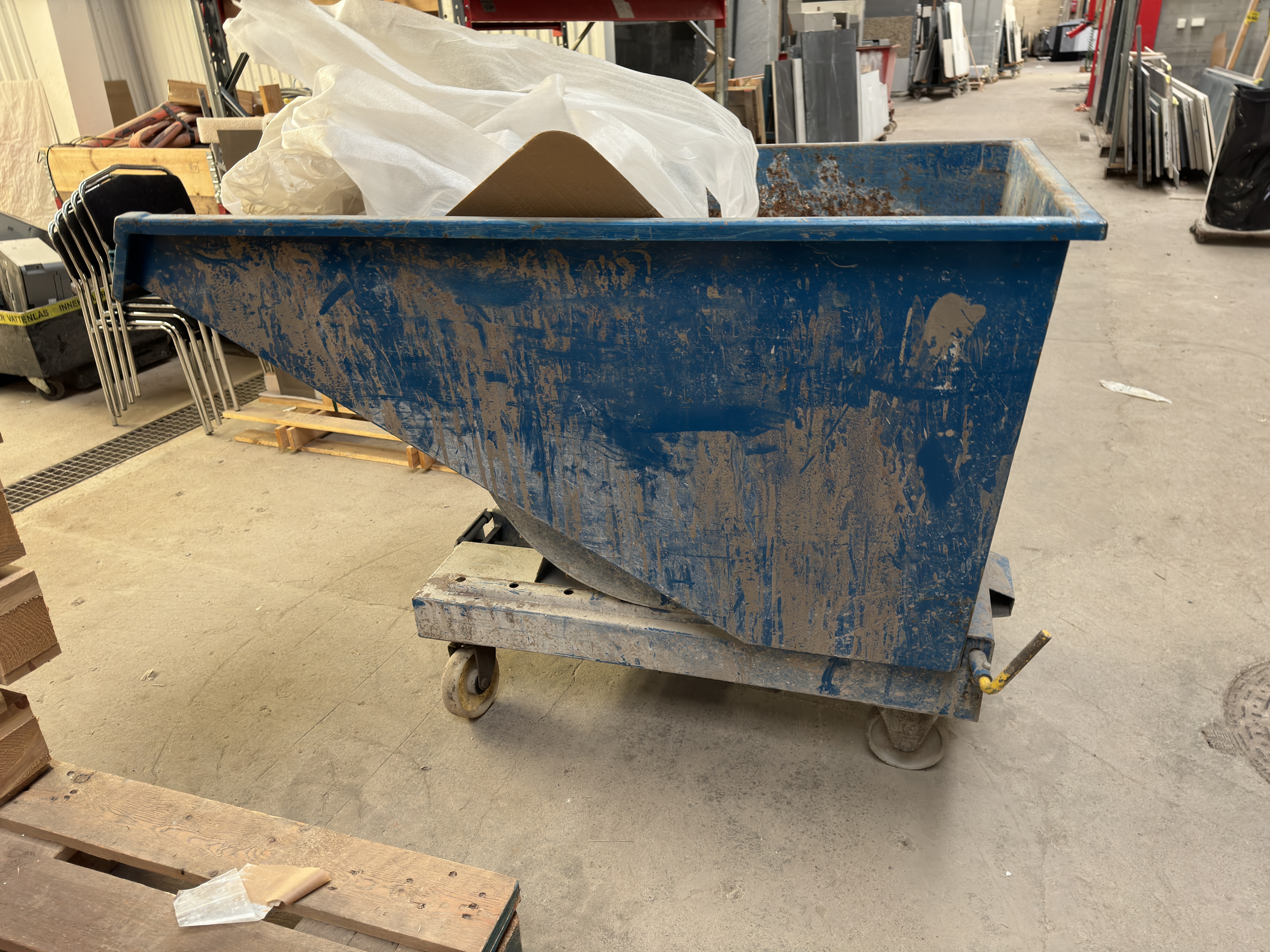 Tipp container med innehåll, 155 cm långt, 85 cm bred, 105 cm hög