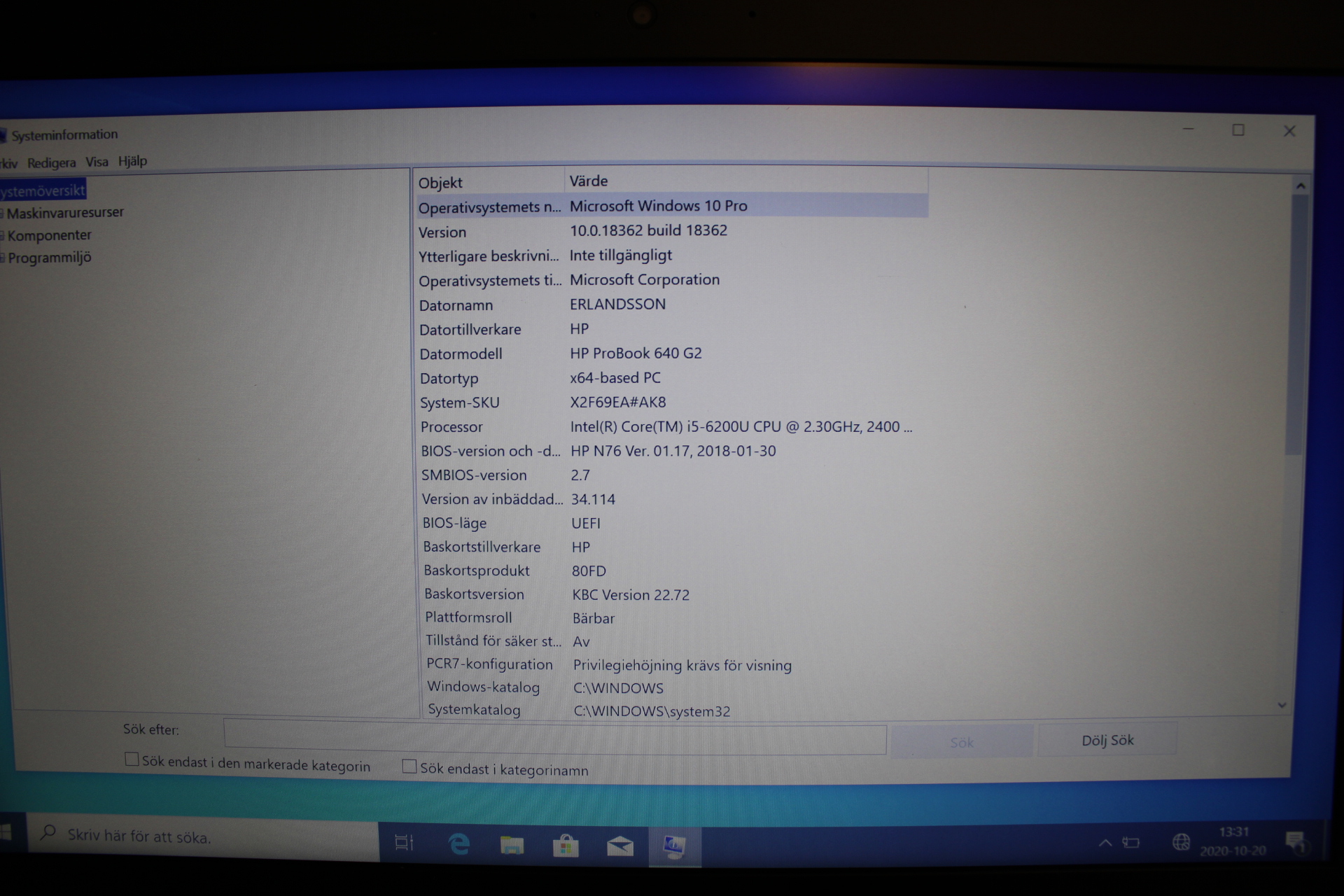 | Processor | Intel(R) Core(TM) i5-6200U CPU 2.30GHz 2.40GHz |
