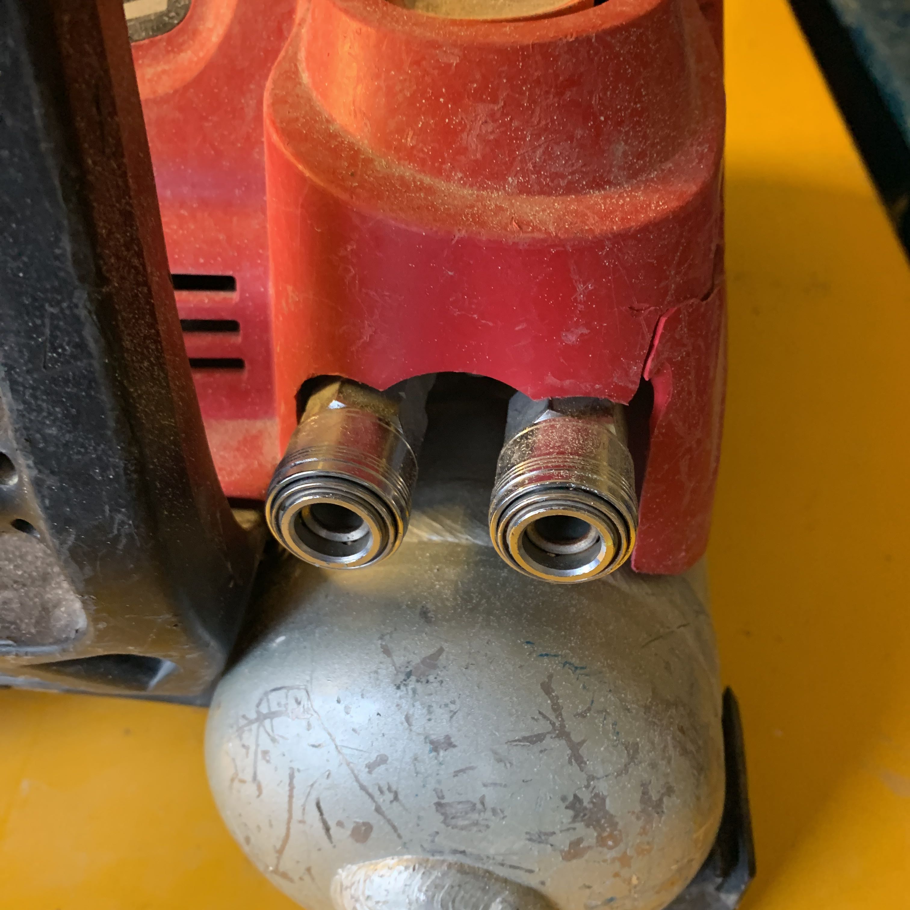 If there is damage to the top of the machine in the plastic, see photos. No other information that the machine will not work from a previous employee.