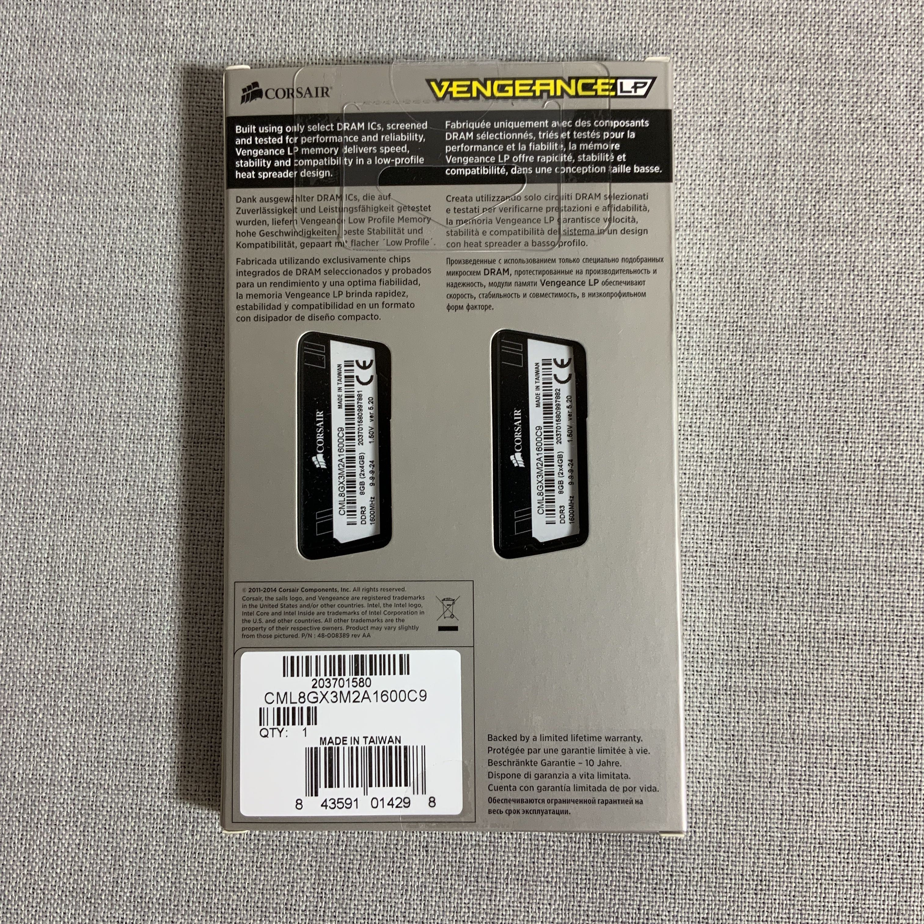 2x4GB 1600MHz (PC3-12800) DDR3 CL9 XMS3, 1.5V, Low Vengeance Heat Spreader