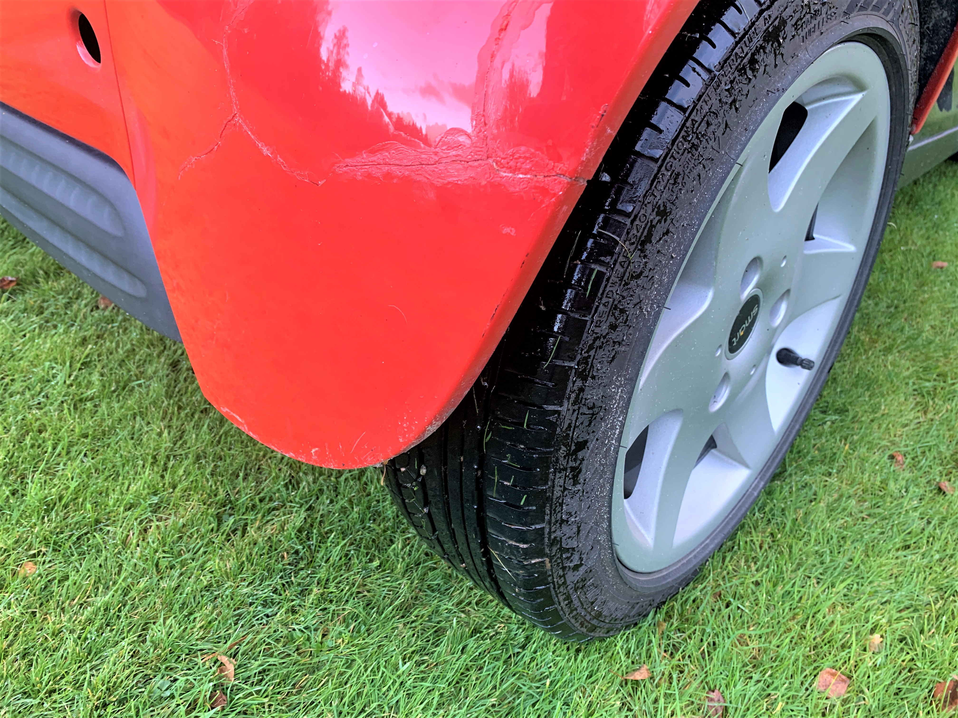 Damage to the right rear fender and rear window is probably cracked under the tape, have not checked the extent