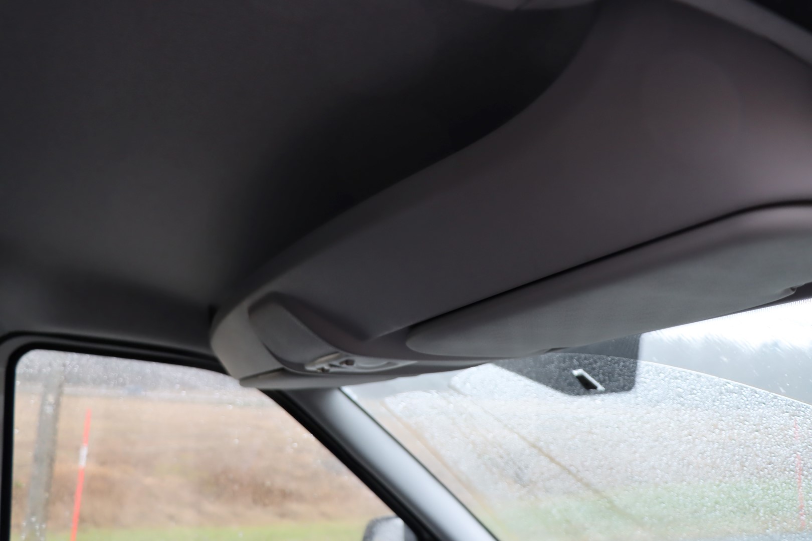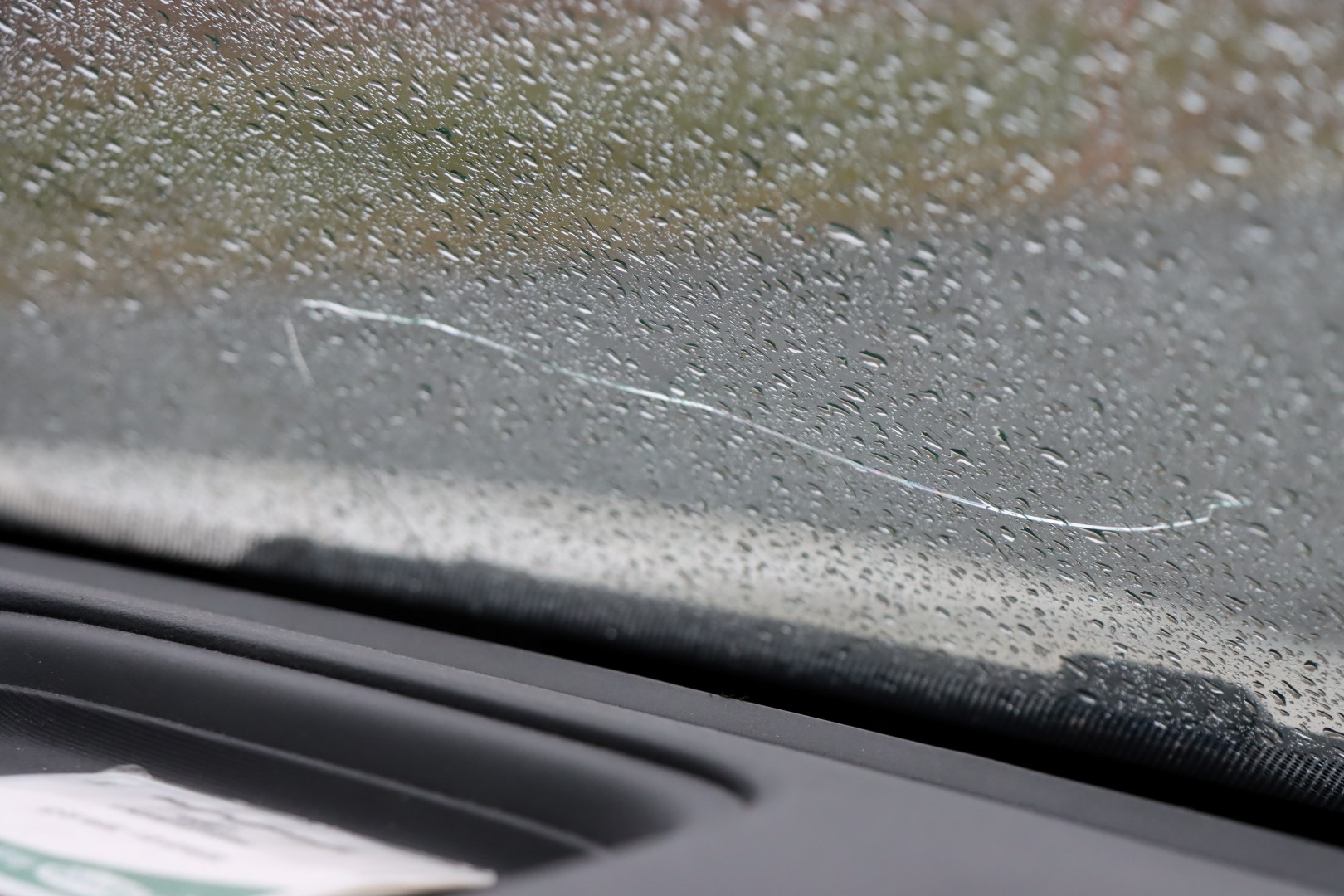 The windshield has a crack.