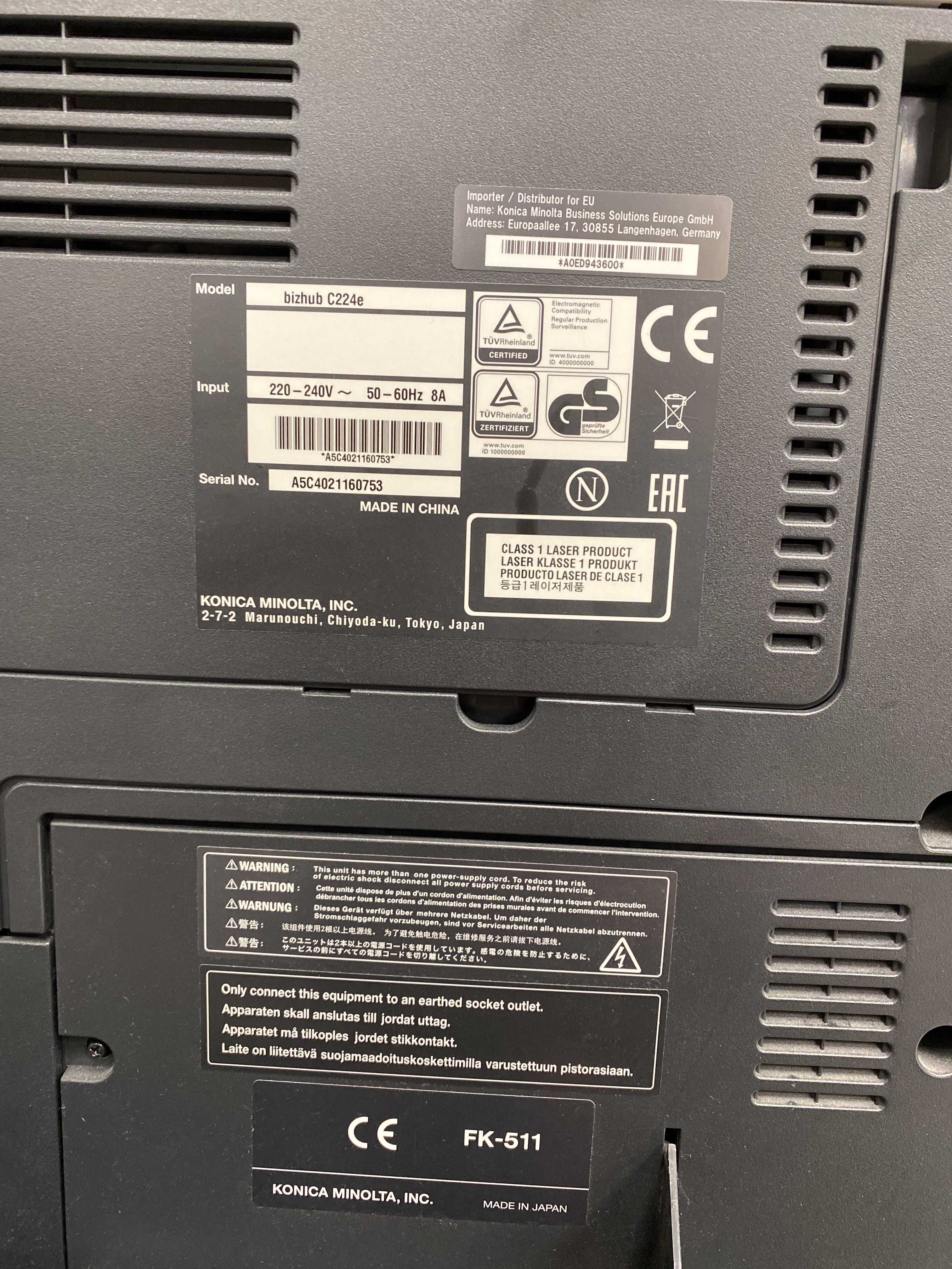 Multifunction printer, Konica Minolta, bizhub C224e