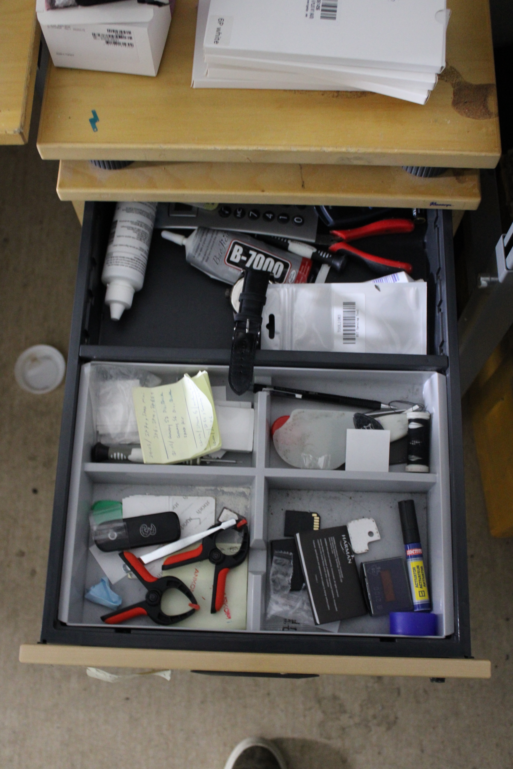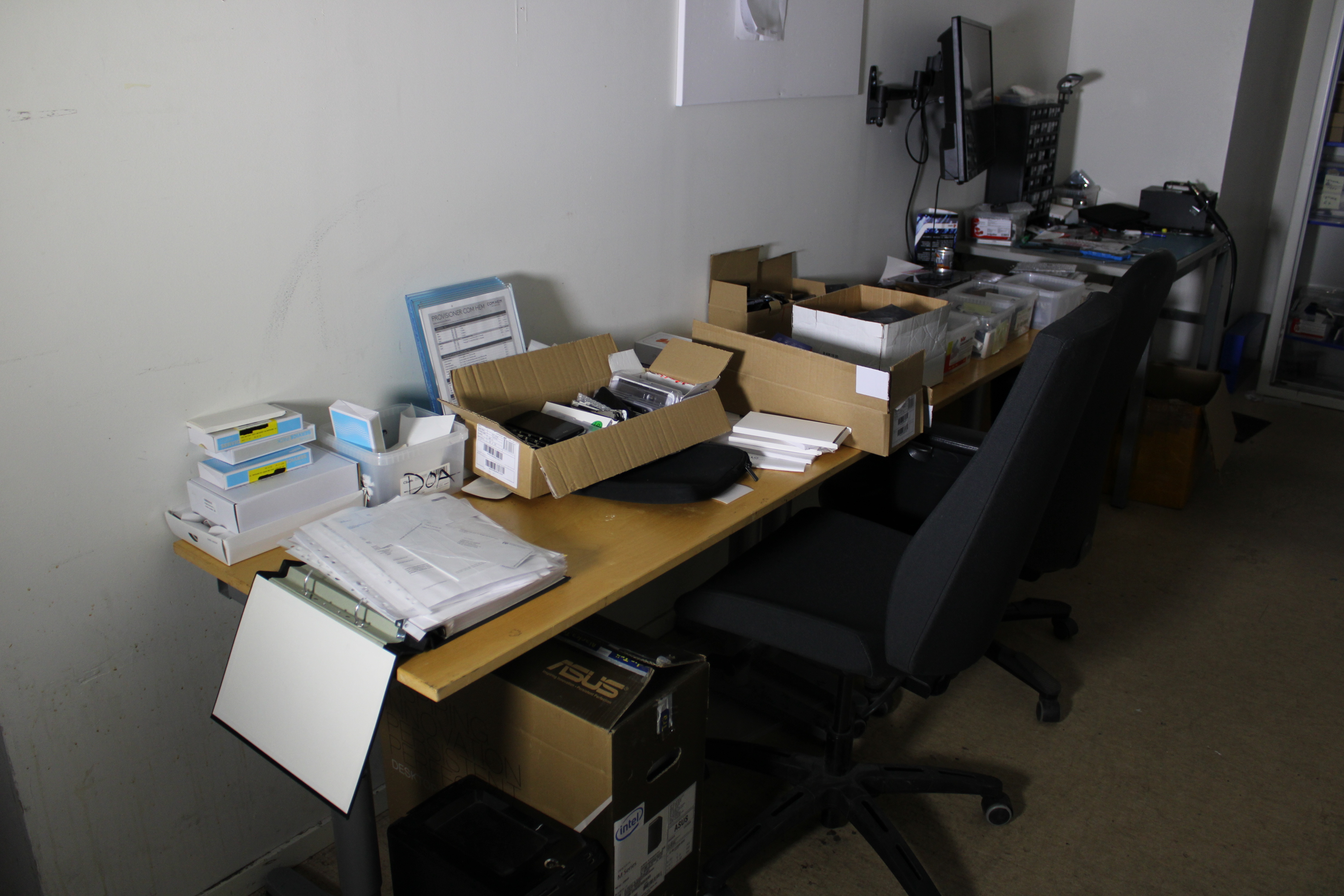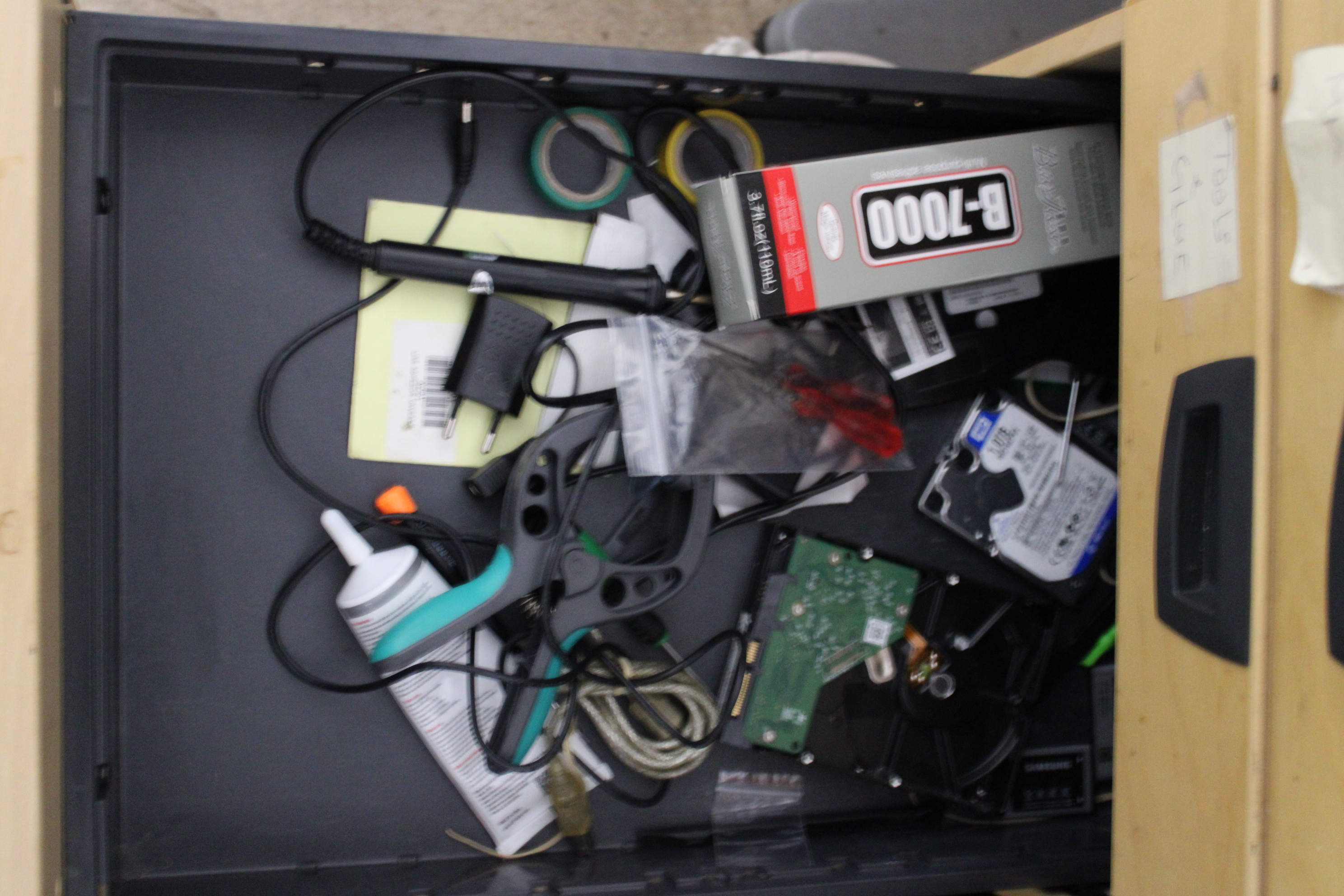 Workplaces with spare parts, tools and electronics