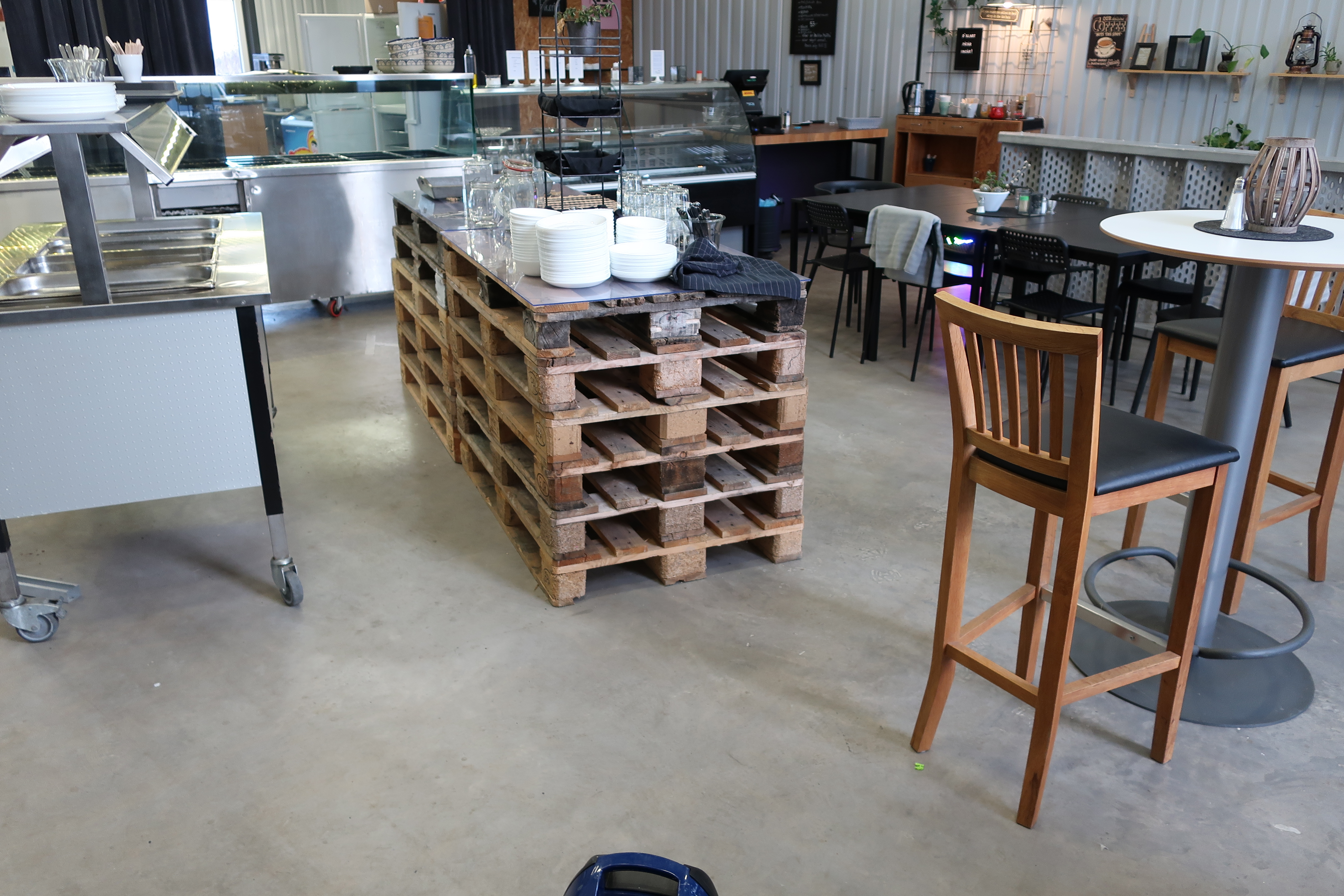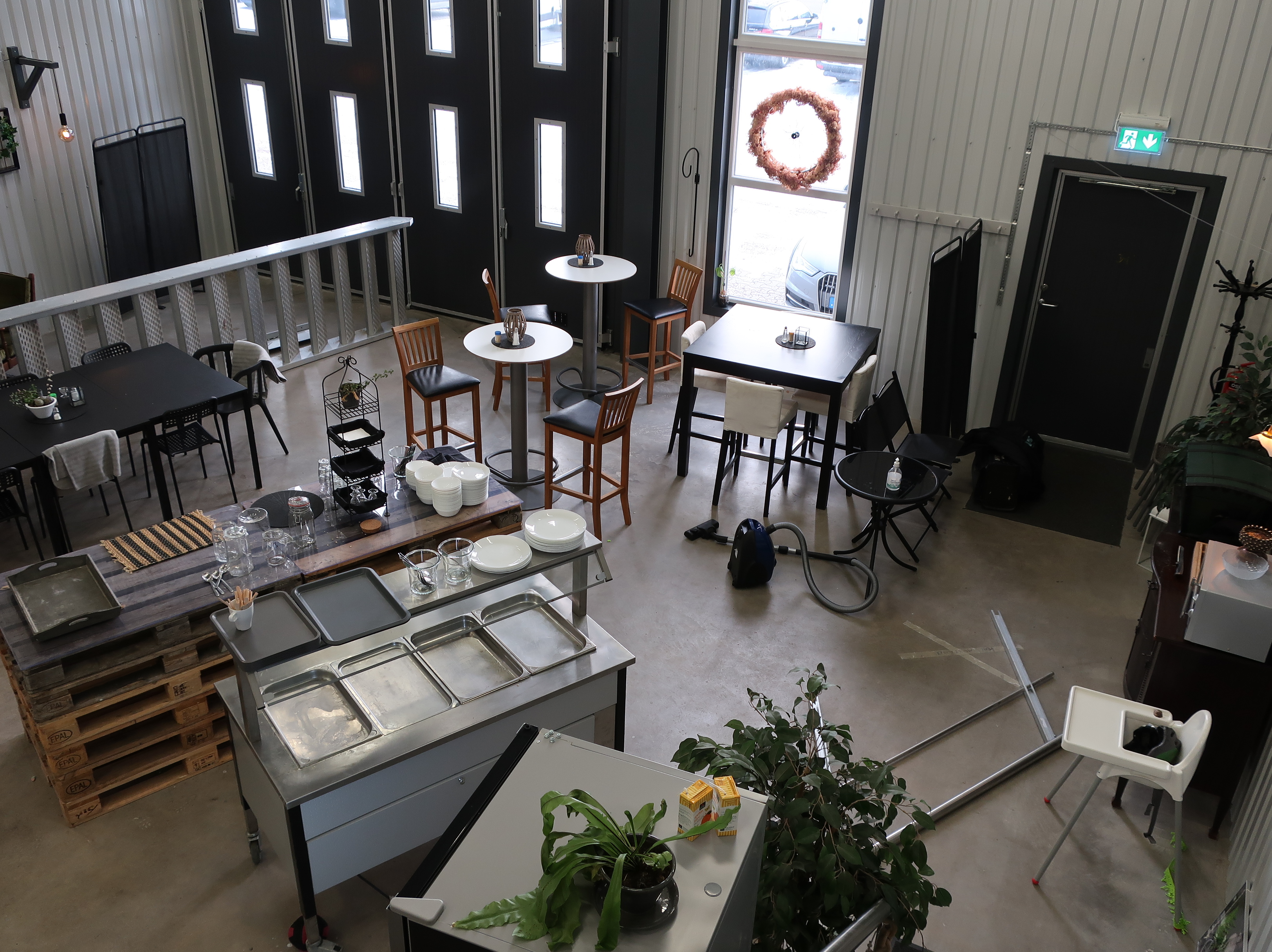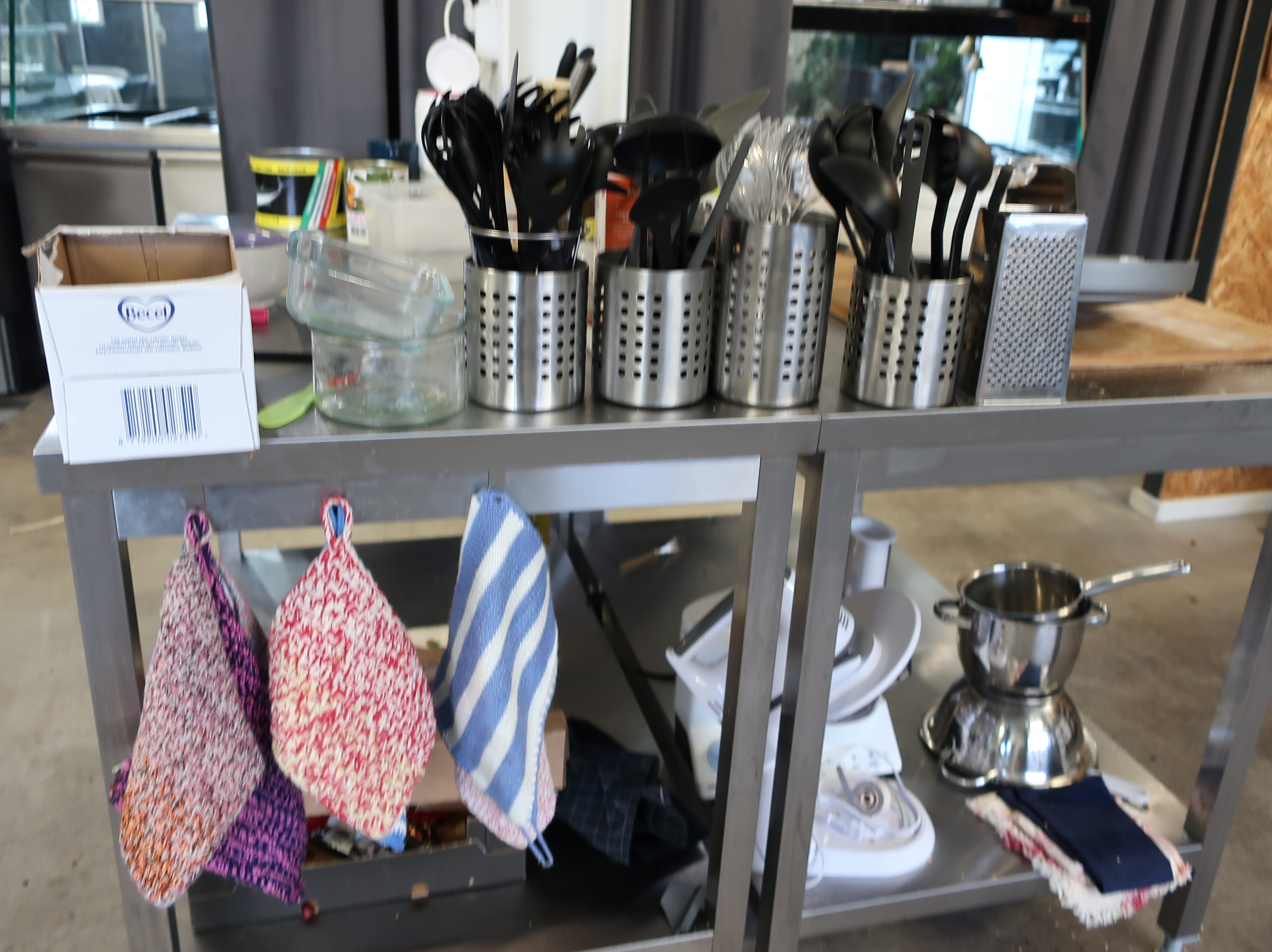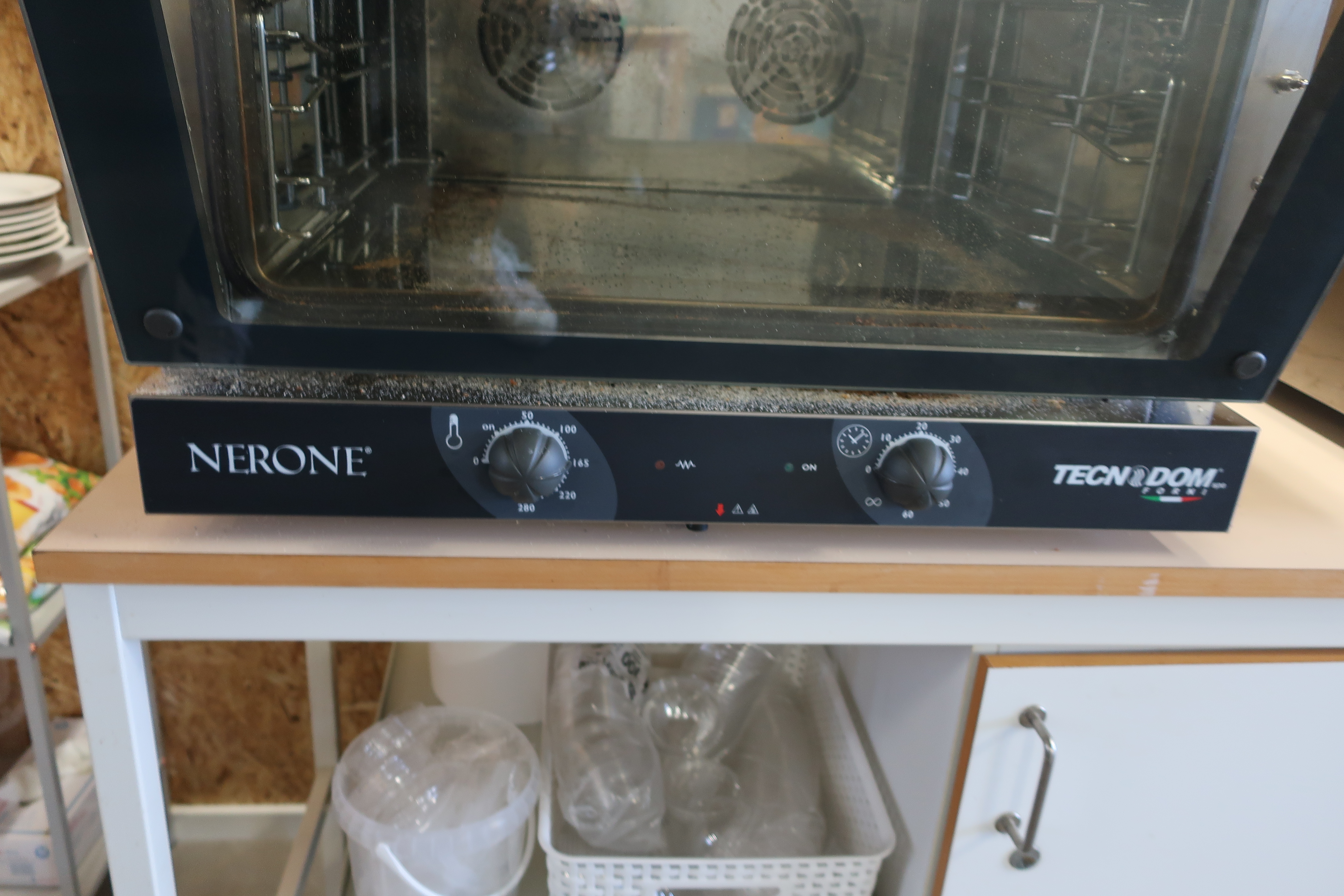 Rancold hot water bath, microwave, plants, 2 pcs Tecnodom K100VVC -2019, Ginox refrigerator with x number of boxes for salad, vegetables etc., 2 pcs Tecnodom FEM04NEGNV ovens -2018 ,, Gram refrigerator, Hendi panini grill, Ikea induction hob, Coffee Queen coffee maker Matsui freezer box, Tefcold freezer box, Electrolux freezer, Samsung refrigerator, various stainless steel benches, phligolite drawers (hot / cold), sofa group.