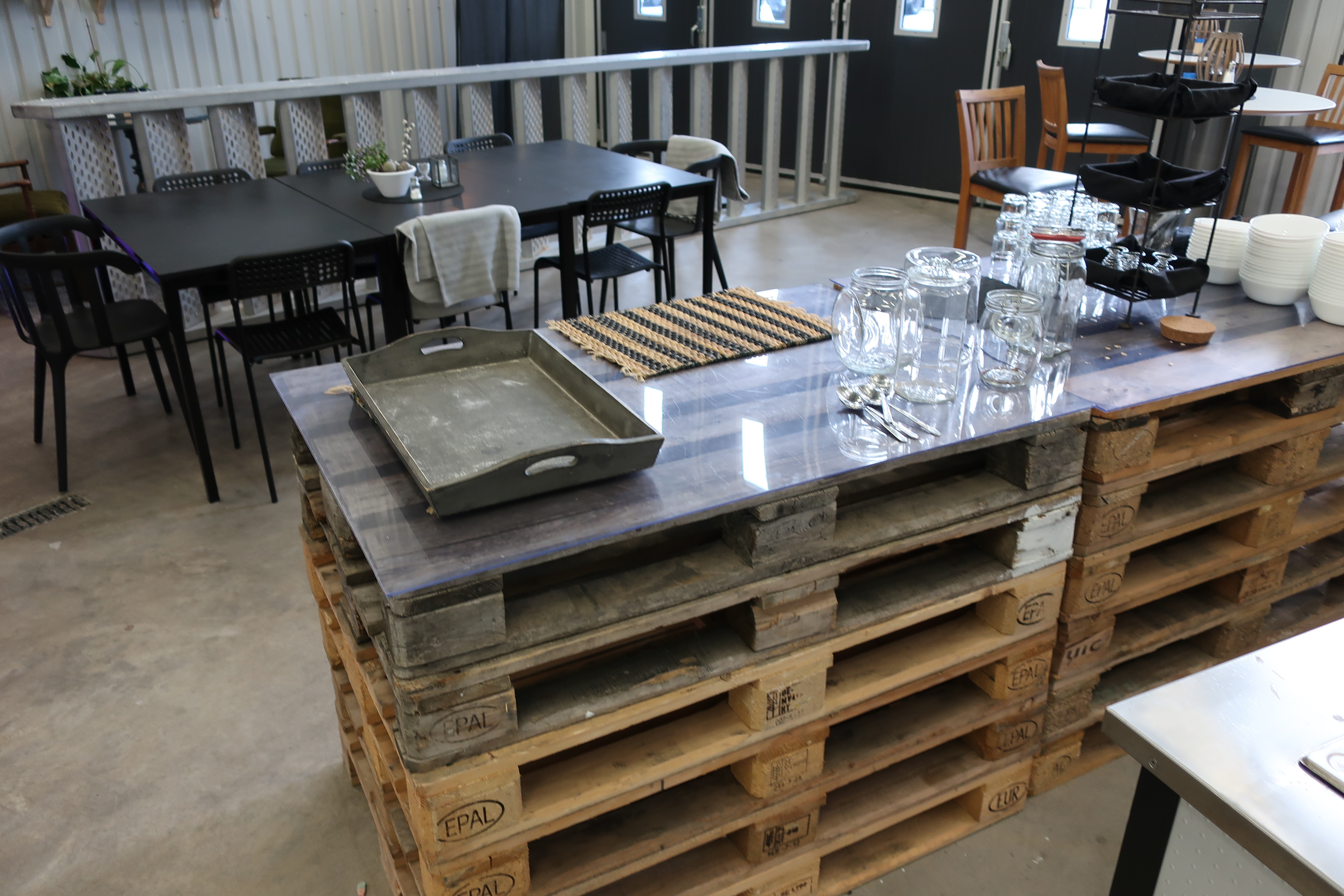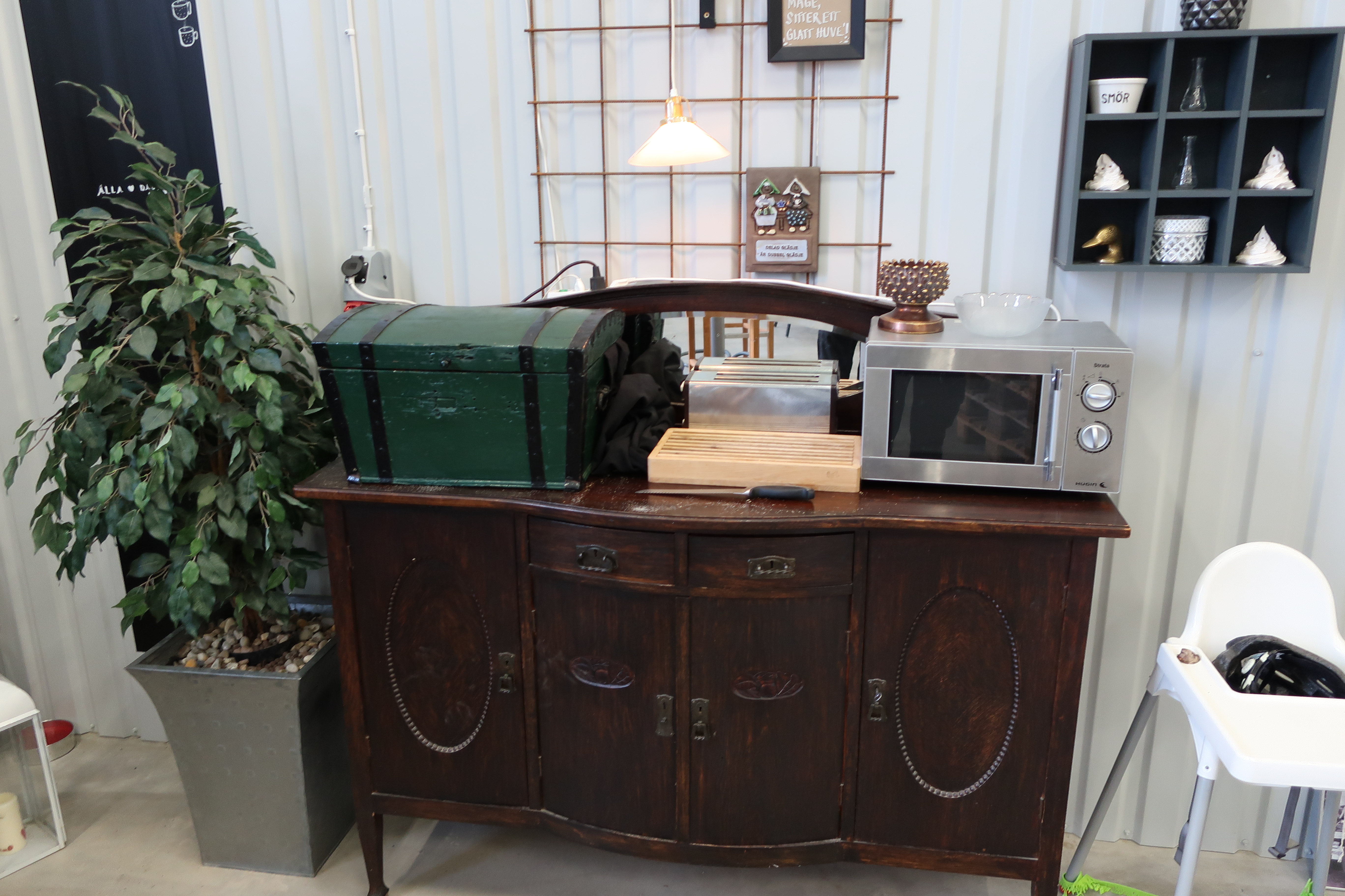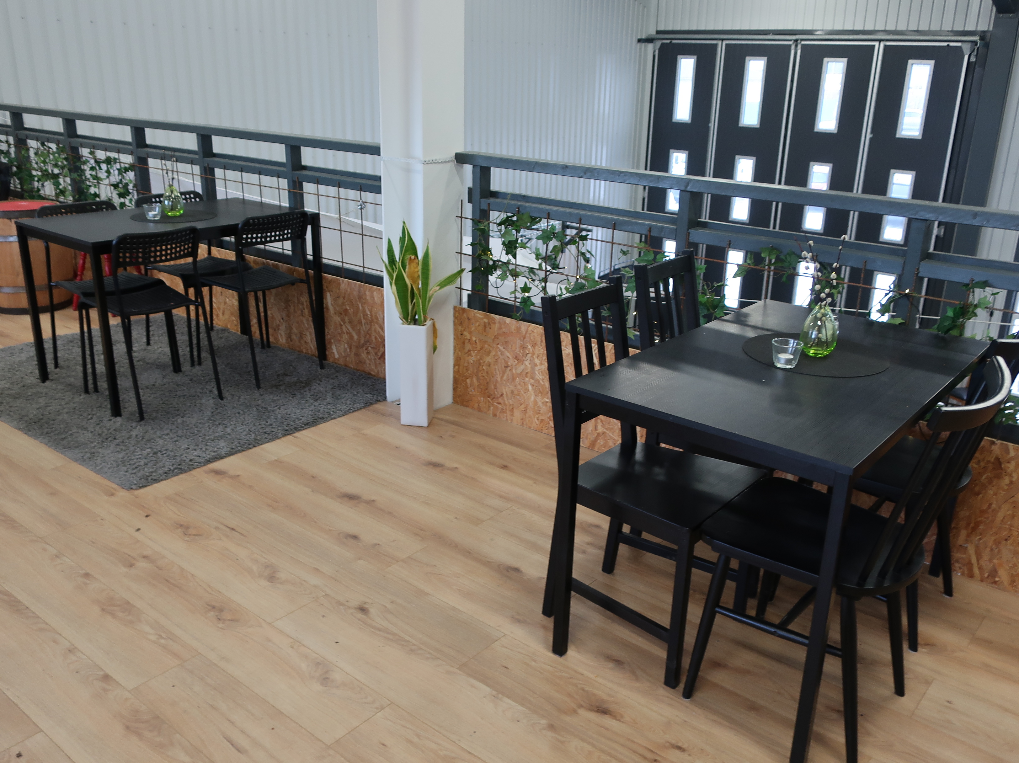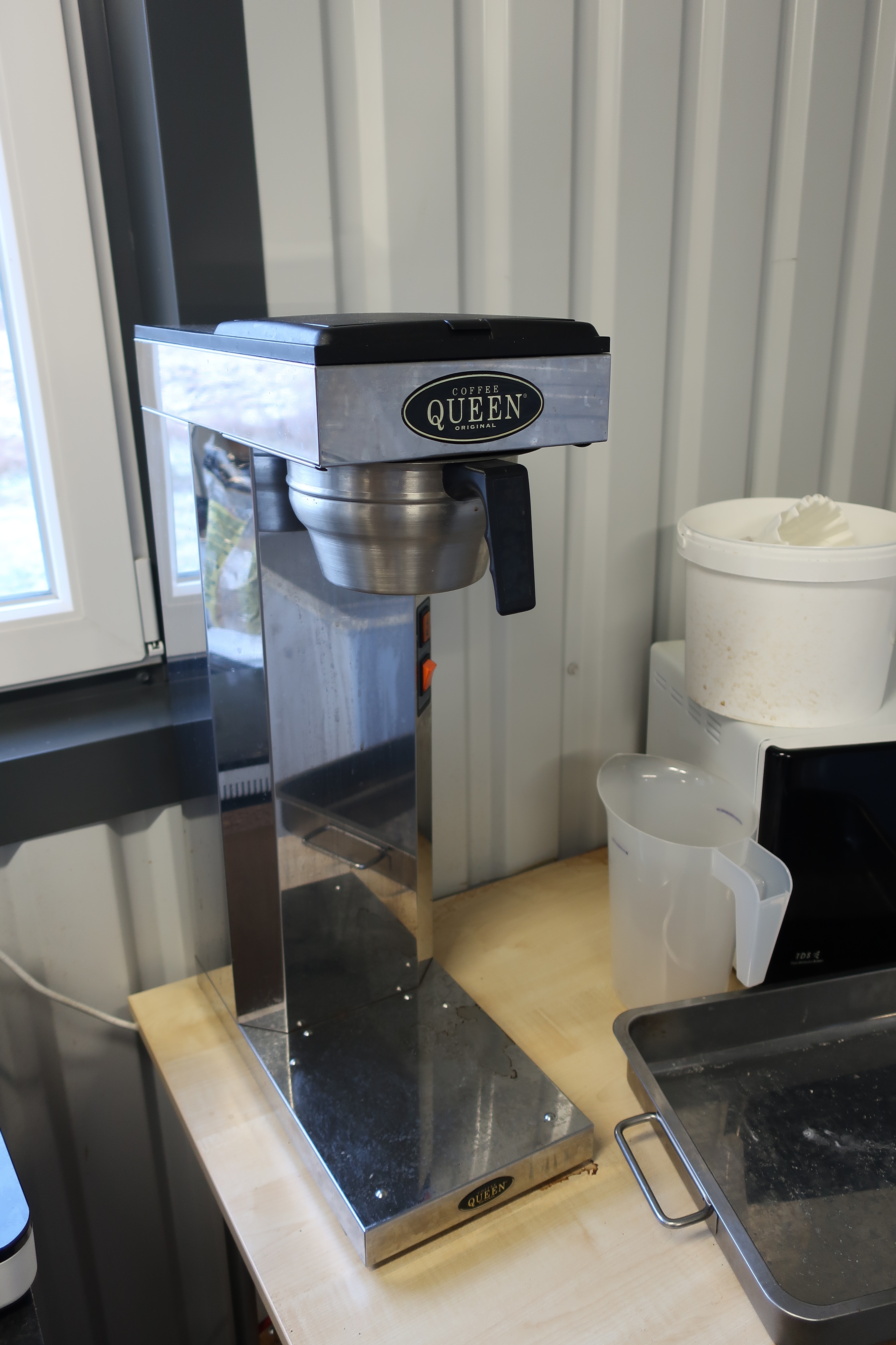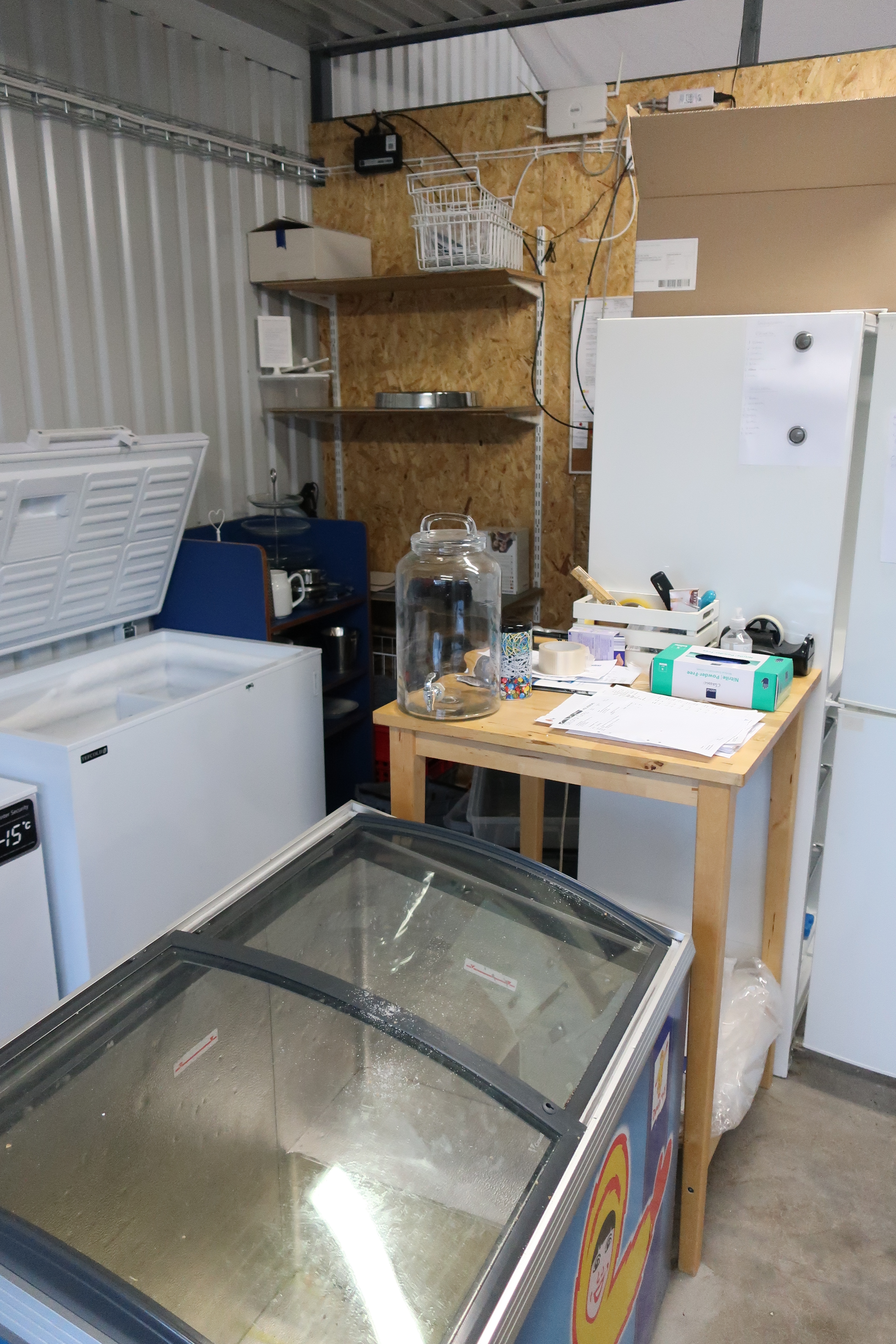 Rancold hot water bath, microwave, plants, 2 pcs Tecnodom K100VVC -2019, Ginox refrigerator with x number of boxes for salad, vegetables etc., 2 pcs Tecnodom FEM04NEGNV ovens -2018 ,, Gram refrigerator, Hendi panini grill, Ikea induction hob, Coffee Queen coffee maker Matsui freezer box, Tefcold freezer box, Electrolux freezer, Samsung refrigerator, various stainless steel benches, phligolite drawers (hot / cold), sofa group.