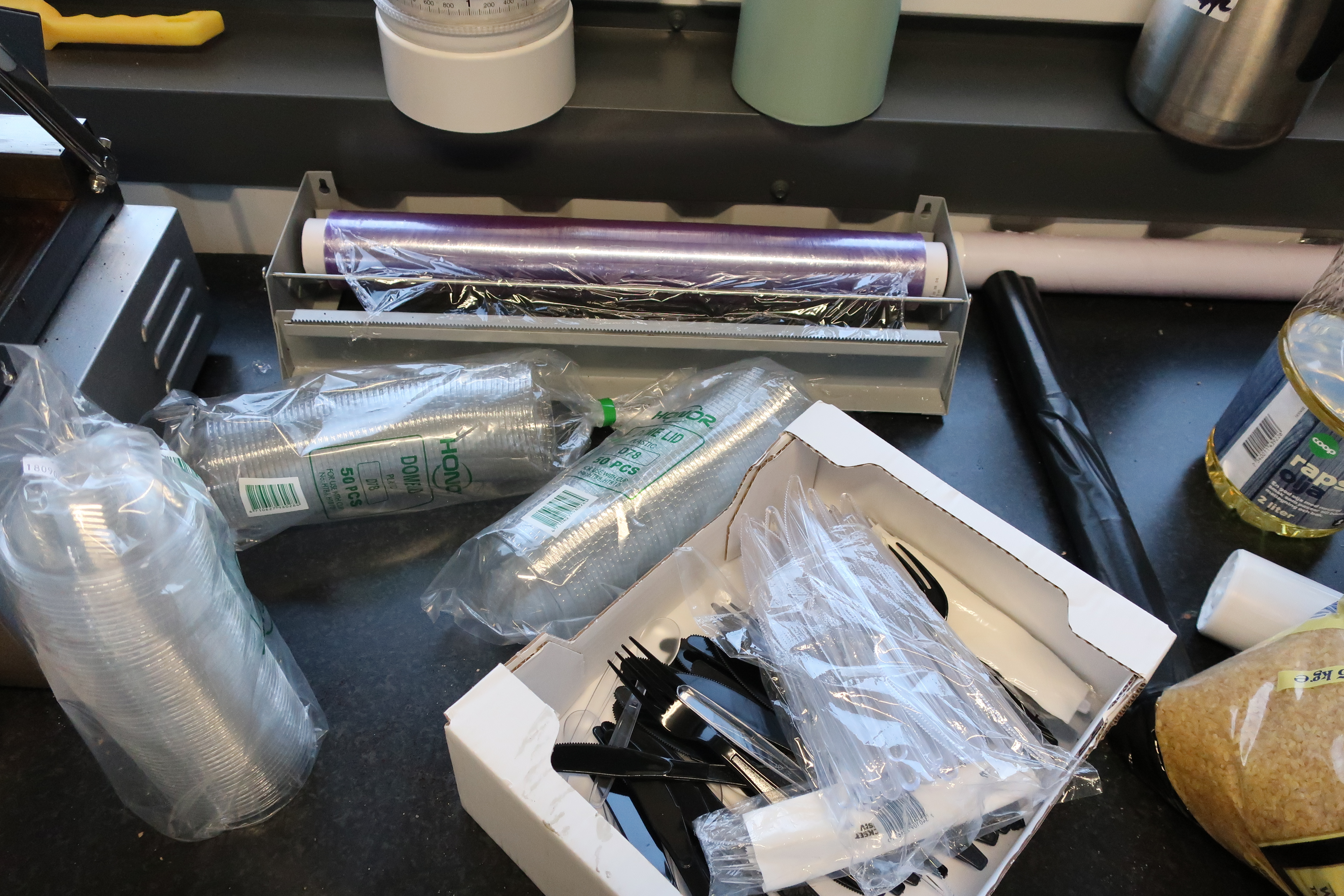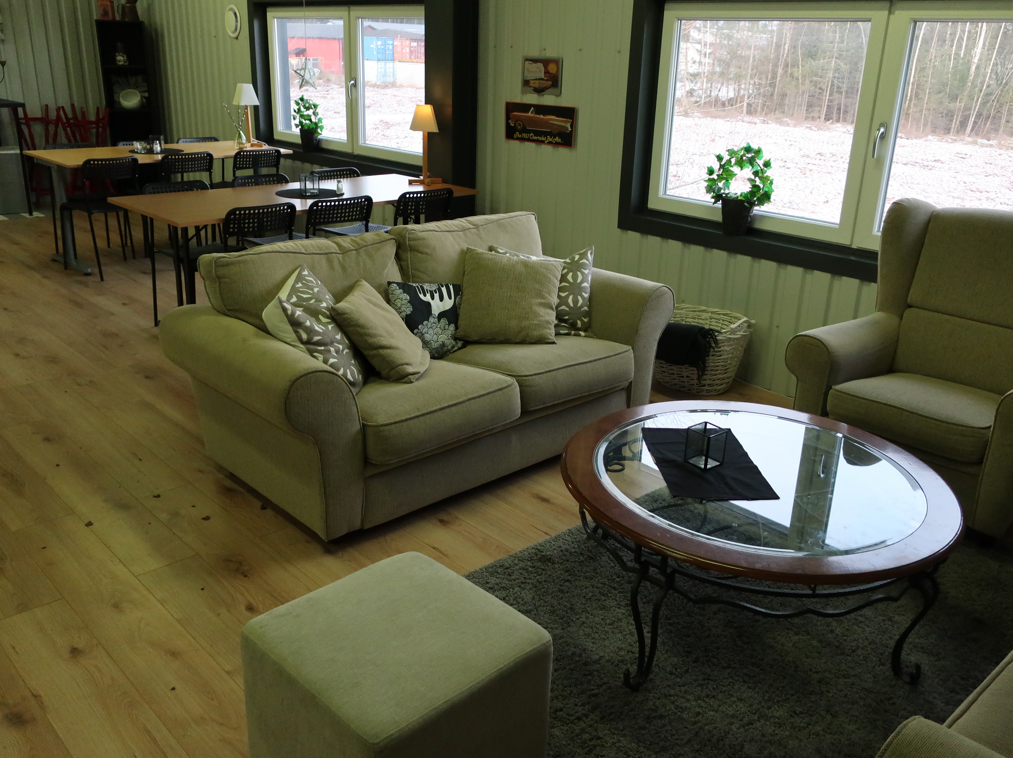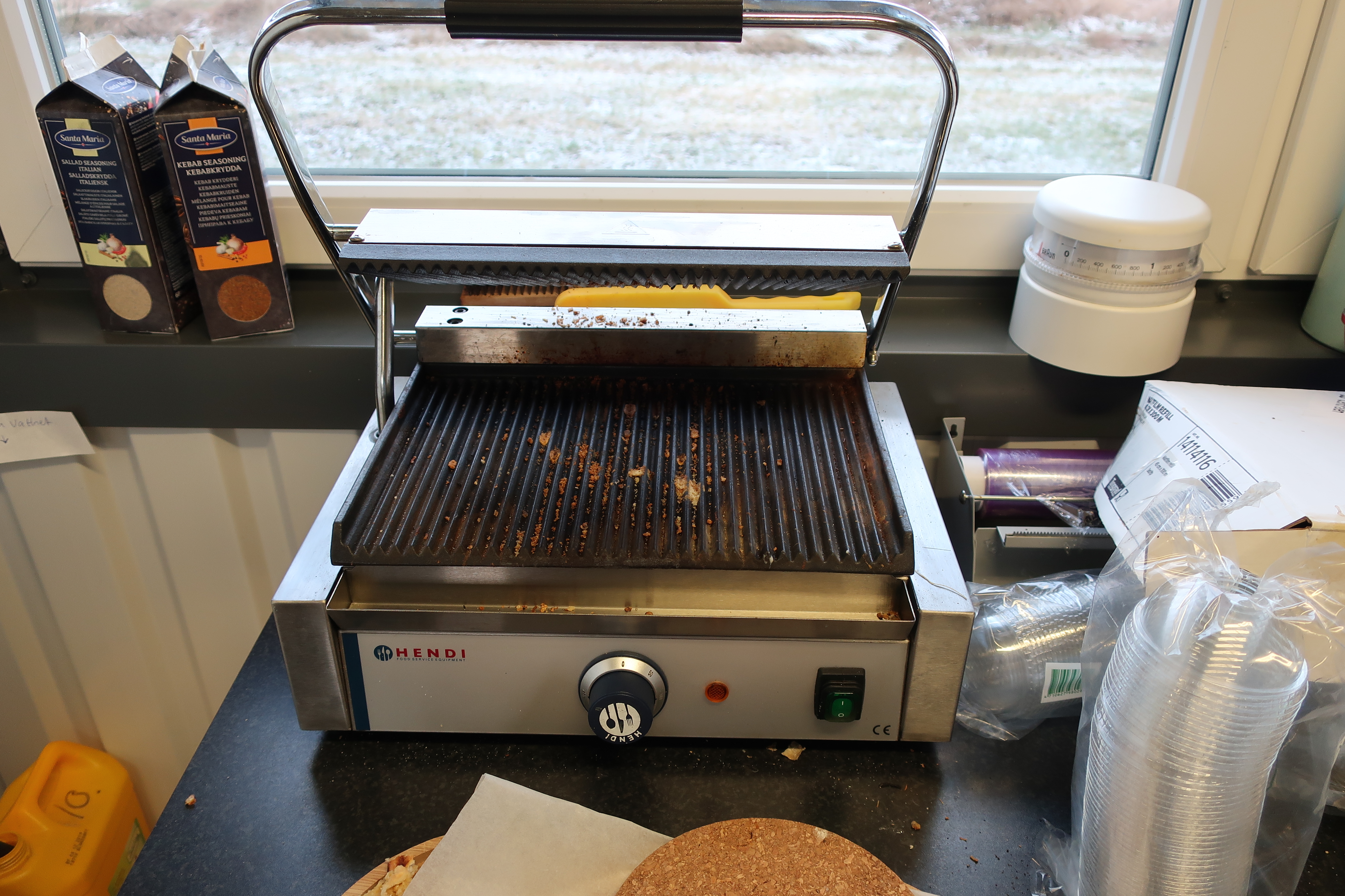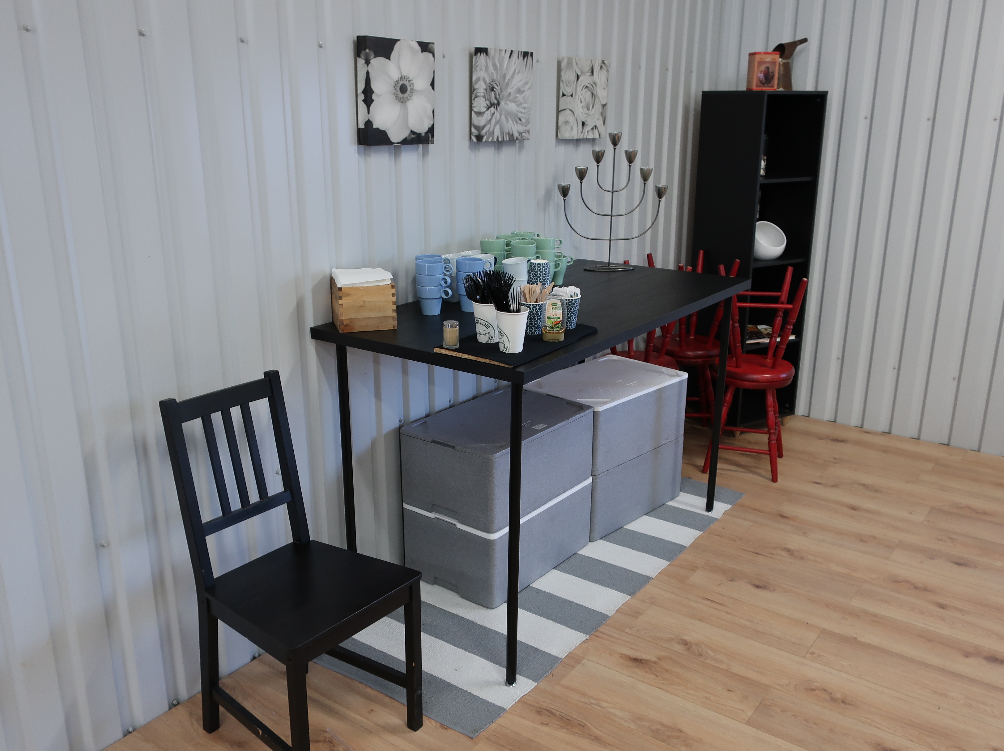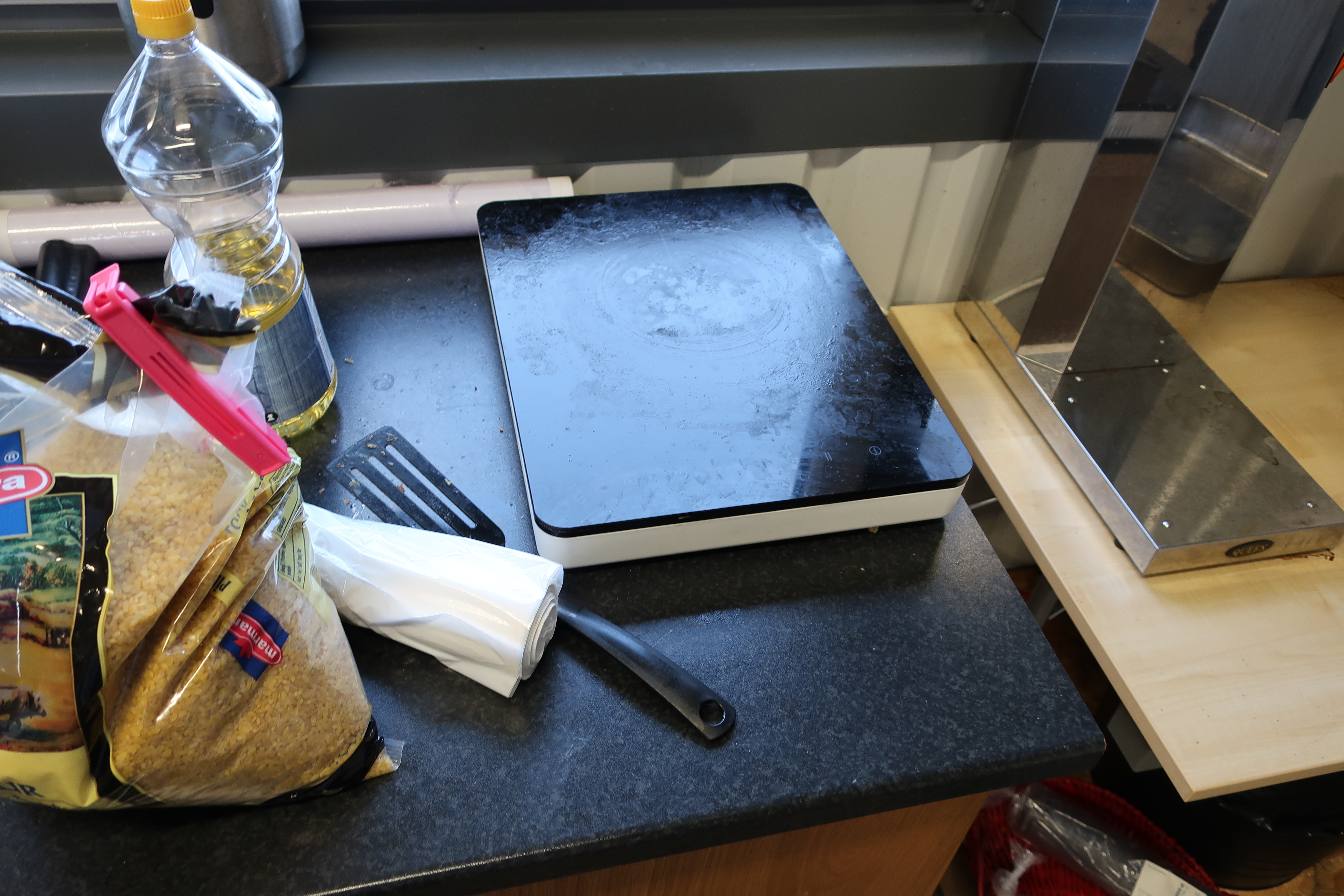 Rancold hot water bath, microwave, plants, 2 pcs Tecnodom K100VVC -2019, Ginox refrigerator with x number of boxes for salad, vegetables etc., 2 pcs Tecnodom FEM04NEGNV ovens -2018 ,, Gram refrigerator, Hendi panini grill, Ikea induction hob, Coffee Queen coffee maker Matsui freezer box, Tefcold freezer box, Electrolux freezer, Samsung refrigerator, various stainless steel benches, phligolite drawers (hot / cold), sofa group.