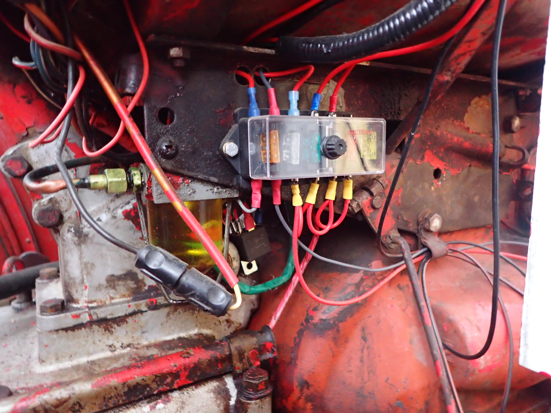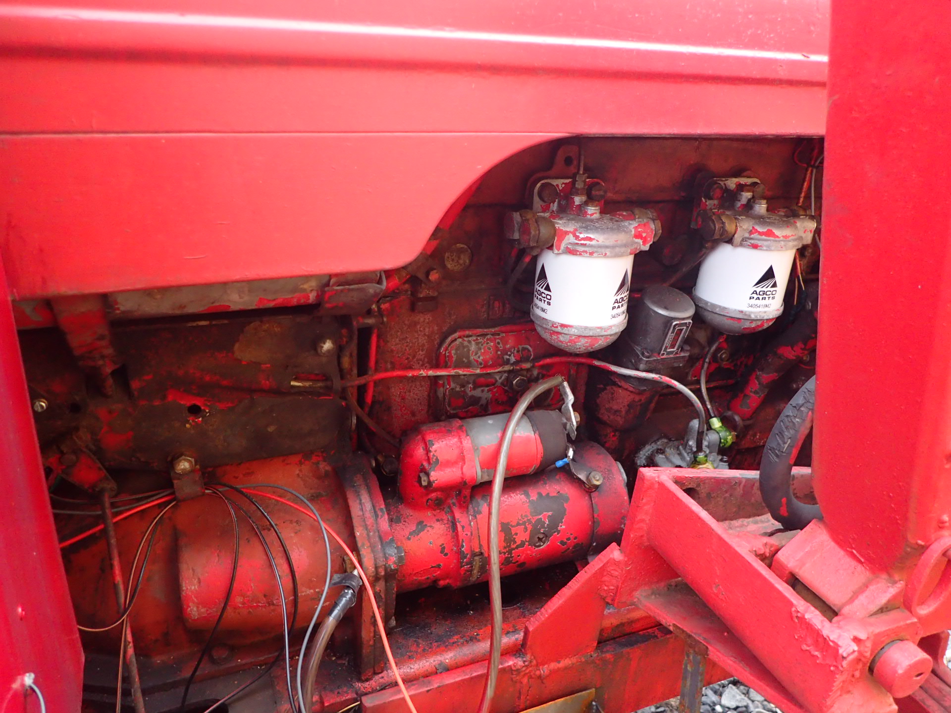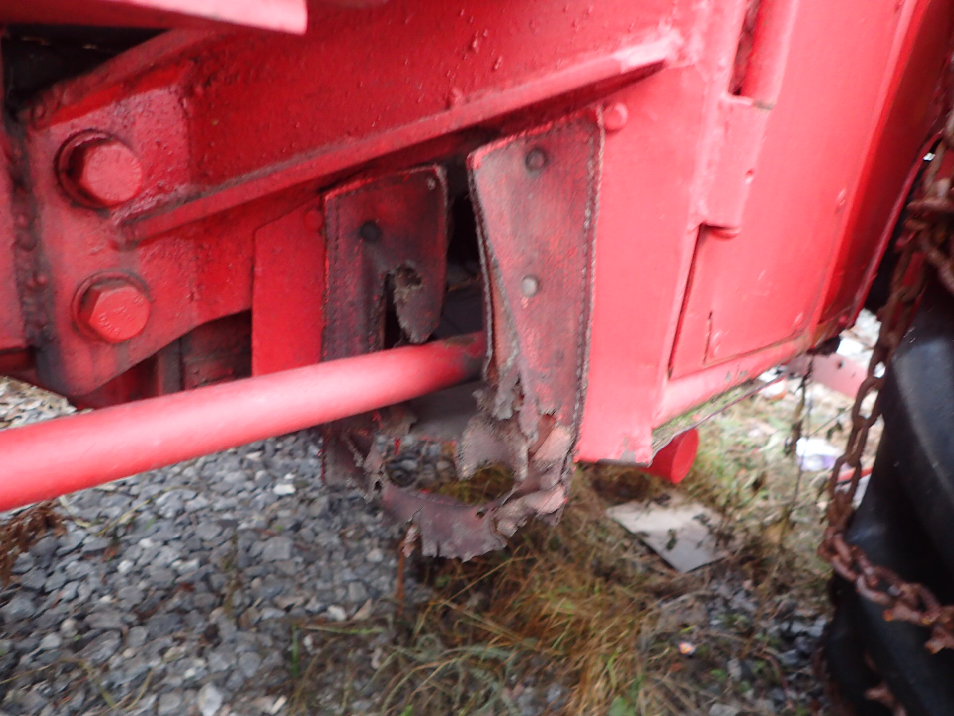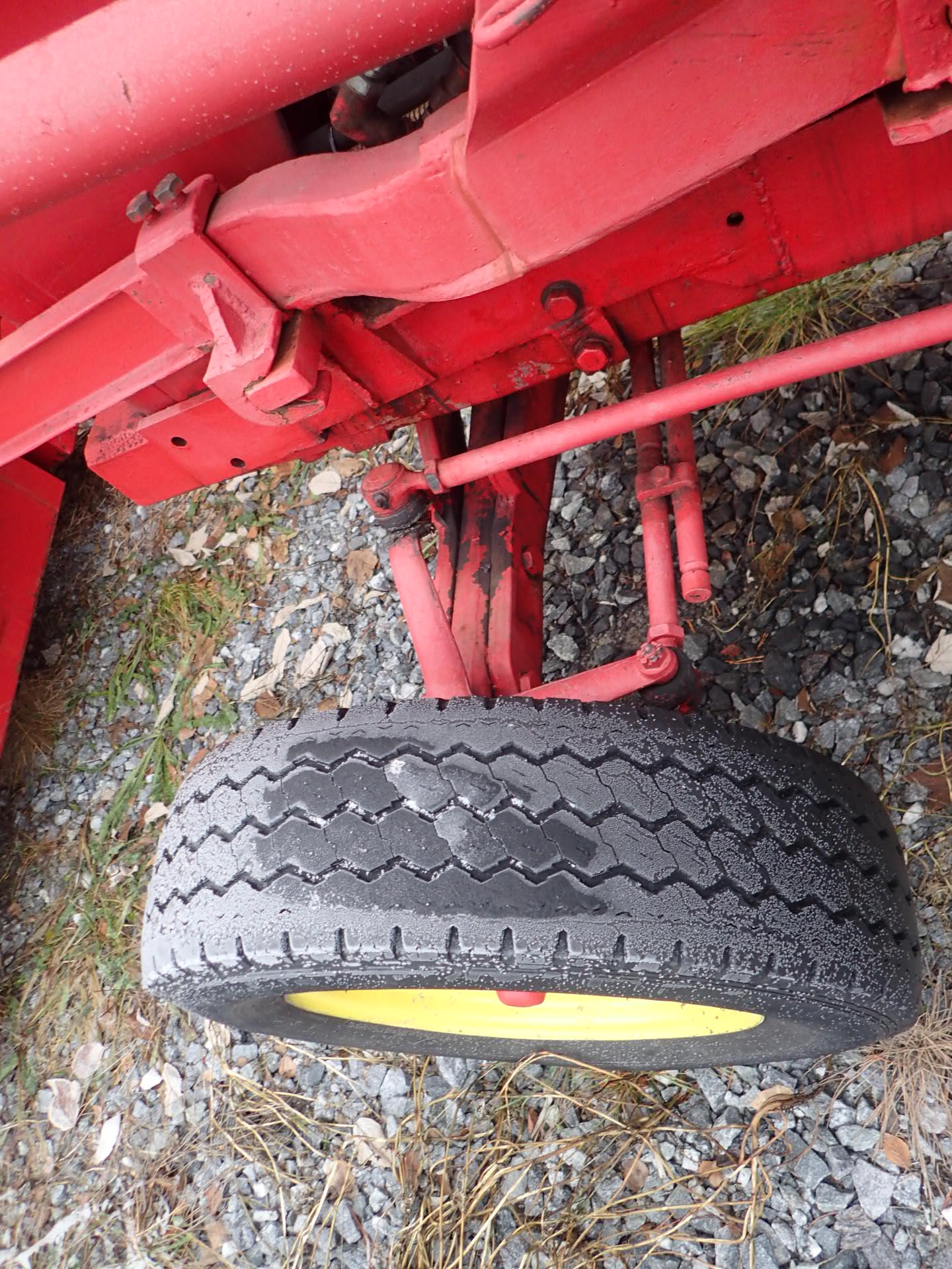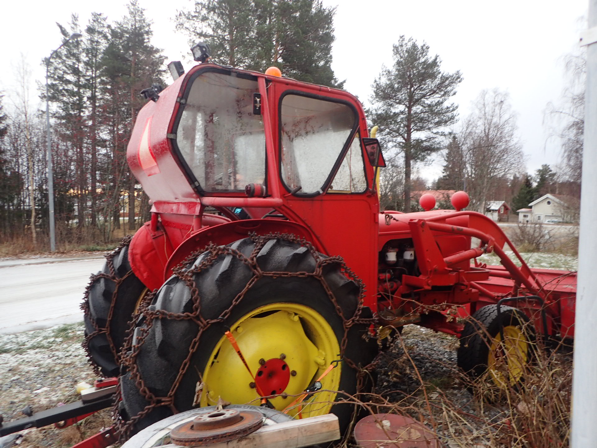 Tractor with front loader that looks okay for its age.