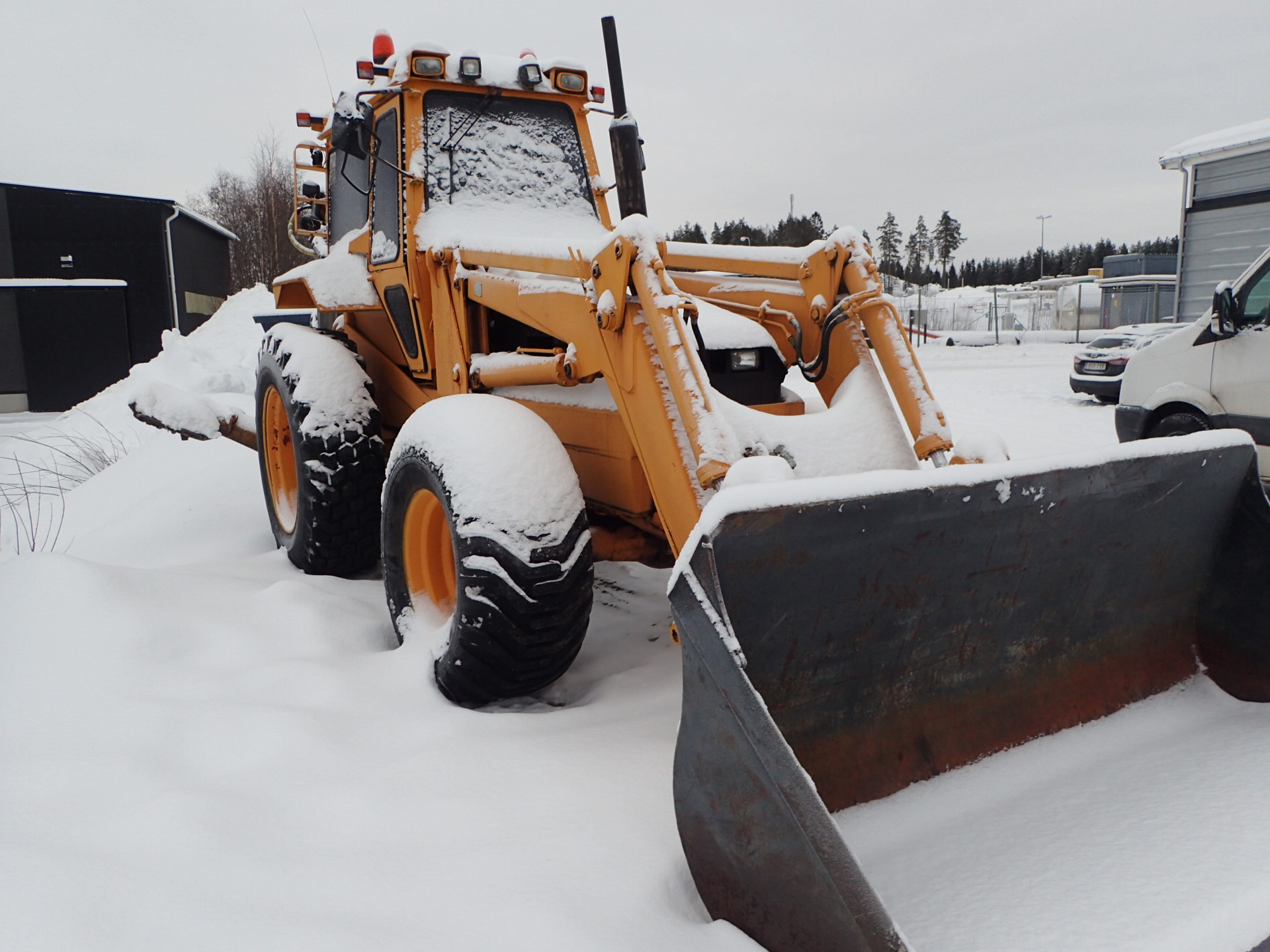 Large BM bracket at the front, 3 functions, Good tires, Support legs that lose pressure when the machine stands for a while, 4 WD, Material bucket at the front, Excavator & VA bucket at the rear, Quick mount manually at the rear.