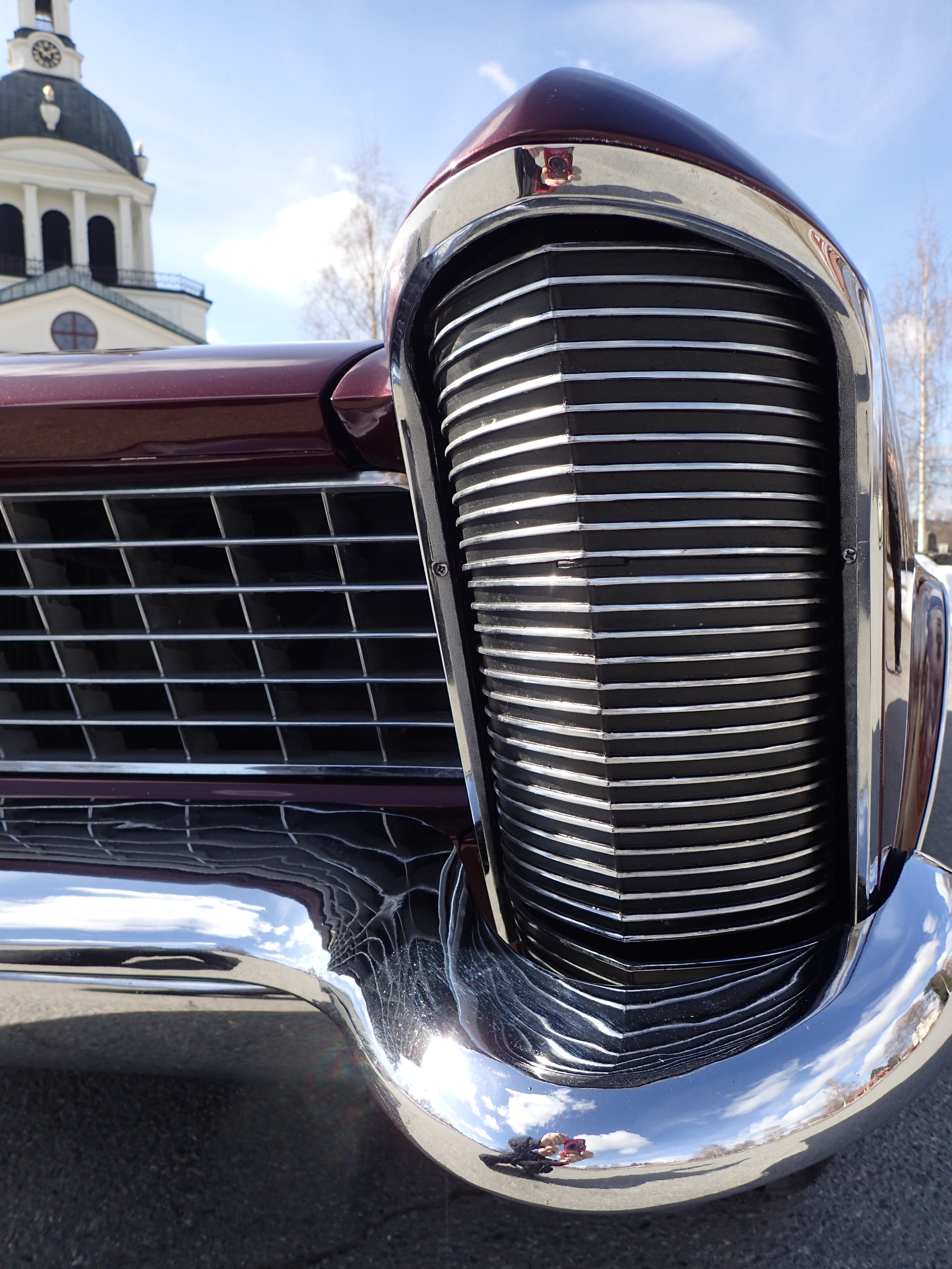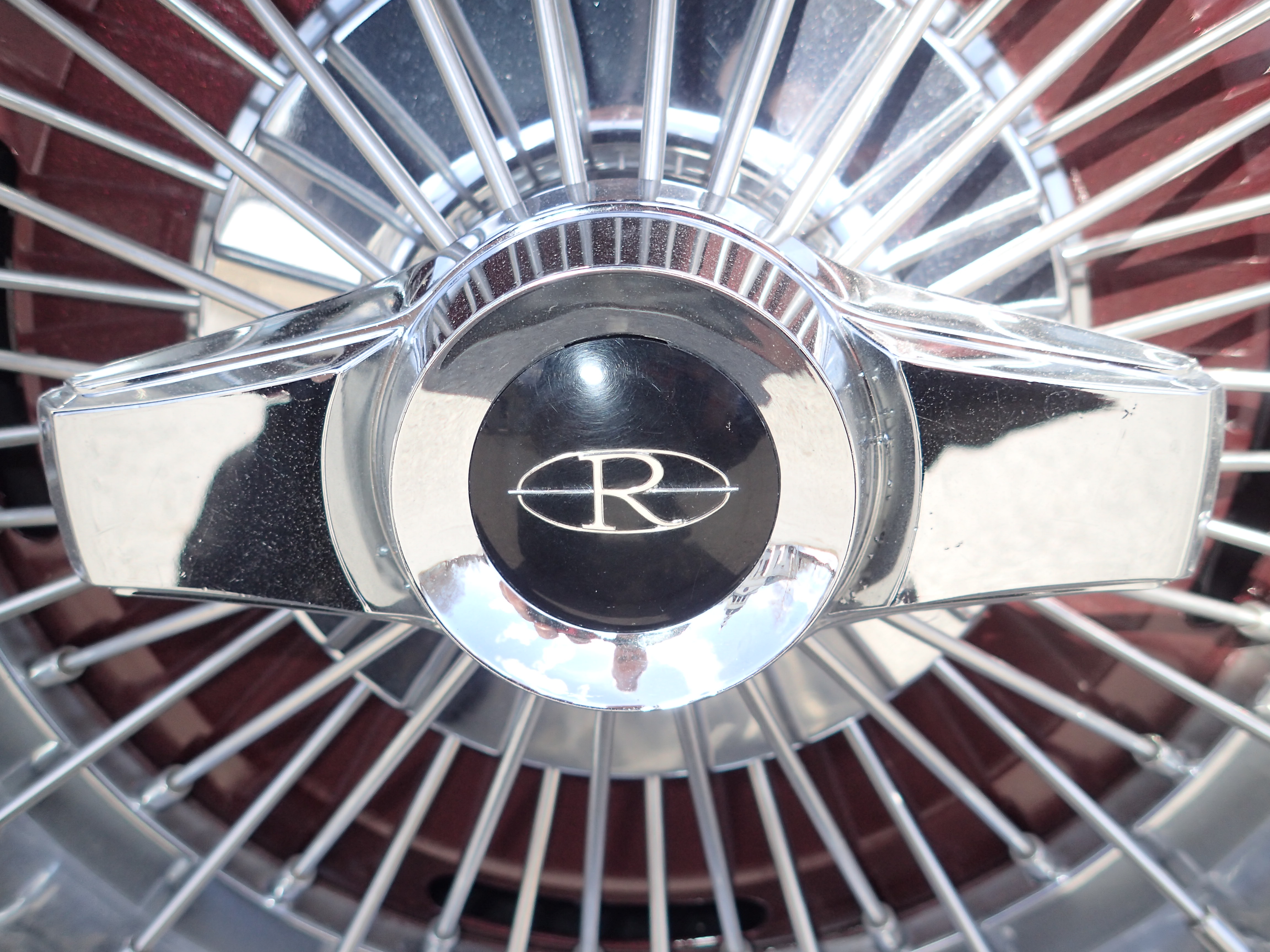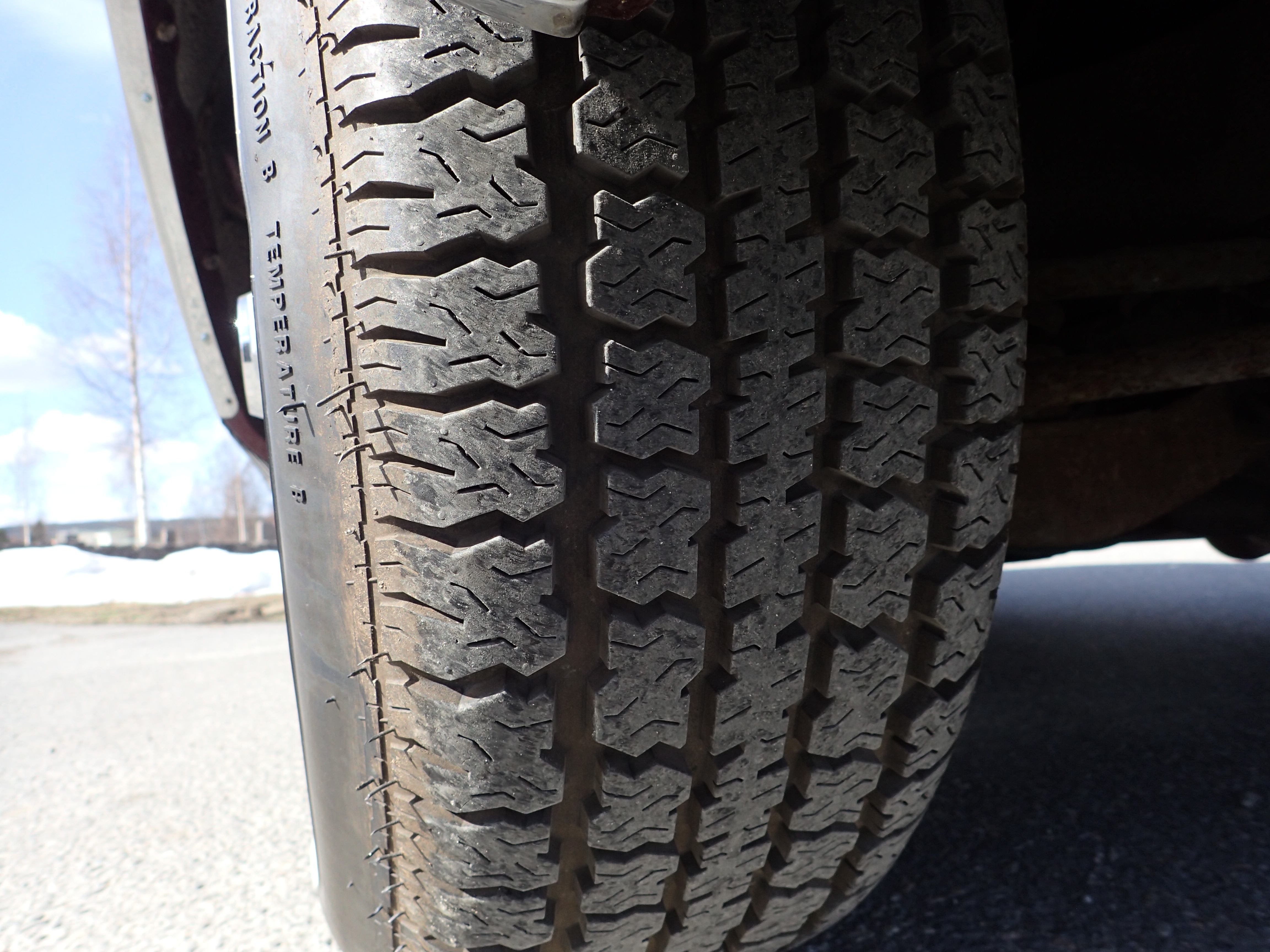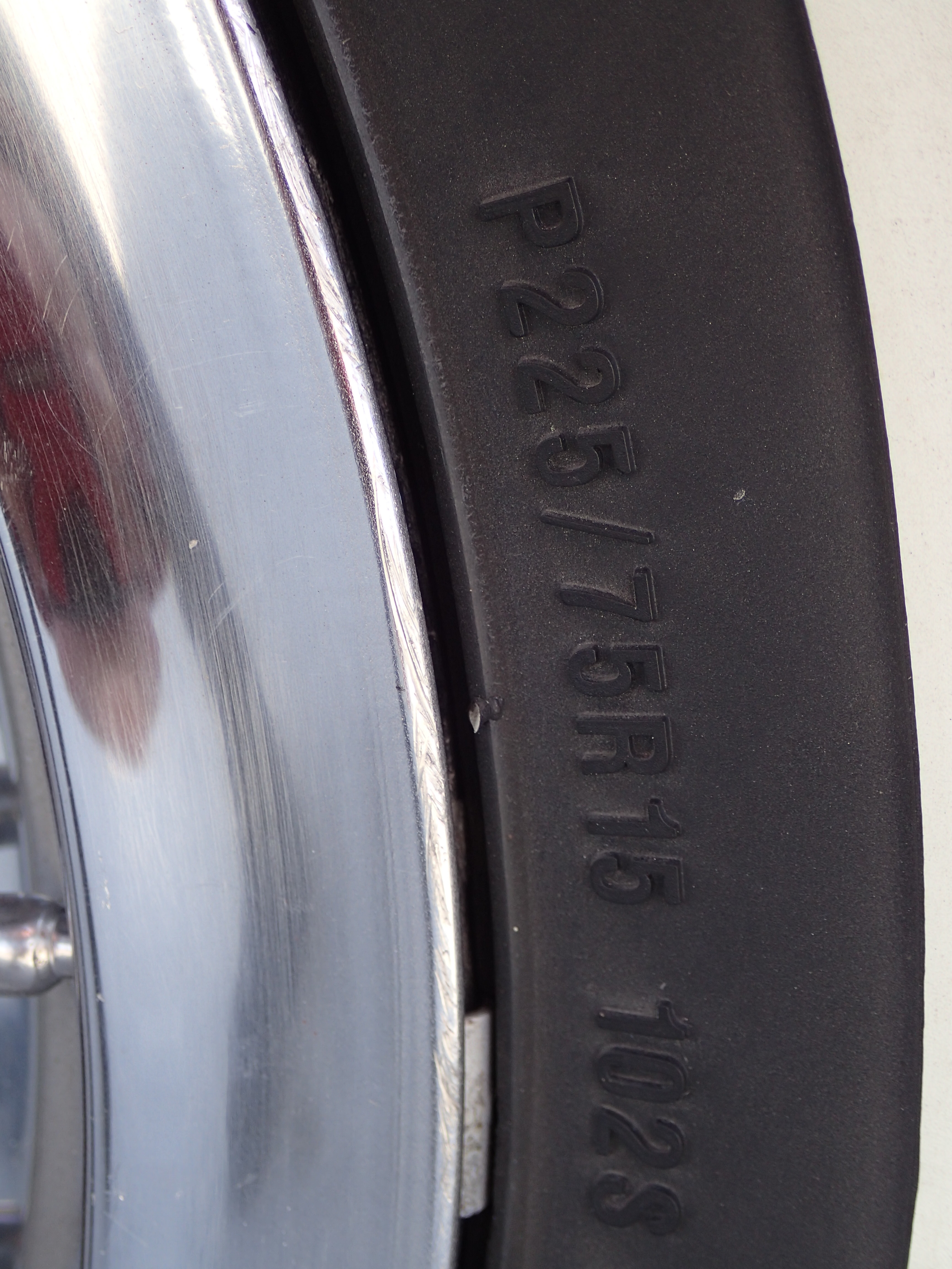 Original tin rims with spoke hubcaps, Coker tires with white side, bought in 2016, max 100 miles with these.