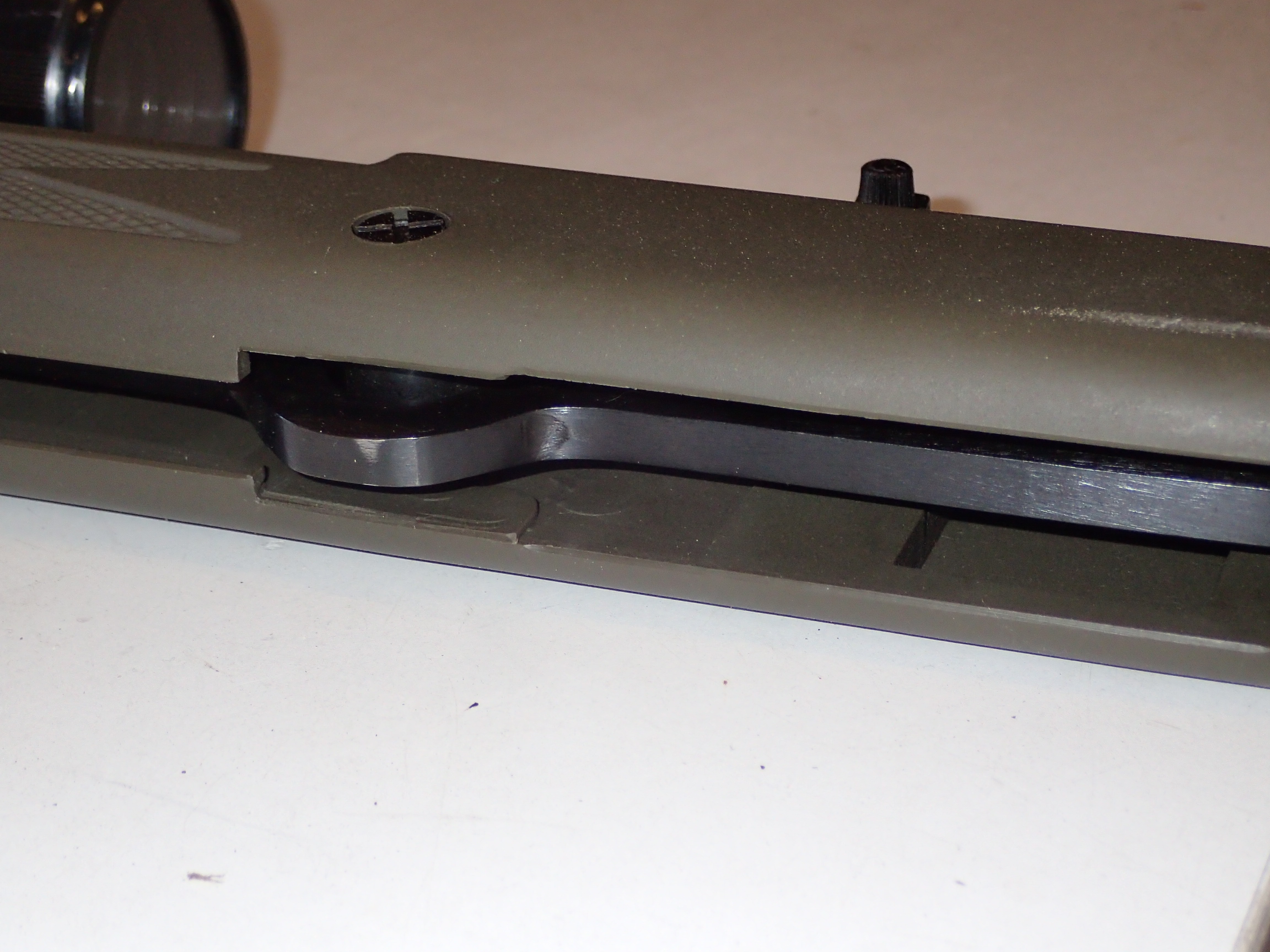 - Range rail and mounted scope stop.