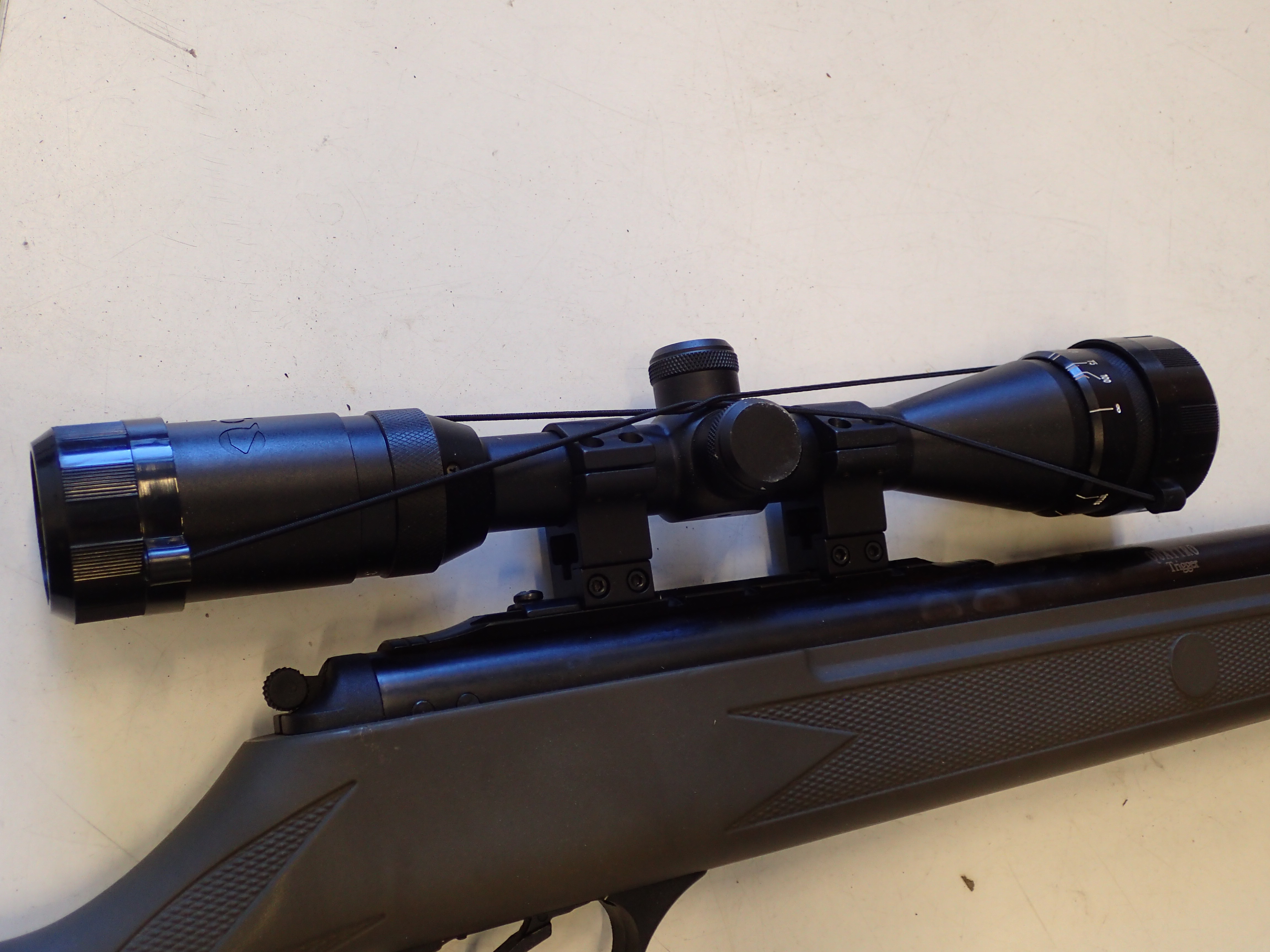 The rifle also has a binocular sight. Brand Gamo & magnification unknown.