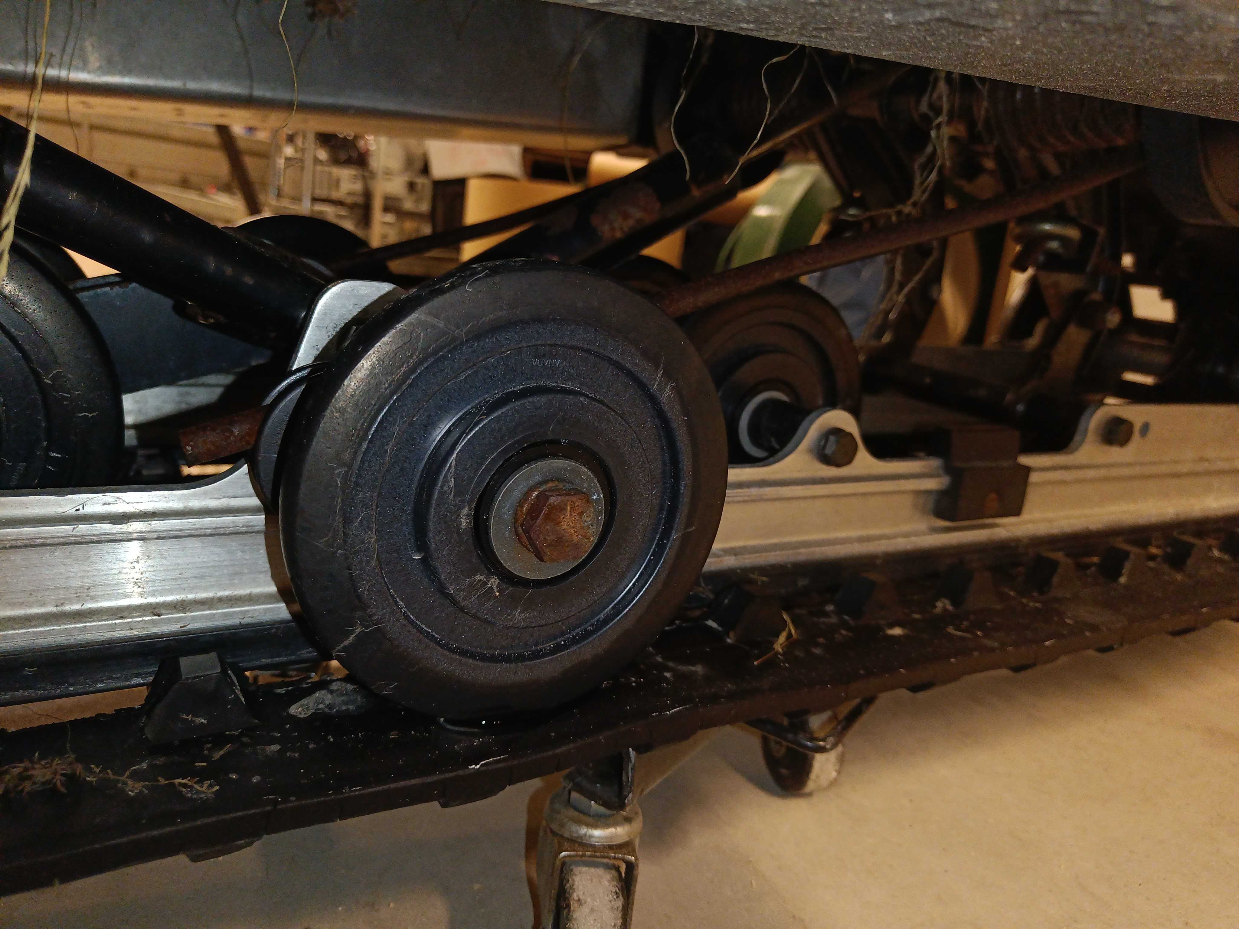 Carpet in worn condition.