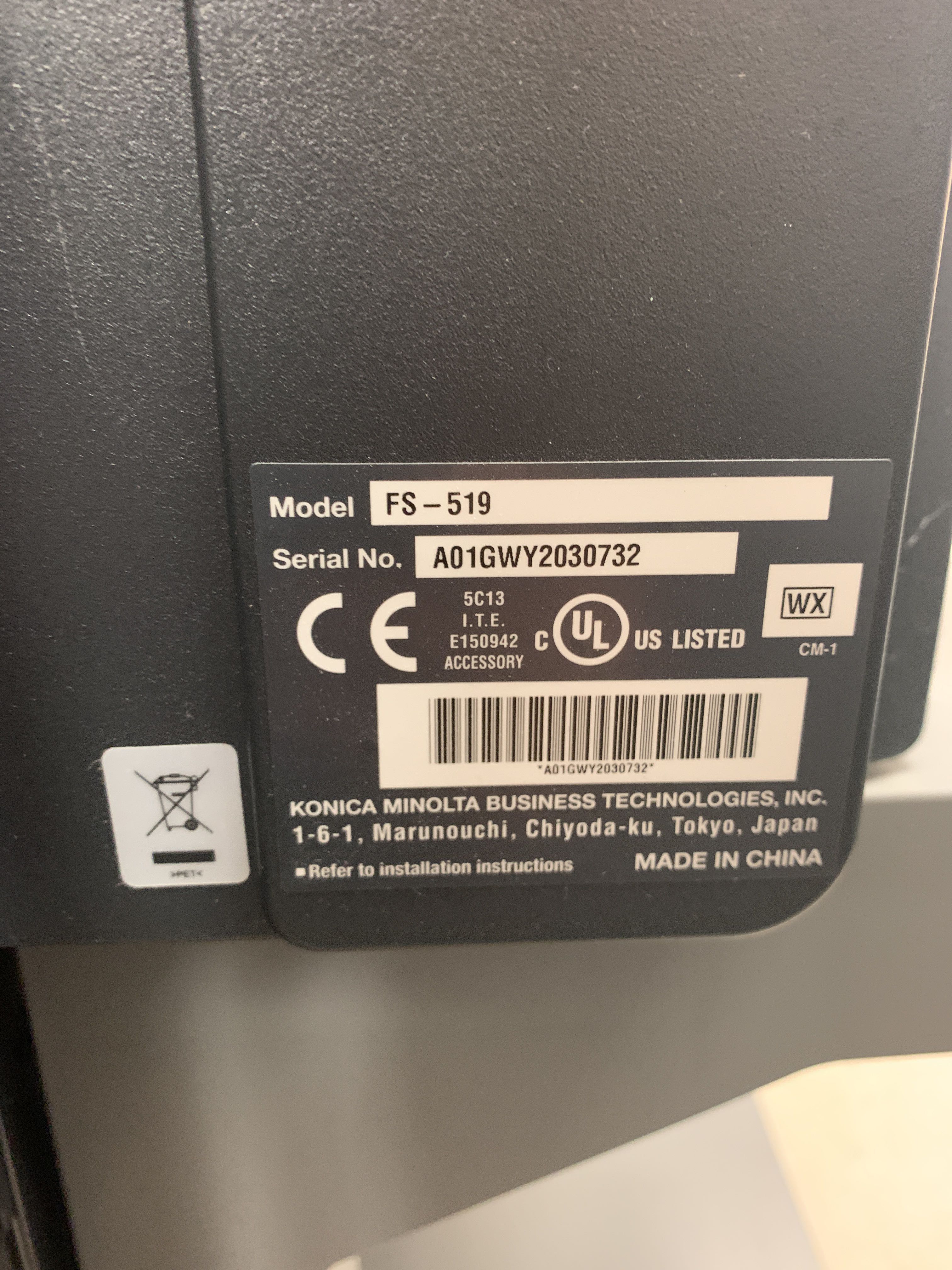 With finisher with stapling, FS-519.
