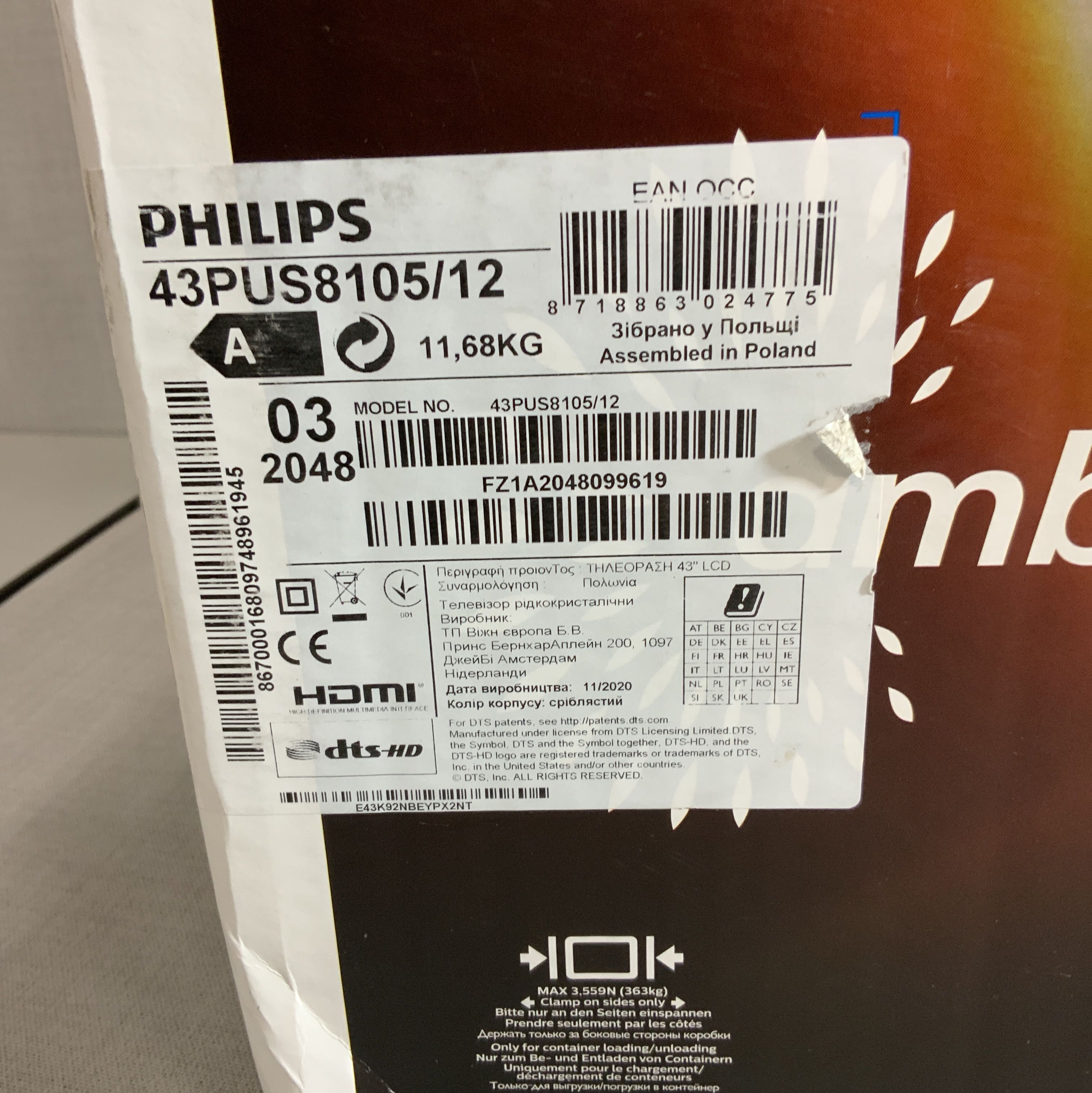 Manufacturer Part No: 43PUS8105 / 12