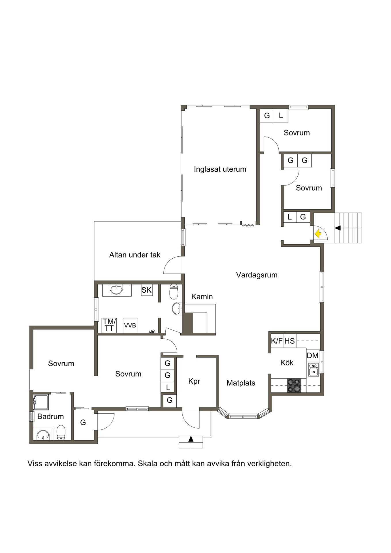 Rooms: a total of 5 rooms divided into 3 bedrooms