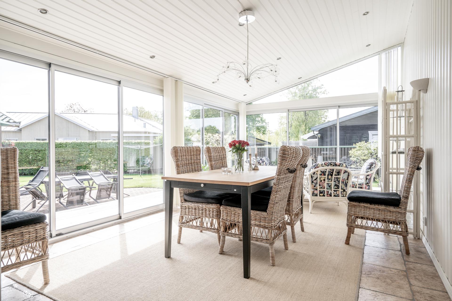 Winter furniture glazed conservatory with underfloor heating and sliding doors.