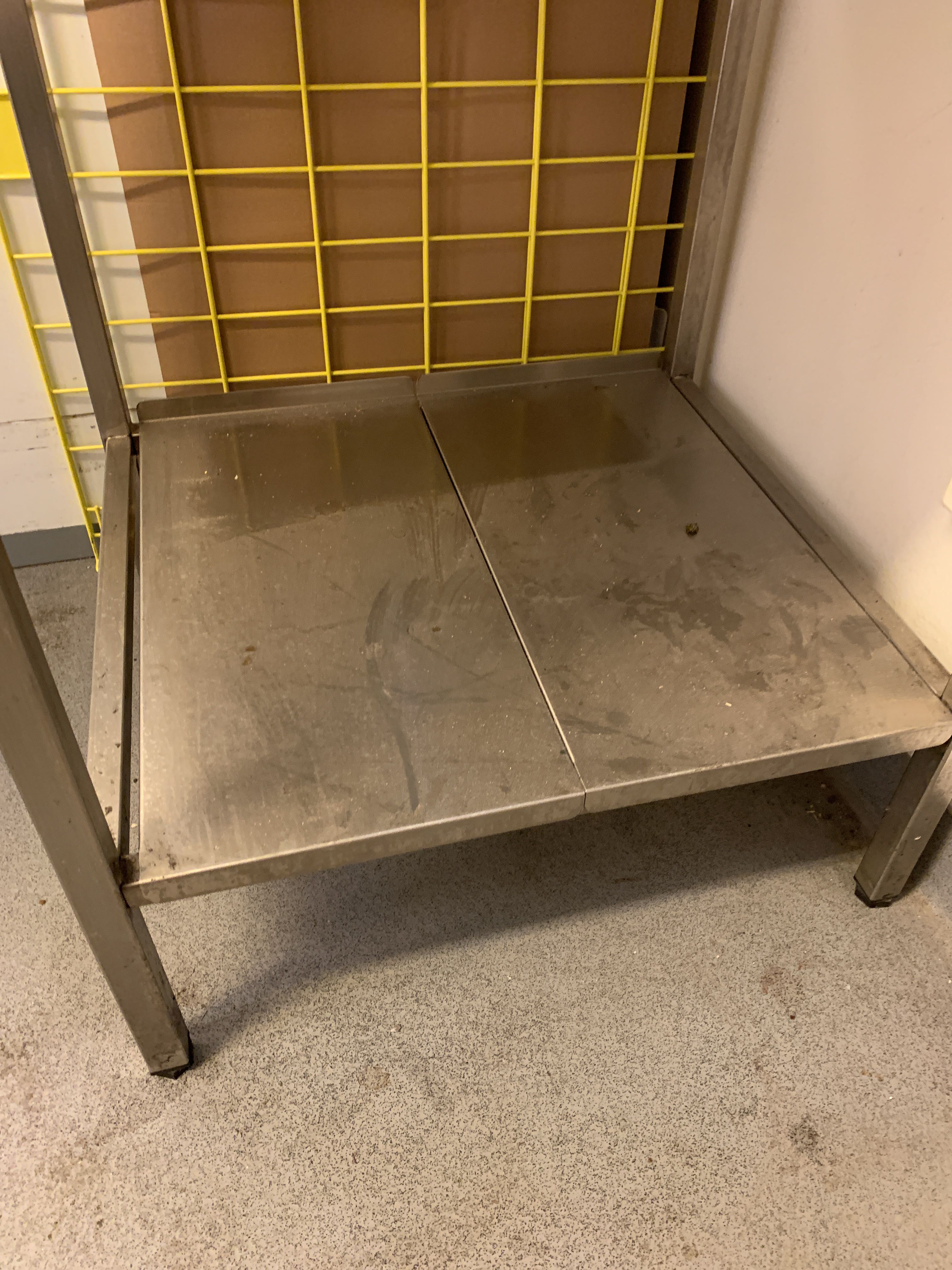Relief table in stainless steel with lower shelf.