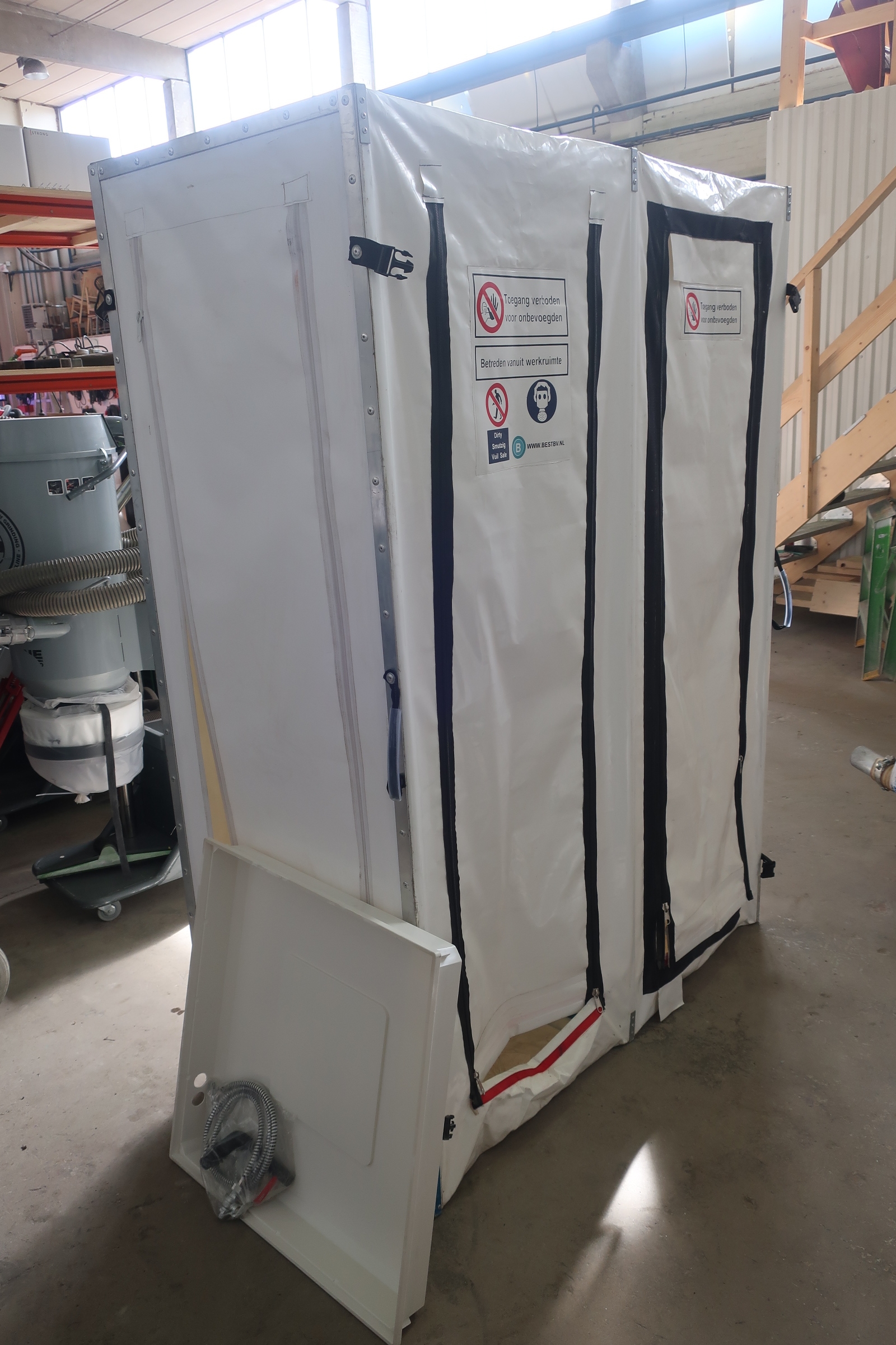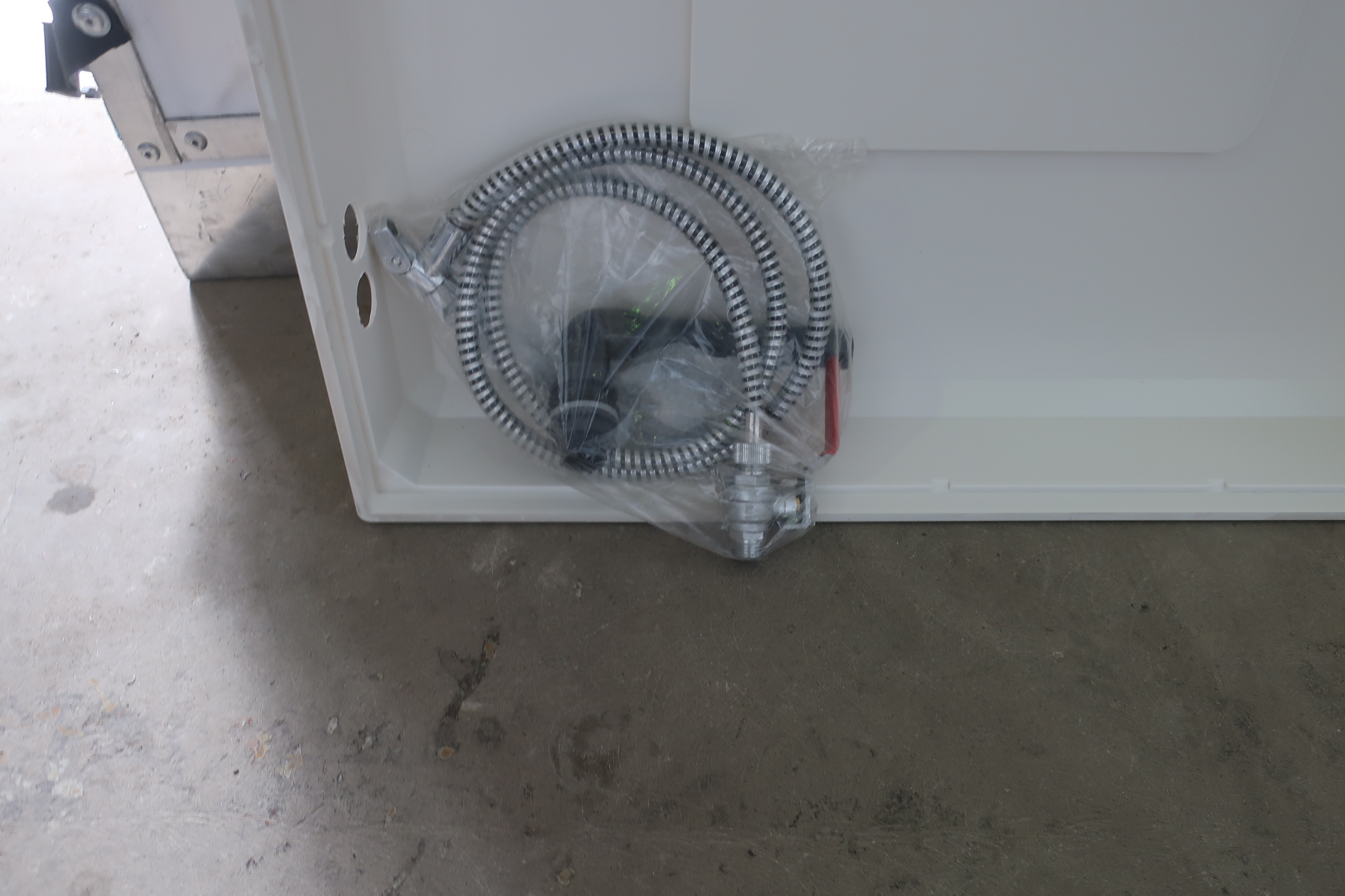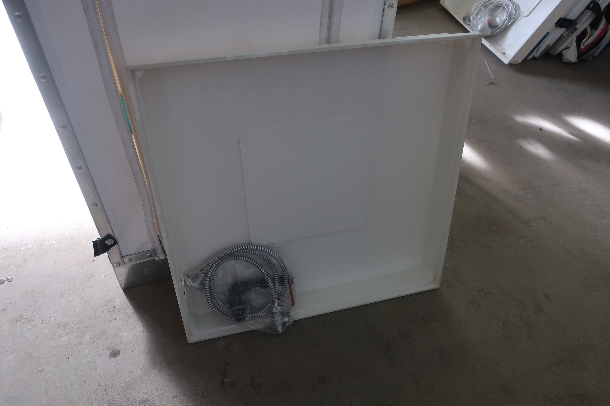 Plastic tub for the shower.