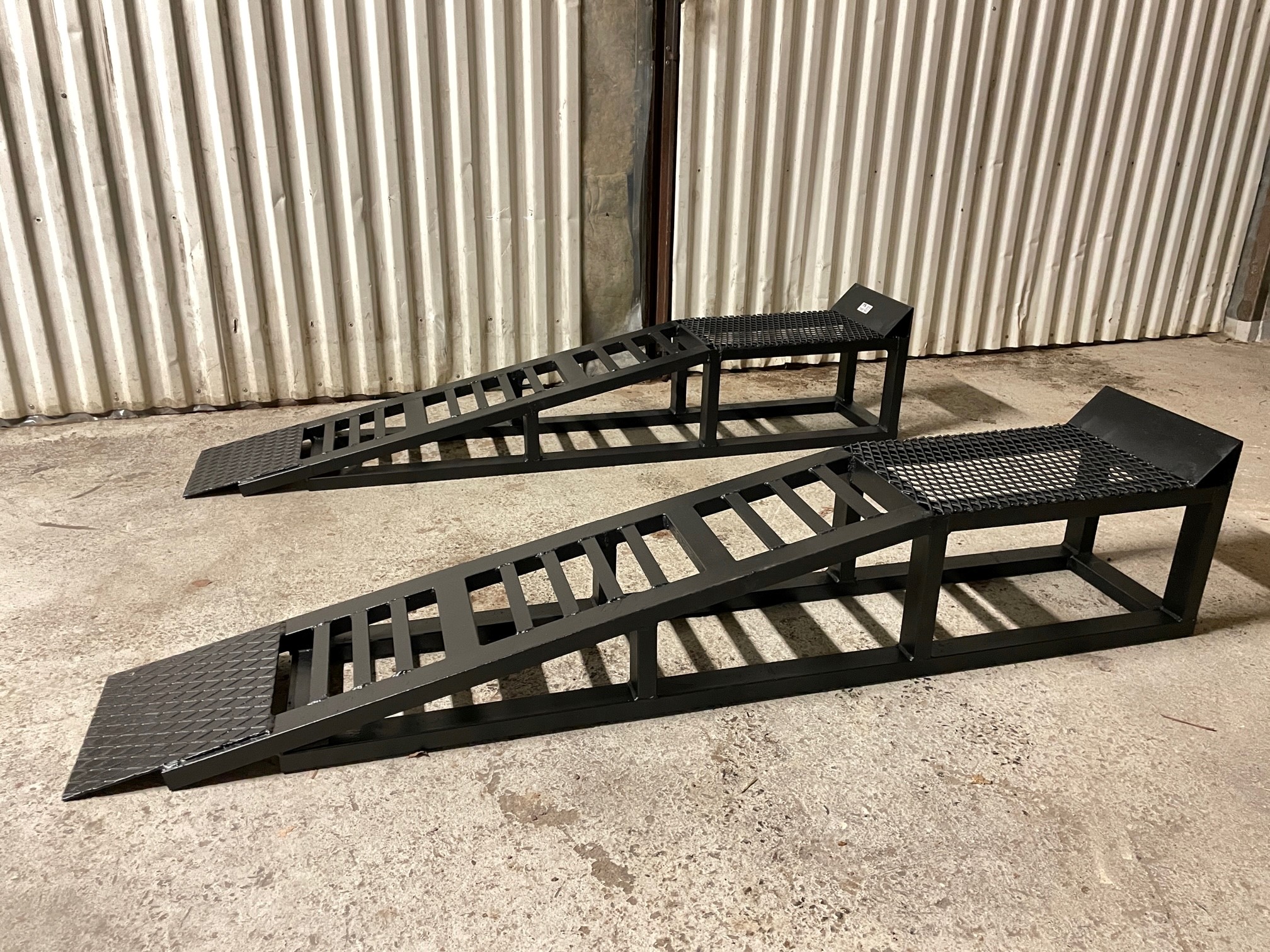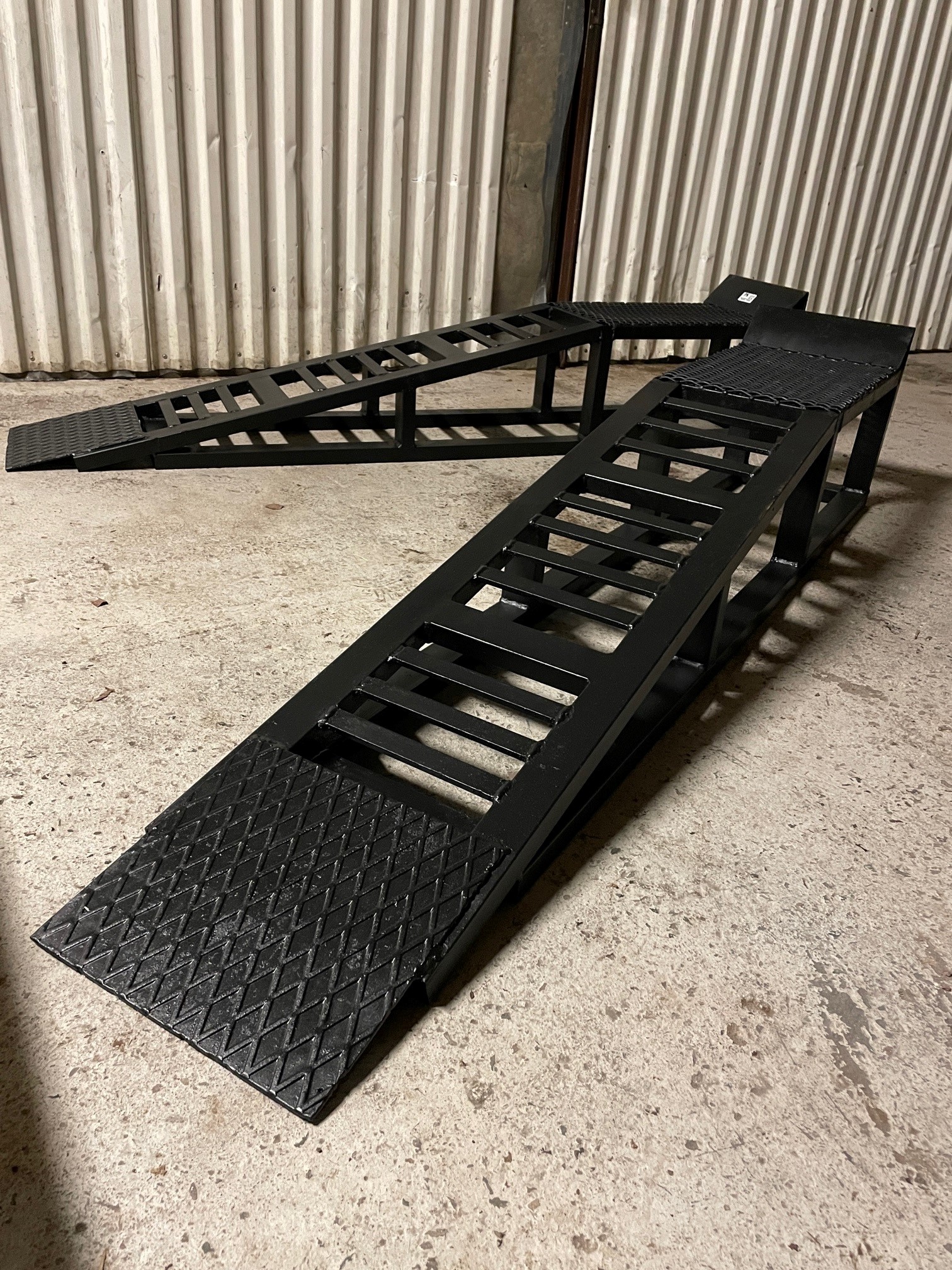 Newly painted car ramps in steel in good condition.