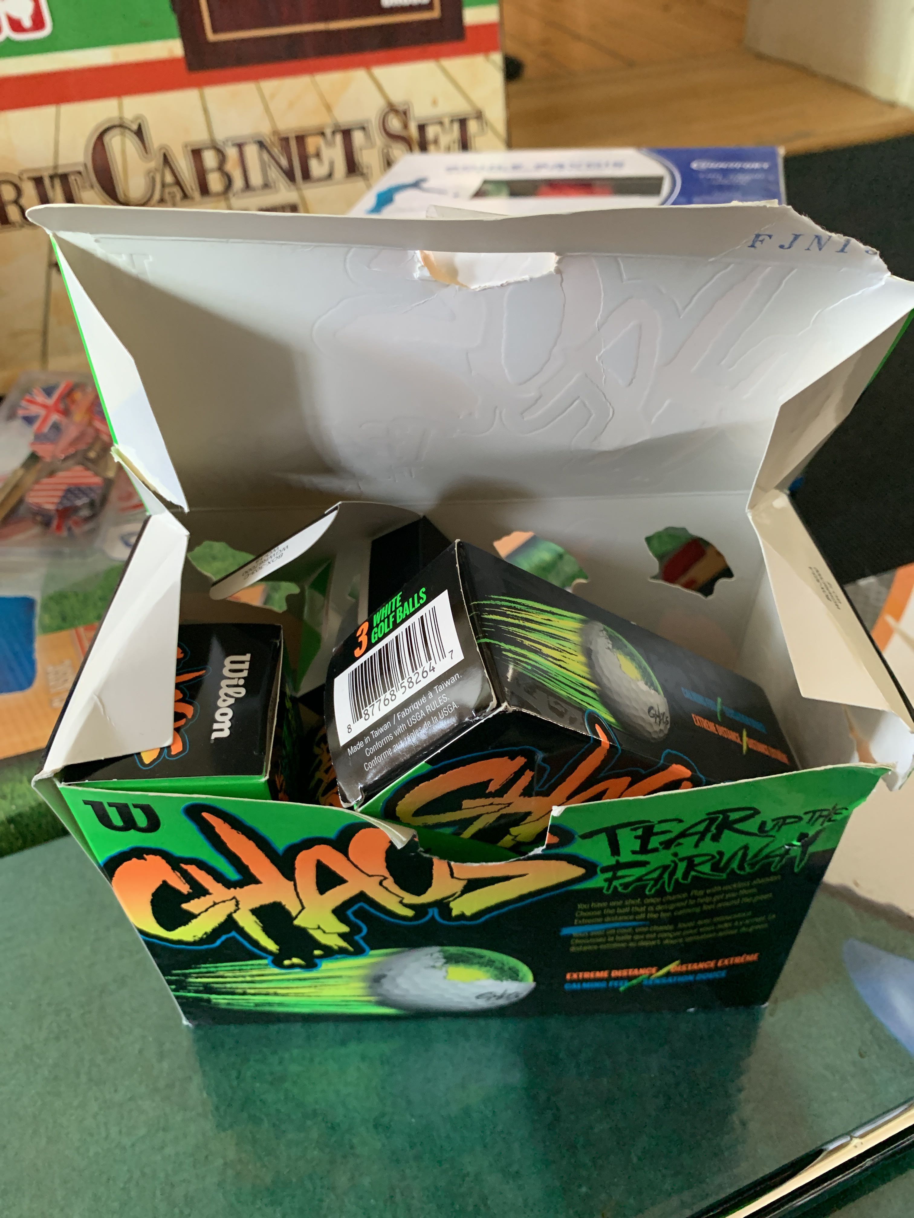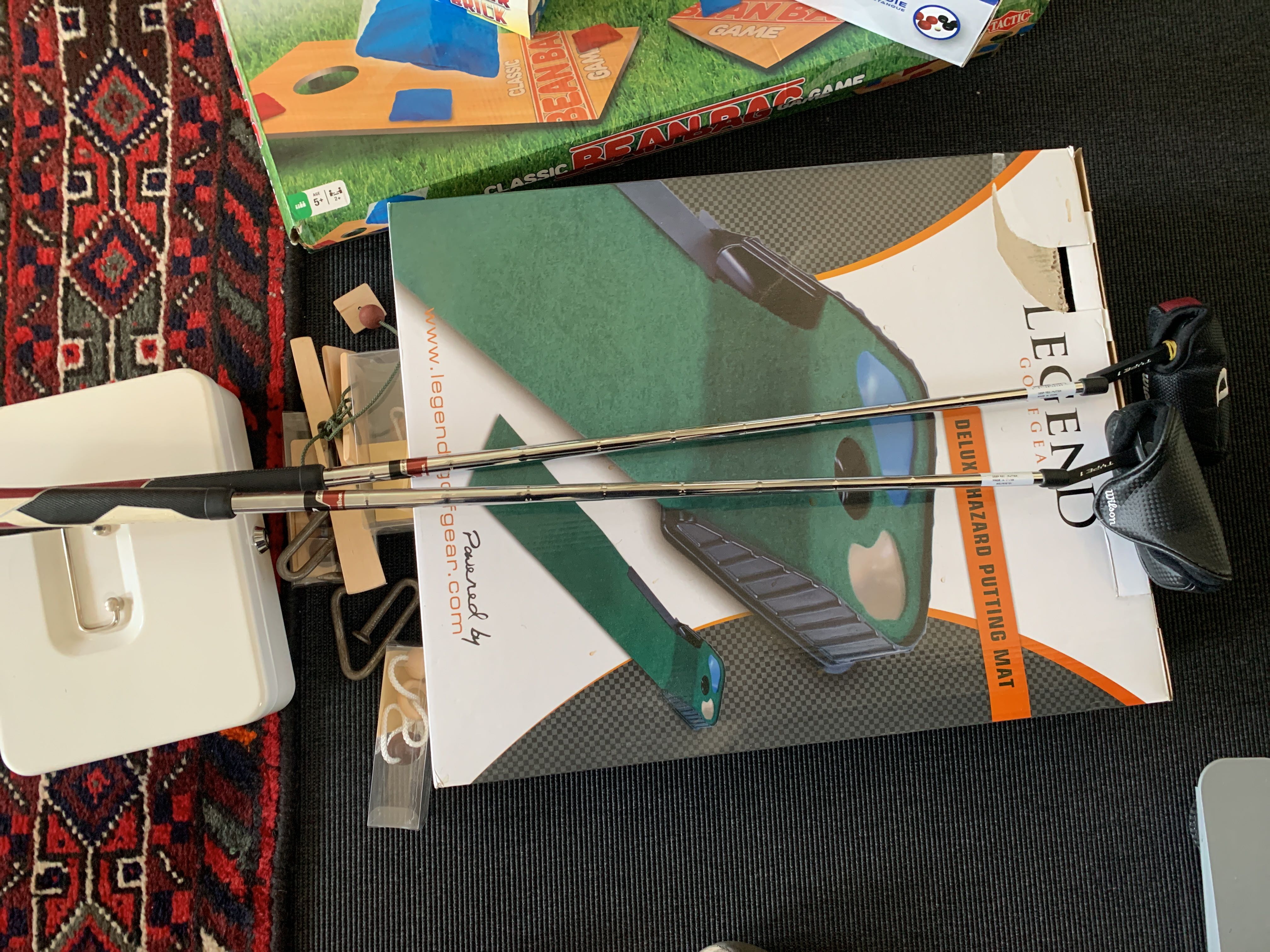 Putt mat with balls and 2 putters Deep Red Wilson.