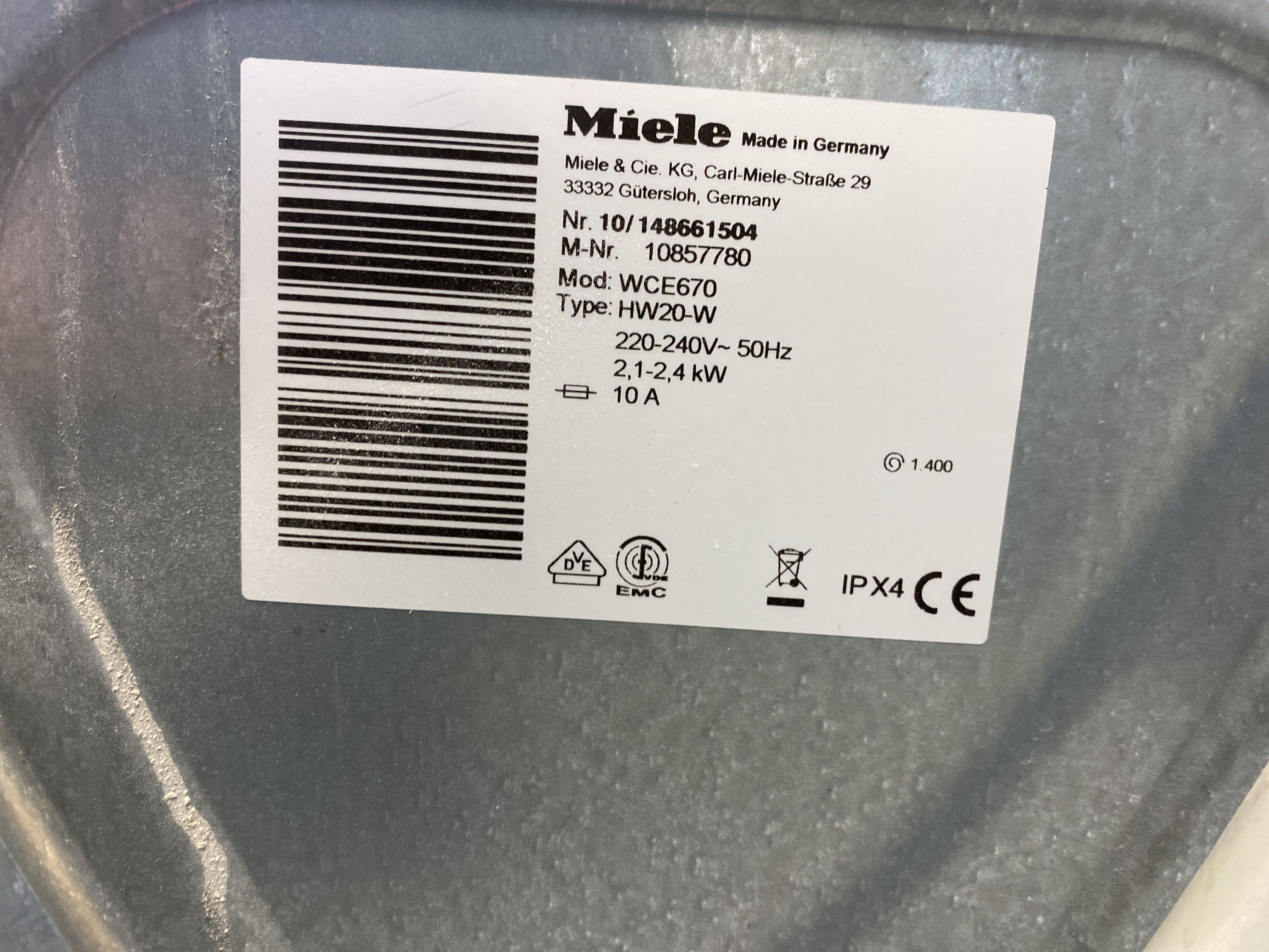 Washing machine, Miele, WCE670