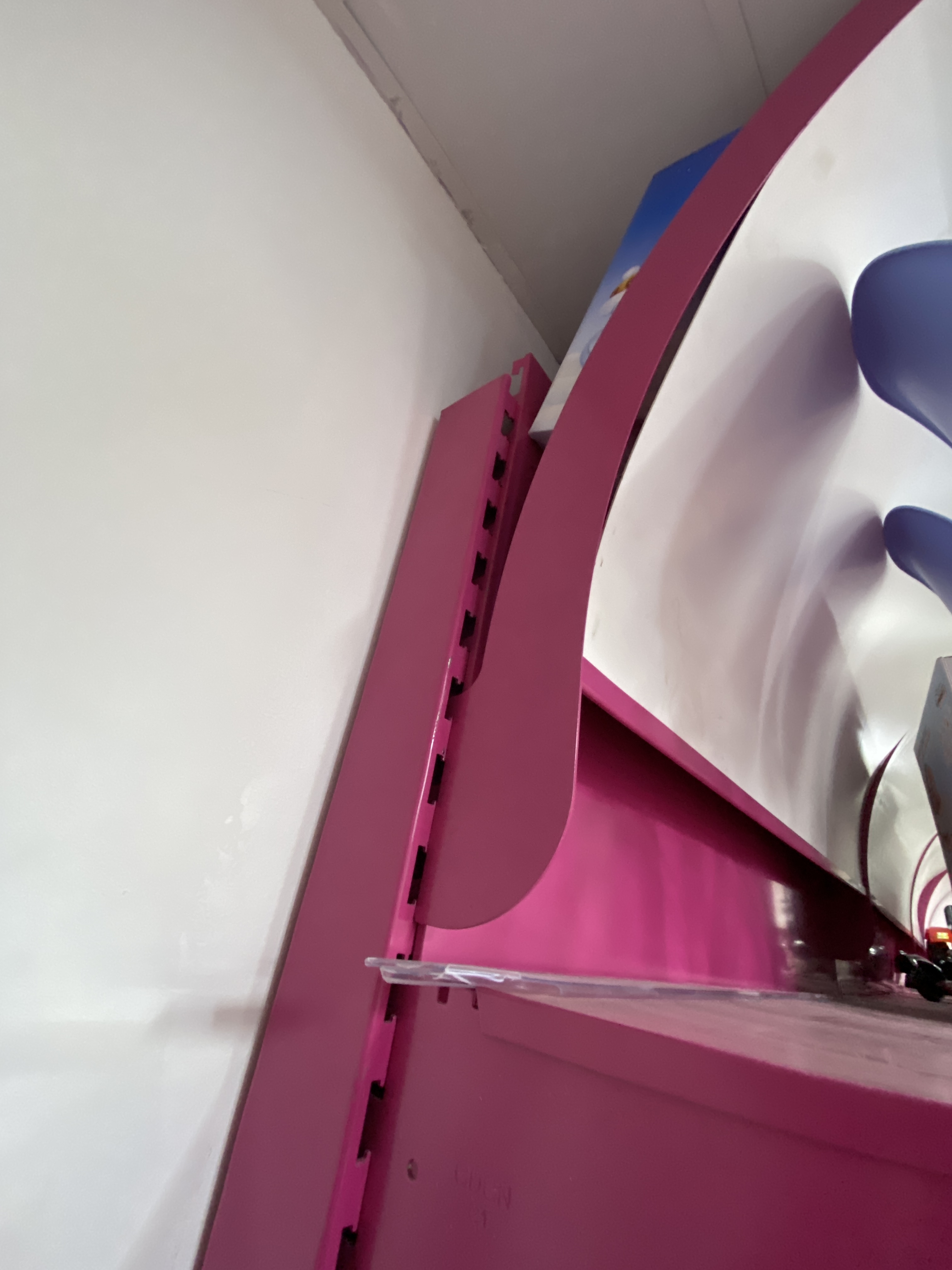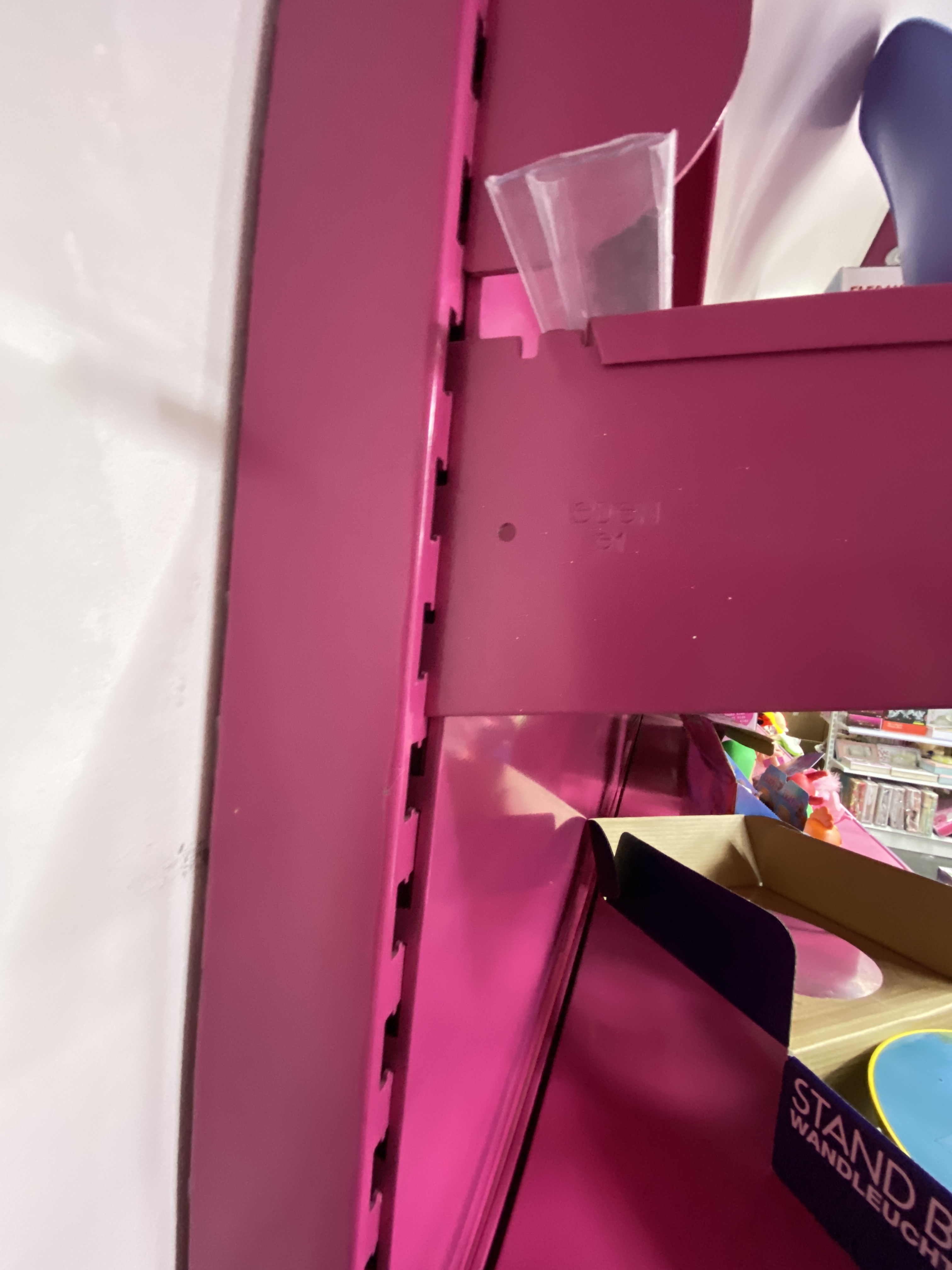 The rails are on a lacquered MDF (light pink) We do not know how the mfd boards are attached to the wall behind, can be screwed or glued. It is important when dismantling that the room is left in good condition. That is, if the boards were glued and you want to disassemble them, this must be done without damaging the wall behind where the glue is placed.
