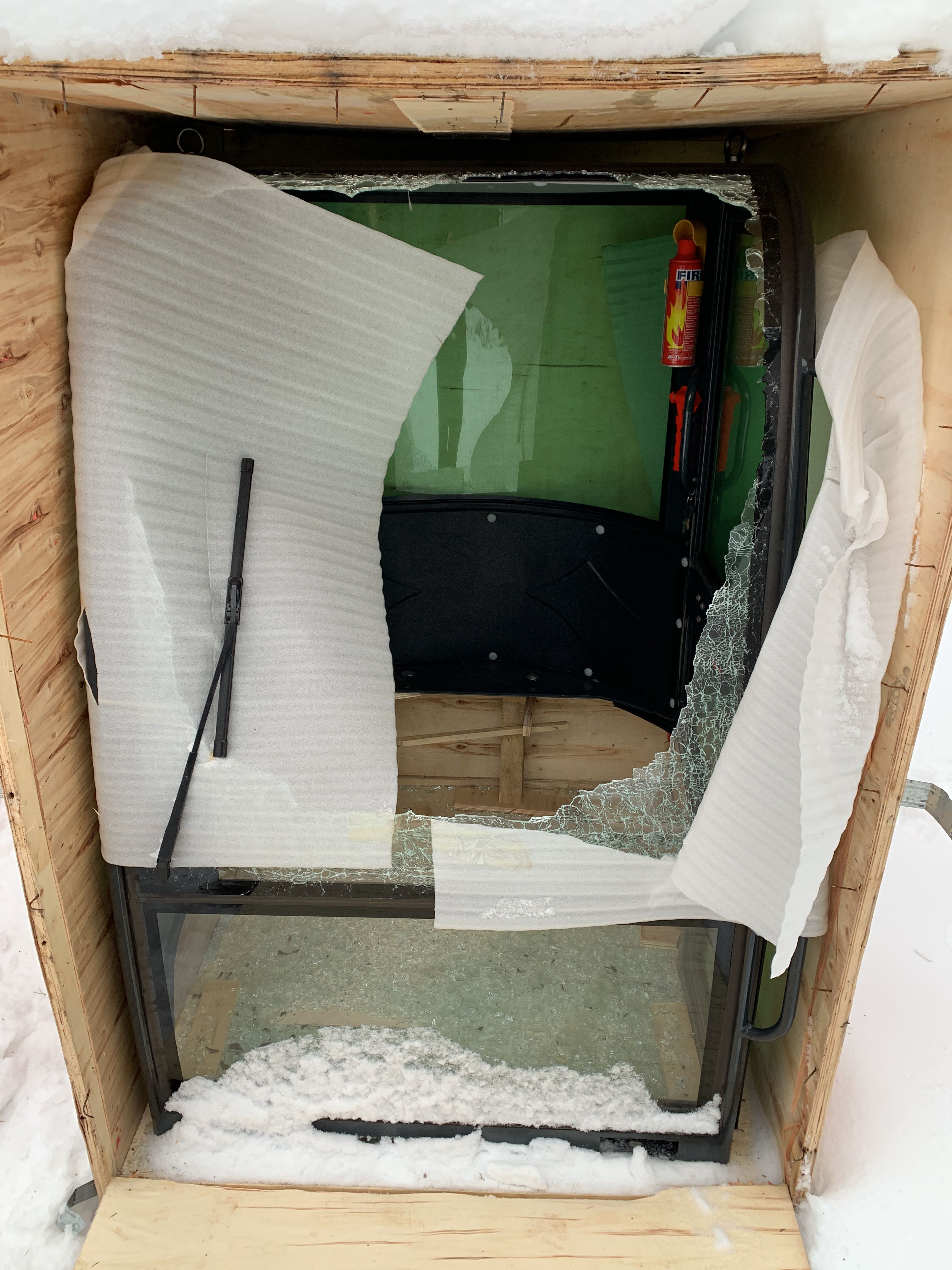 Cab not fitted due to broken windscreen on delivery.