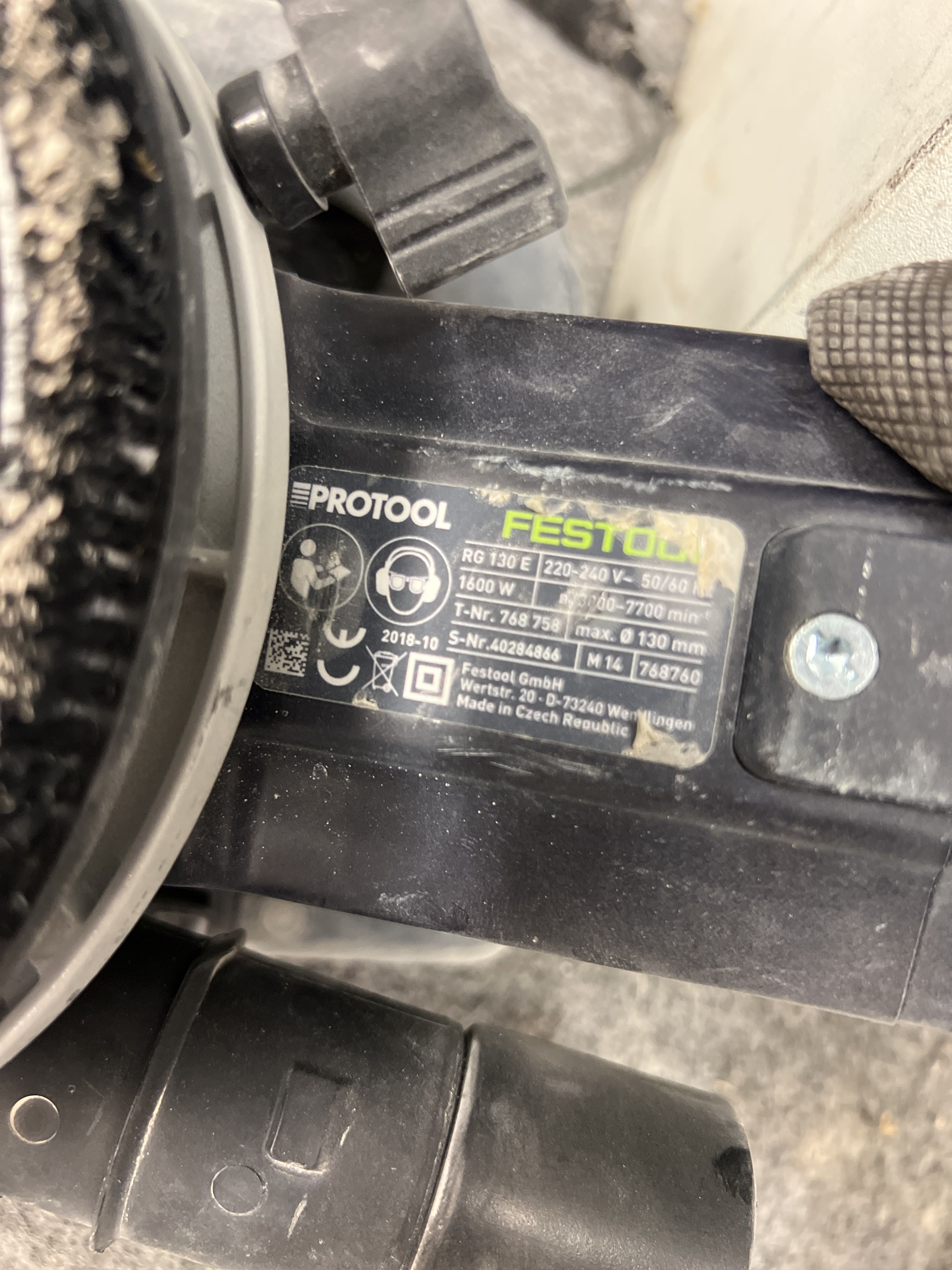 Diamond grinder Festool RG 130 E and construction radio