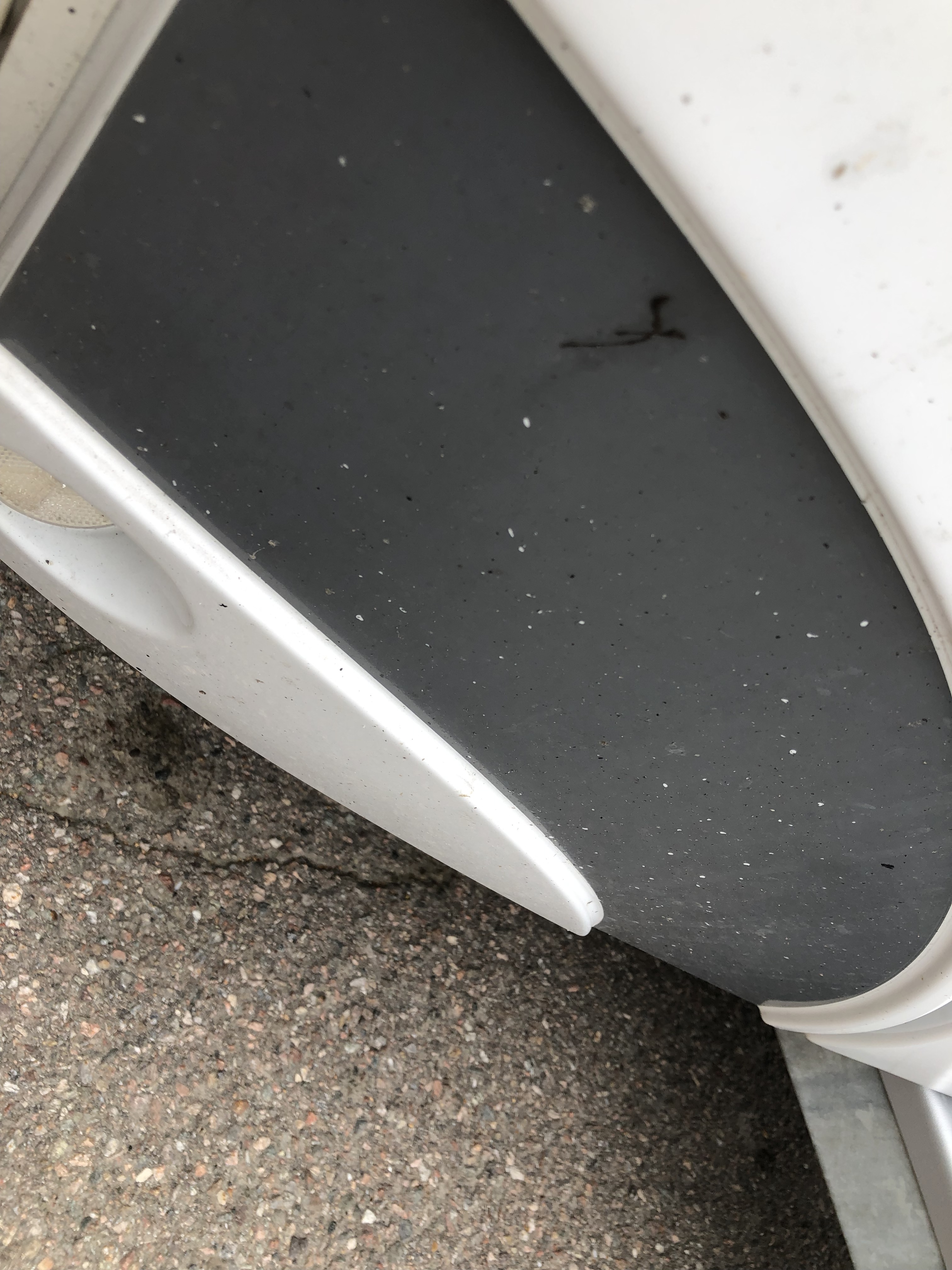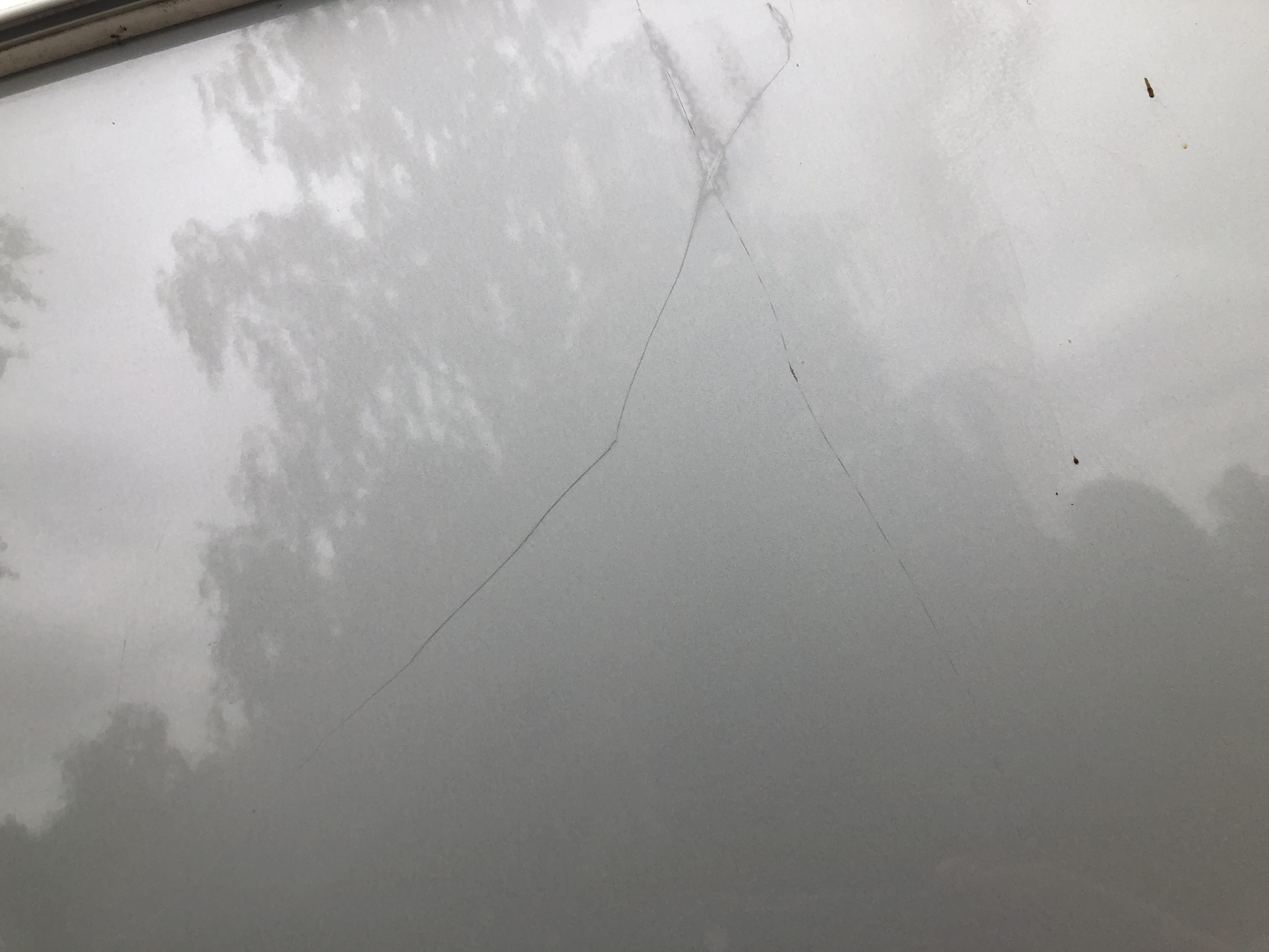 There are some surface tears and minor marks on the outside right side but no major visual damage.