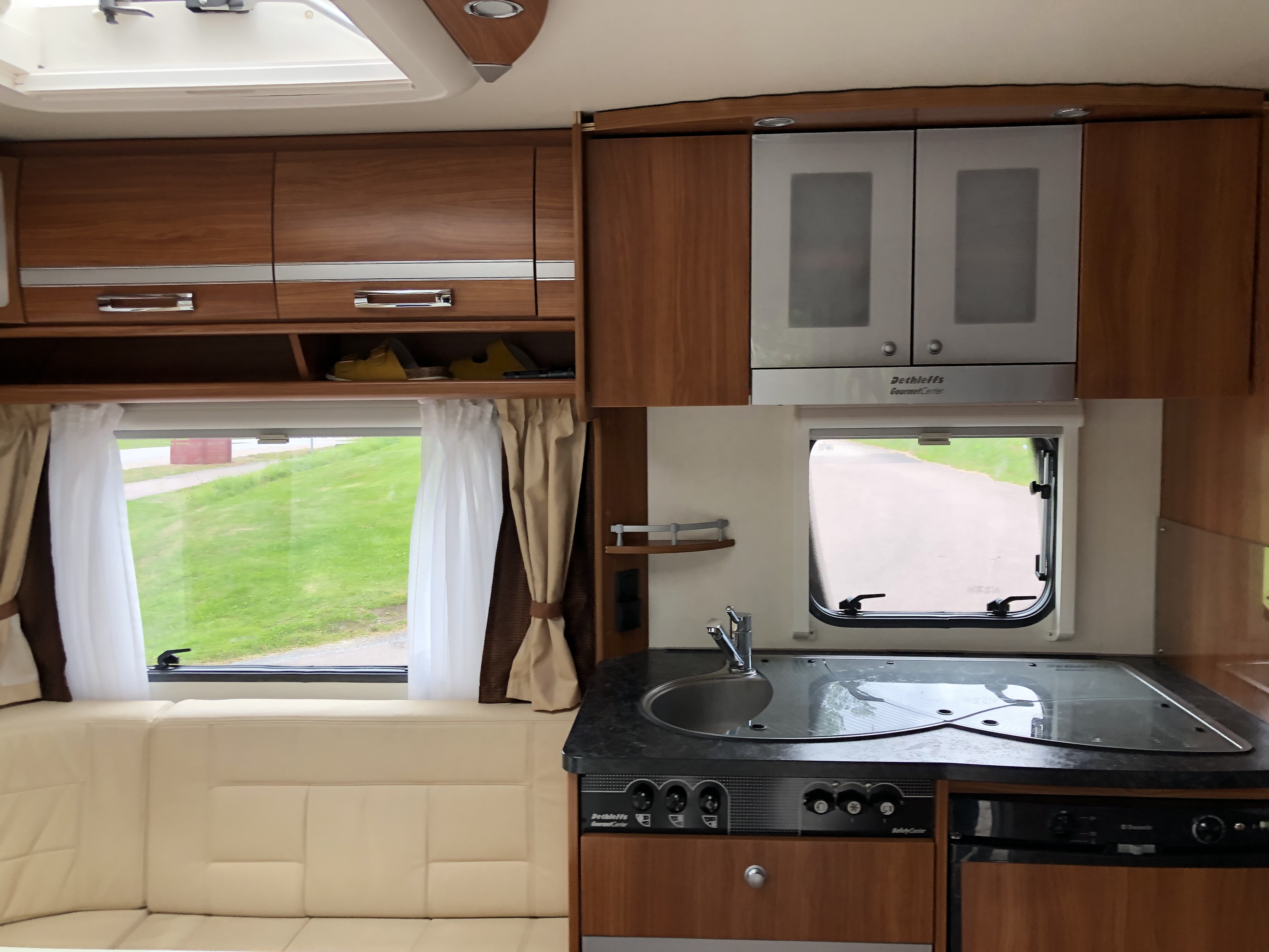 Leather upholstery and large sunroof. Awning Swedish tents.