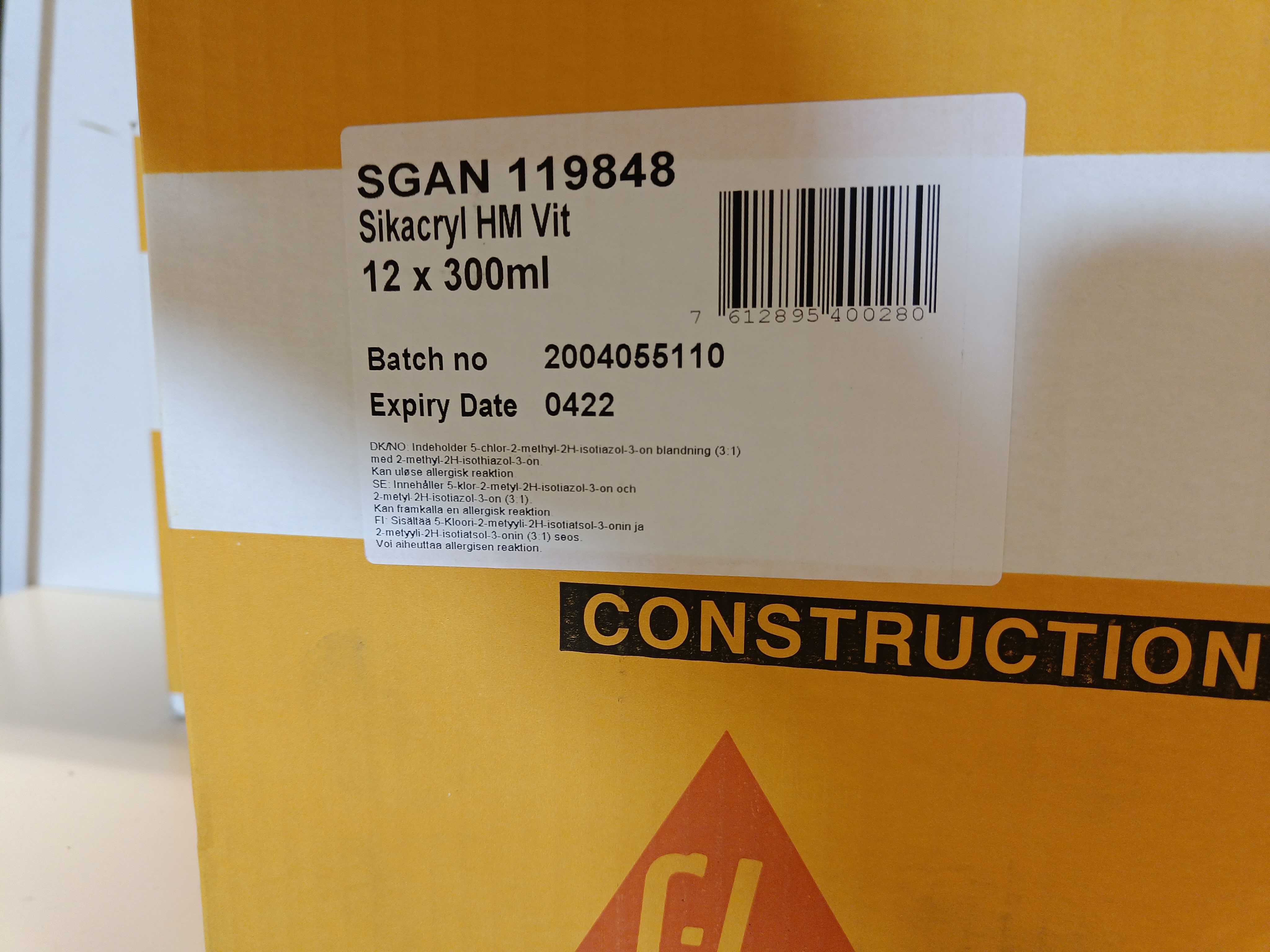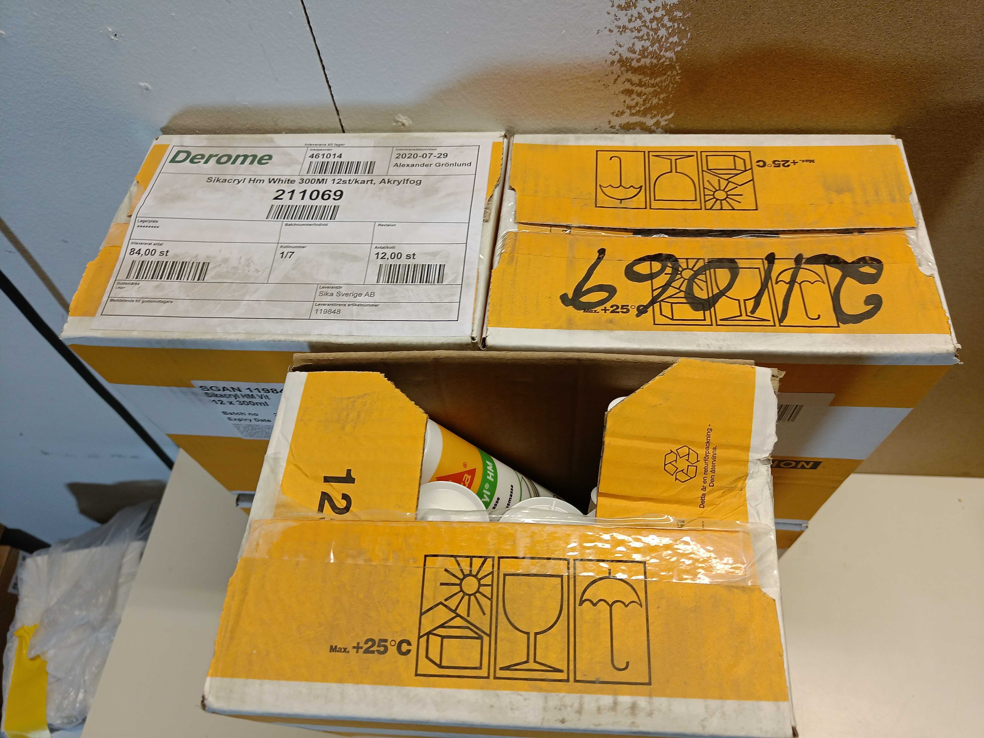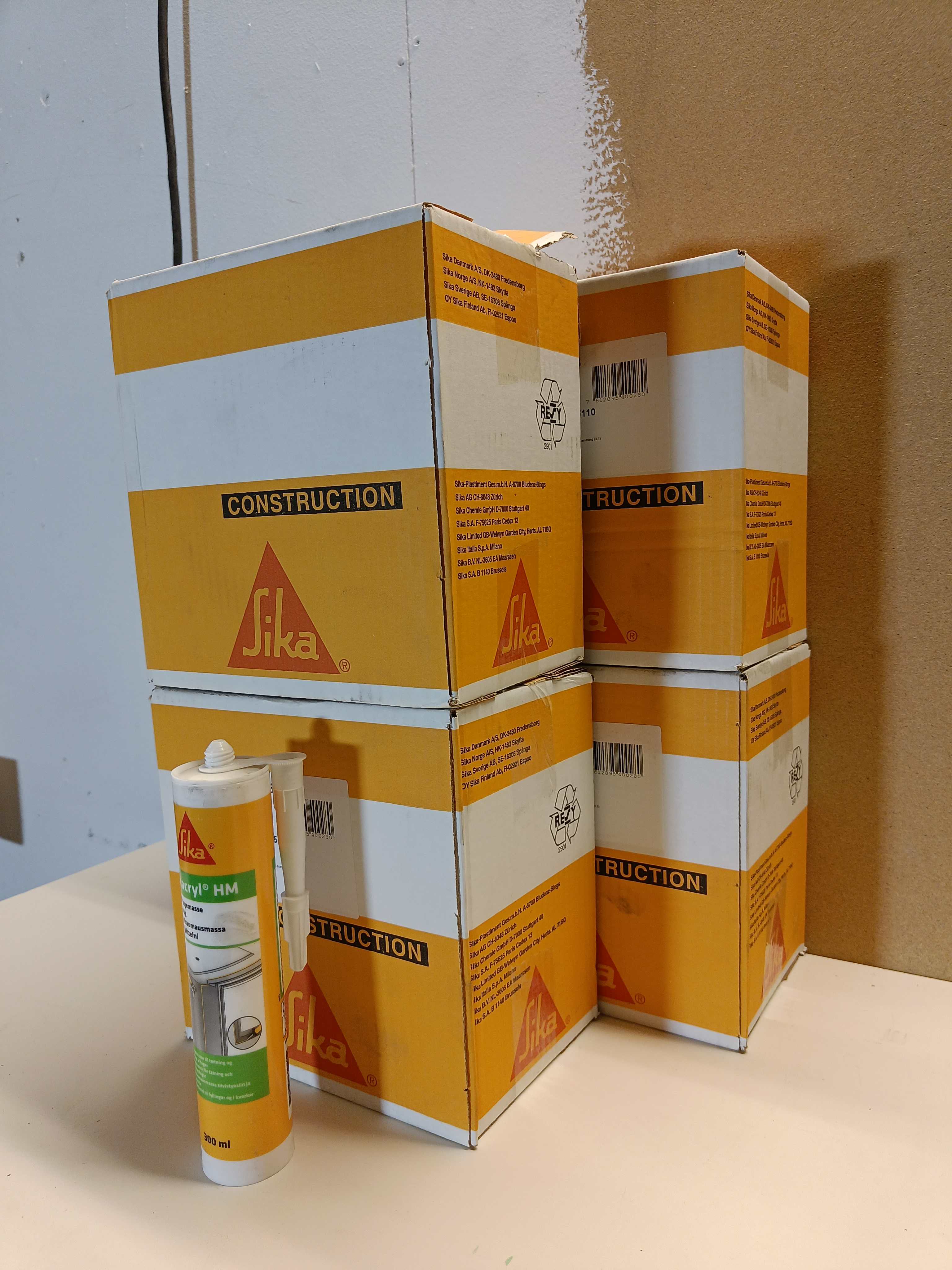 70 Stycken tuber Latexfog Sika Sikacryl vit 300ml.