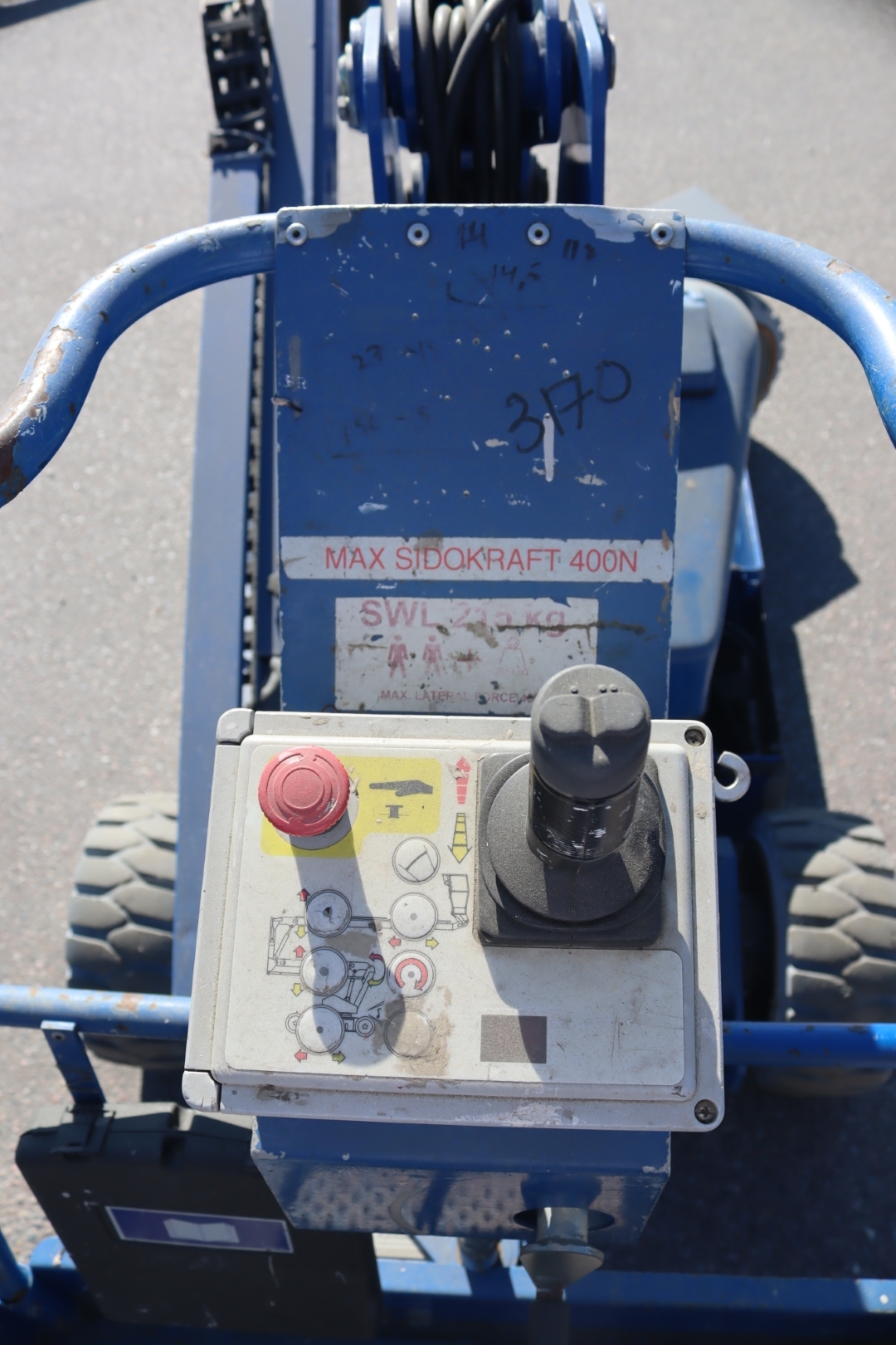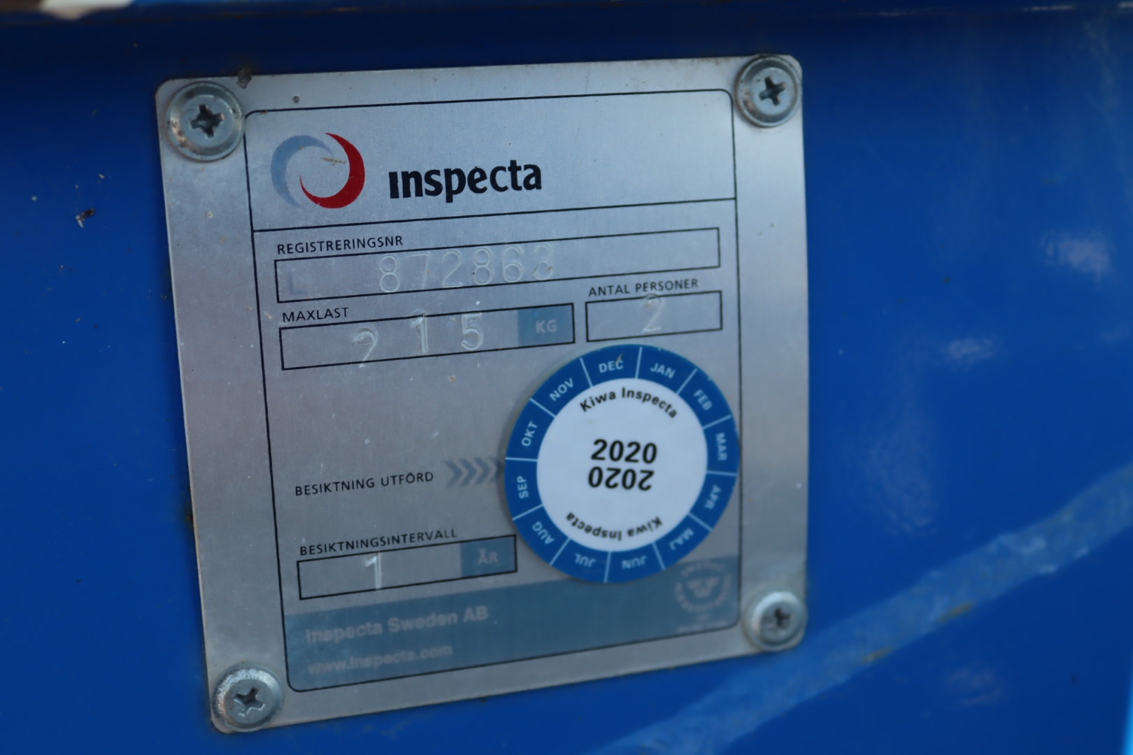 Max load 215kg. Maximum height approx. 11.5 meters. Inspected September 2020.